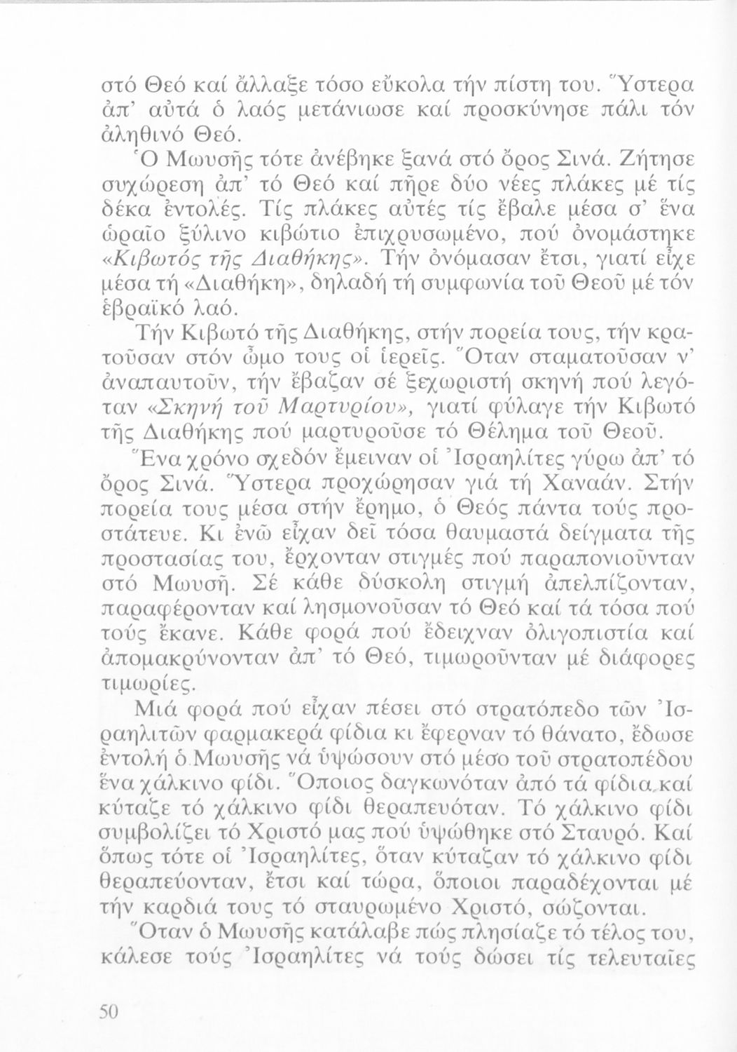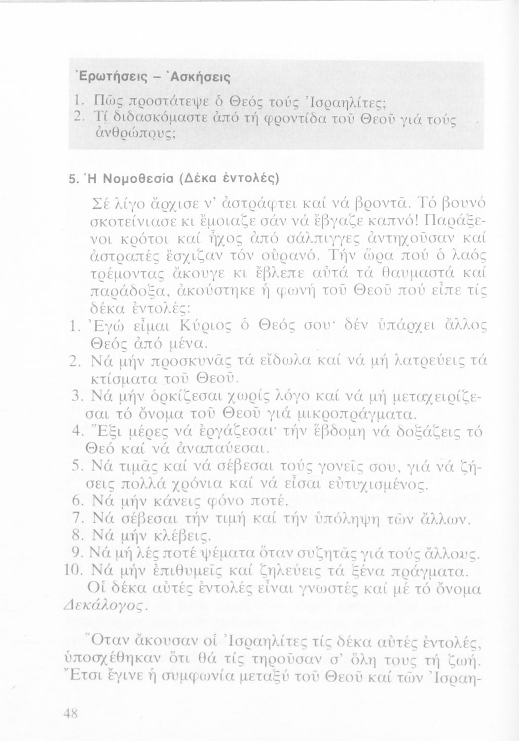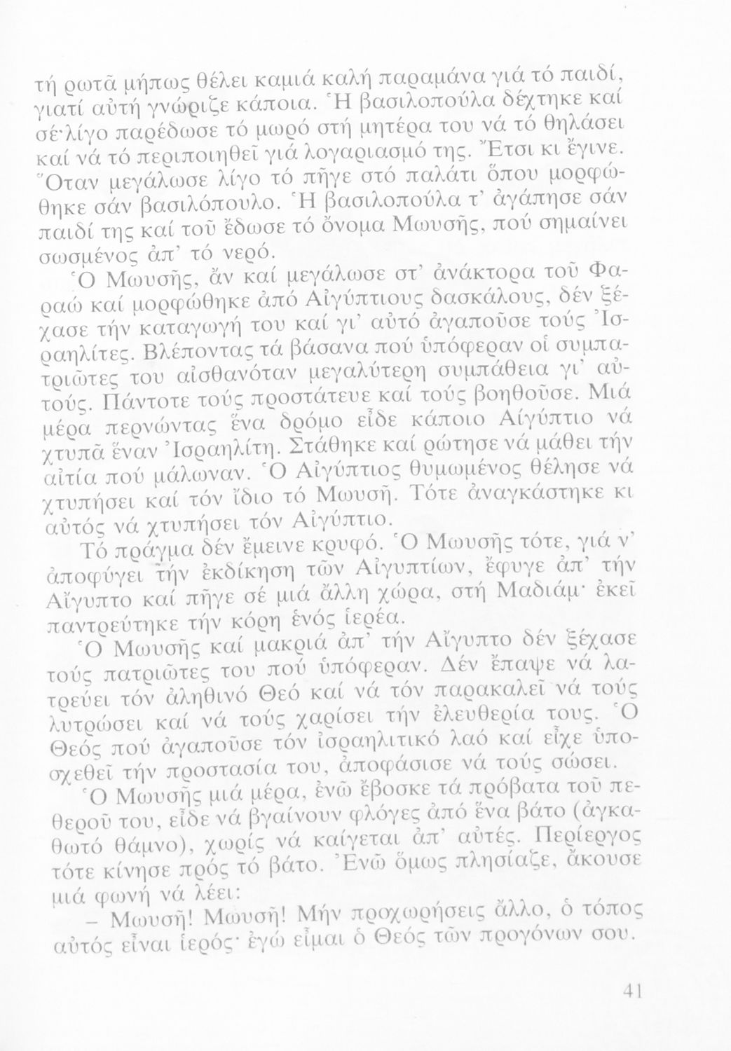 Μαθητικό βοήθημα της Γ' Δημοτικού για το μάθημα των Θρησκευτικών. Αναφέρεται στα γεγονότα της Παλαιάς Διαθήκης. Ξεκινάει τη δημιουργία του κόσμου, τους πατριάρχες, την ιστορία το Μωυσή, την περίοδο των βασιλέων, και τέλος το έργο των προφητών.