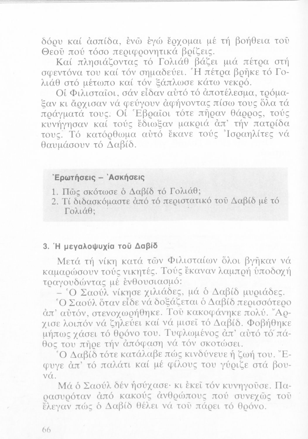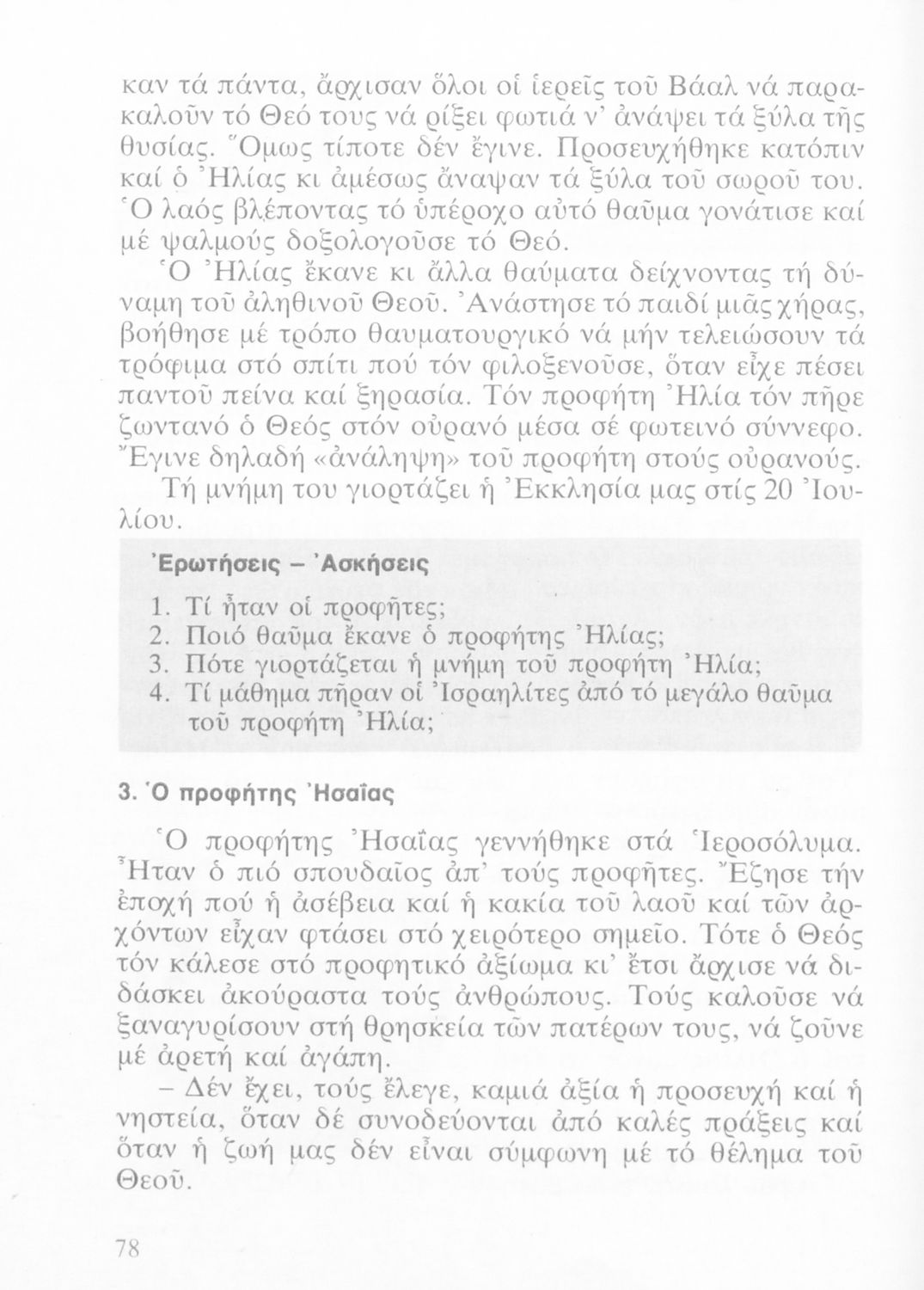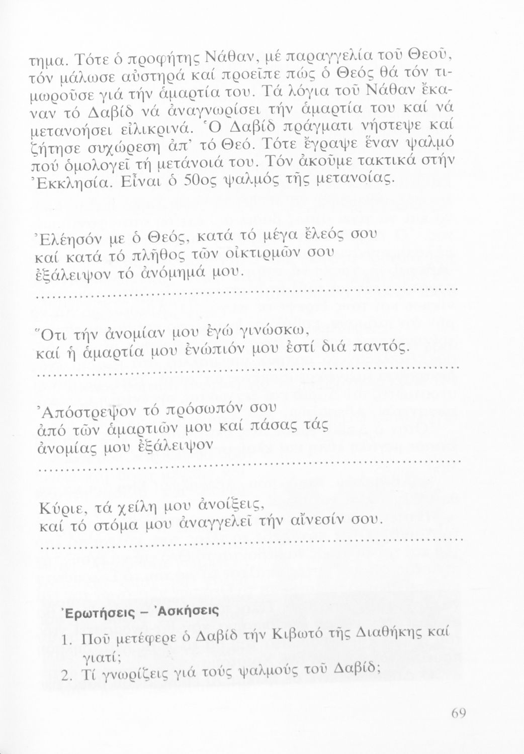 Μαθητικό βοήθημα της Γ' Δημοτικού για το μάθημα των Θρησκευτικών. Αναφέρεται στα γεγονότα της Παλαιάς Διαθήκης. Ξεκινάει τη δημιουργία του κόσμου, τους πατριάρχες, την ιστορία το Μωυσή, την περίοδο των βασιλέων, και τέλος το έργο των προφητών.