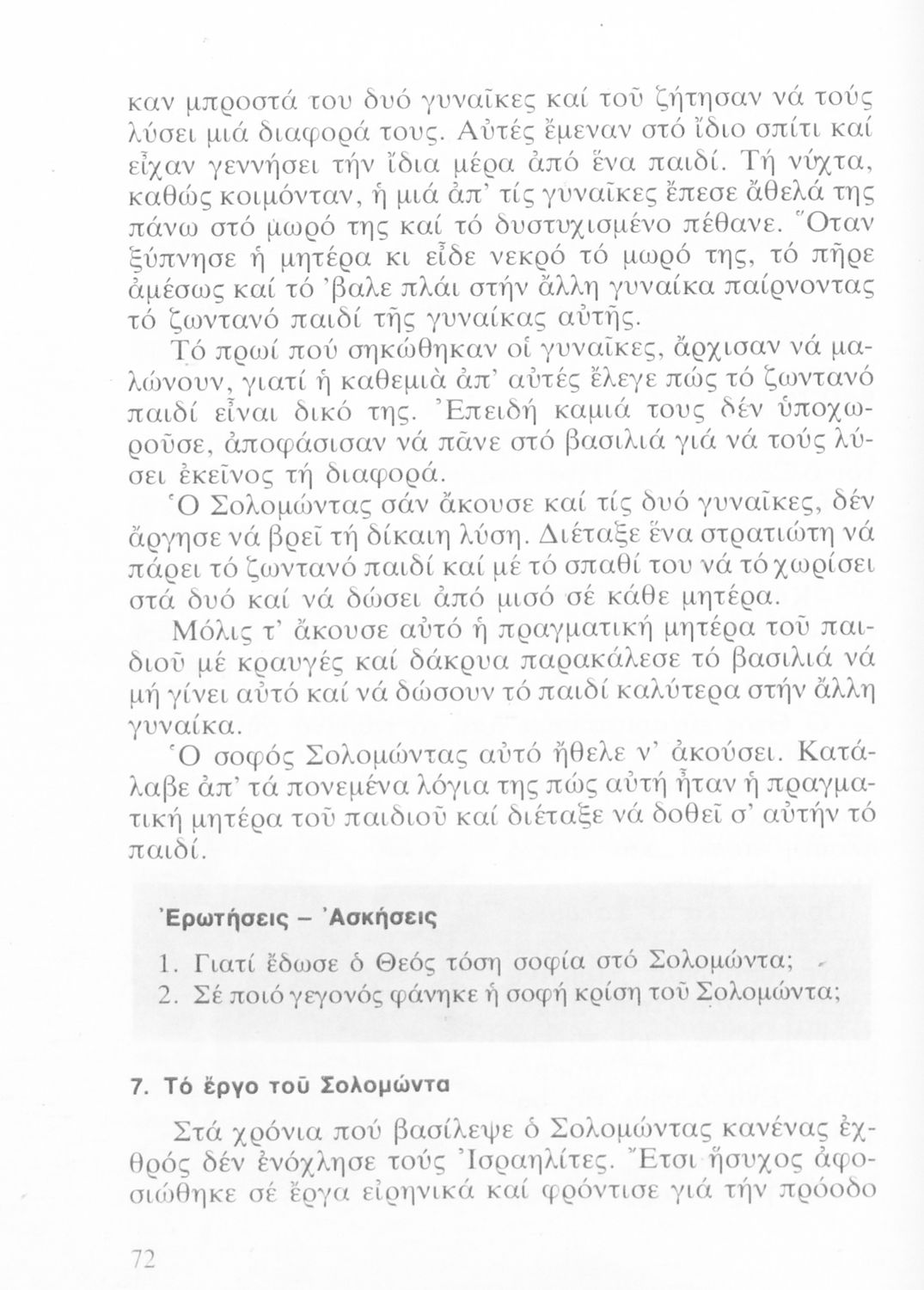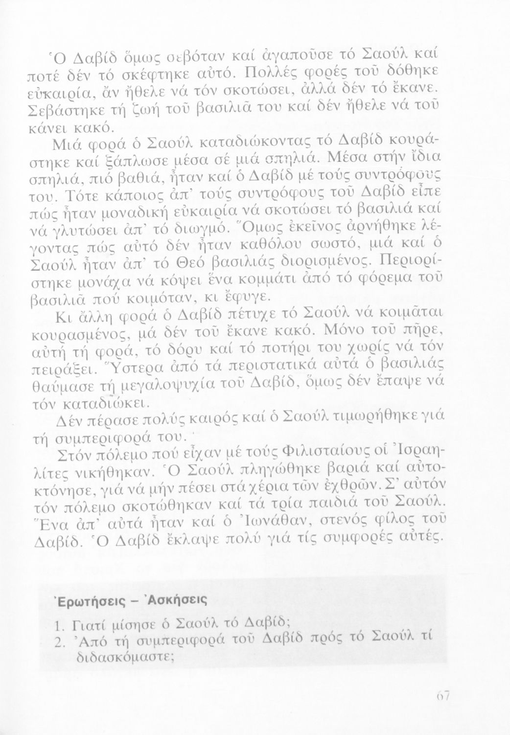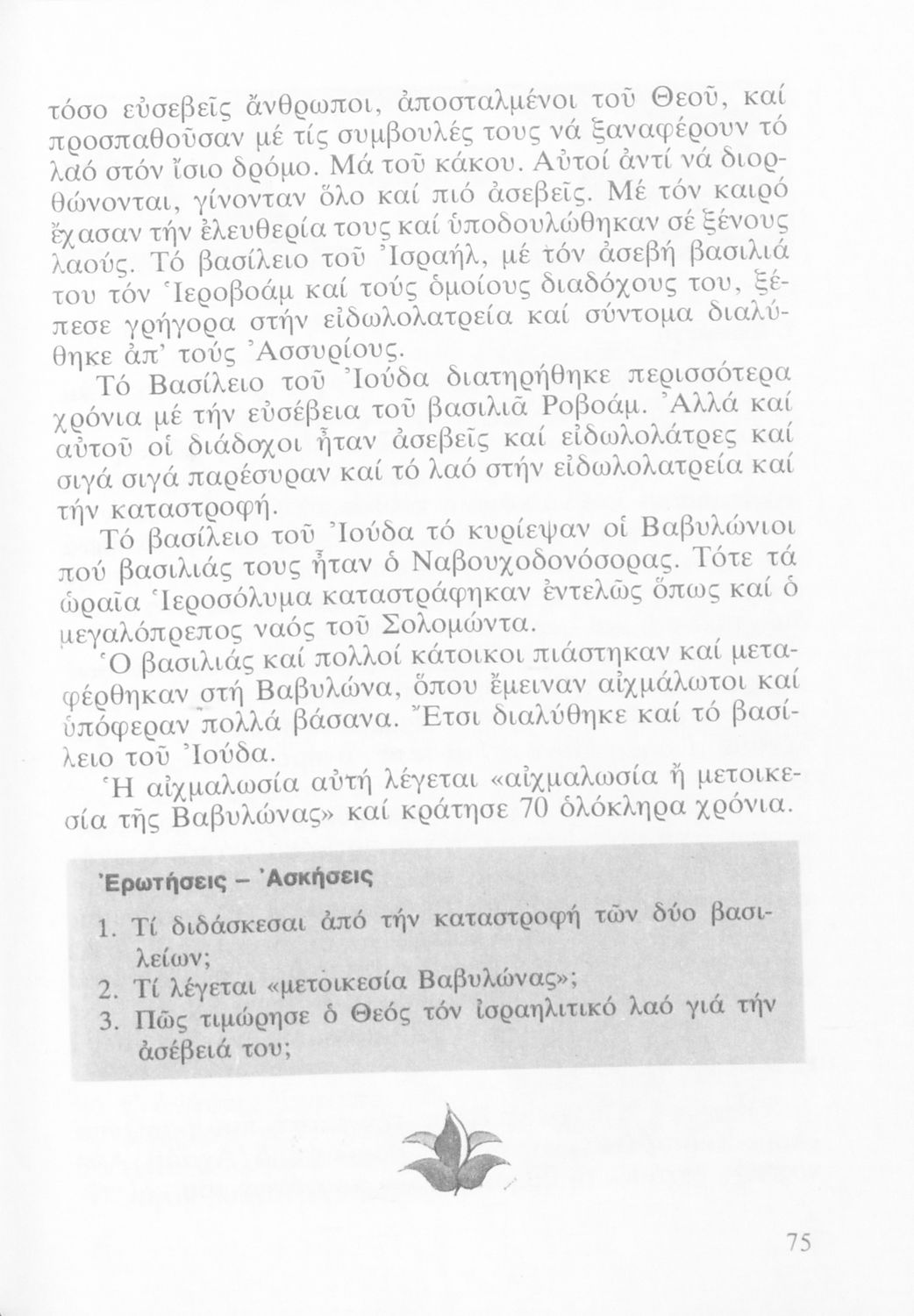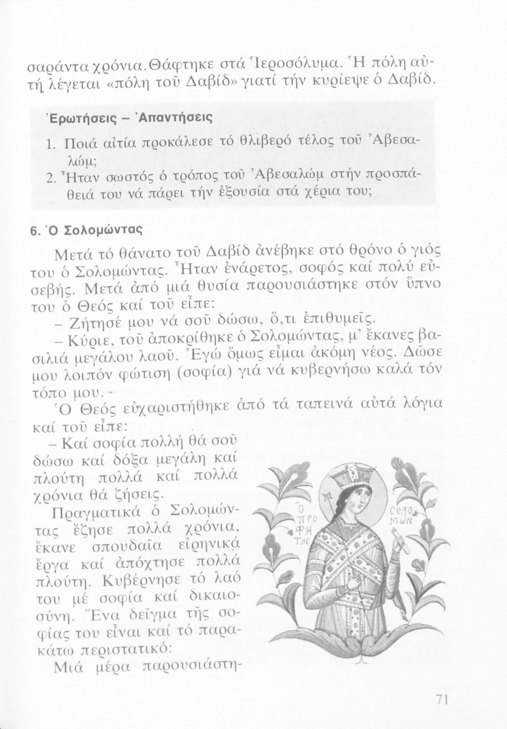 Μαθητικό βοήθημα της Γ' Δημοτικού για το μάθημα των Θρησκευτικών. Αναφέρεται στα γεγονότα της Παλαιάς Διαθήκης. Ξεκινάει τη δημιουργία του κόσμου, τους πατριάρχες, την ιστορία το Μωυσή, την περίοδο των βασιλέων, και τέλος το έργο των προφητών.