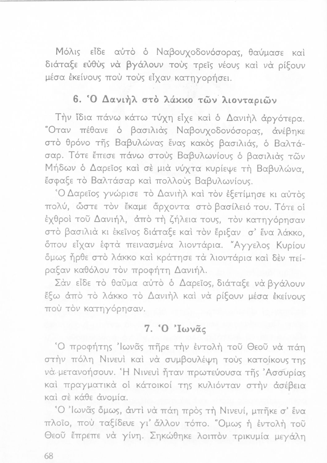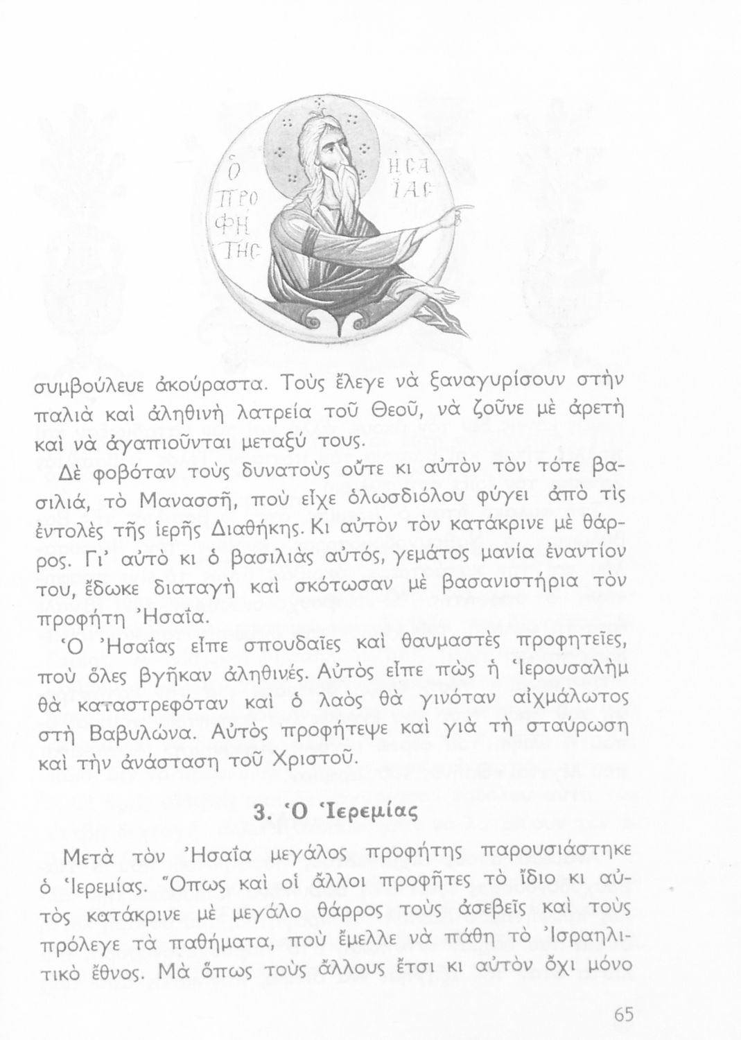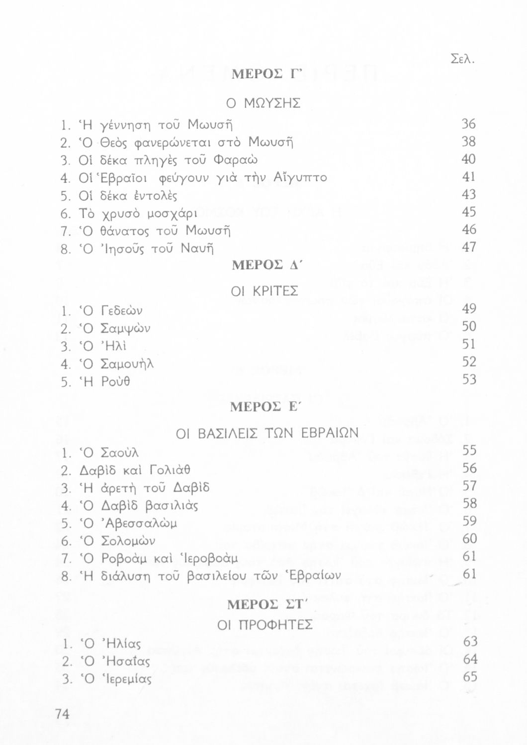 Σχολικό εγχειρίδιο Θρησκευτικών [Γ΄ Δημοτικού] που συνιστά μία εξιστόρηση της Παλαιάς Διαθήκης από τη δημιουργία του κόσμου ως τους Προφήτες.