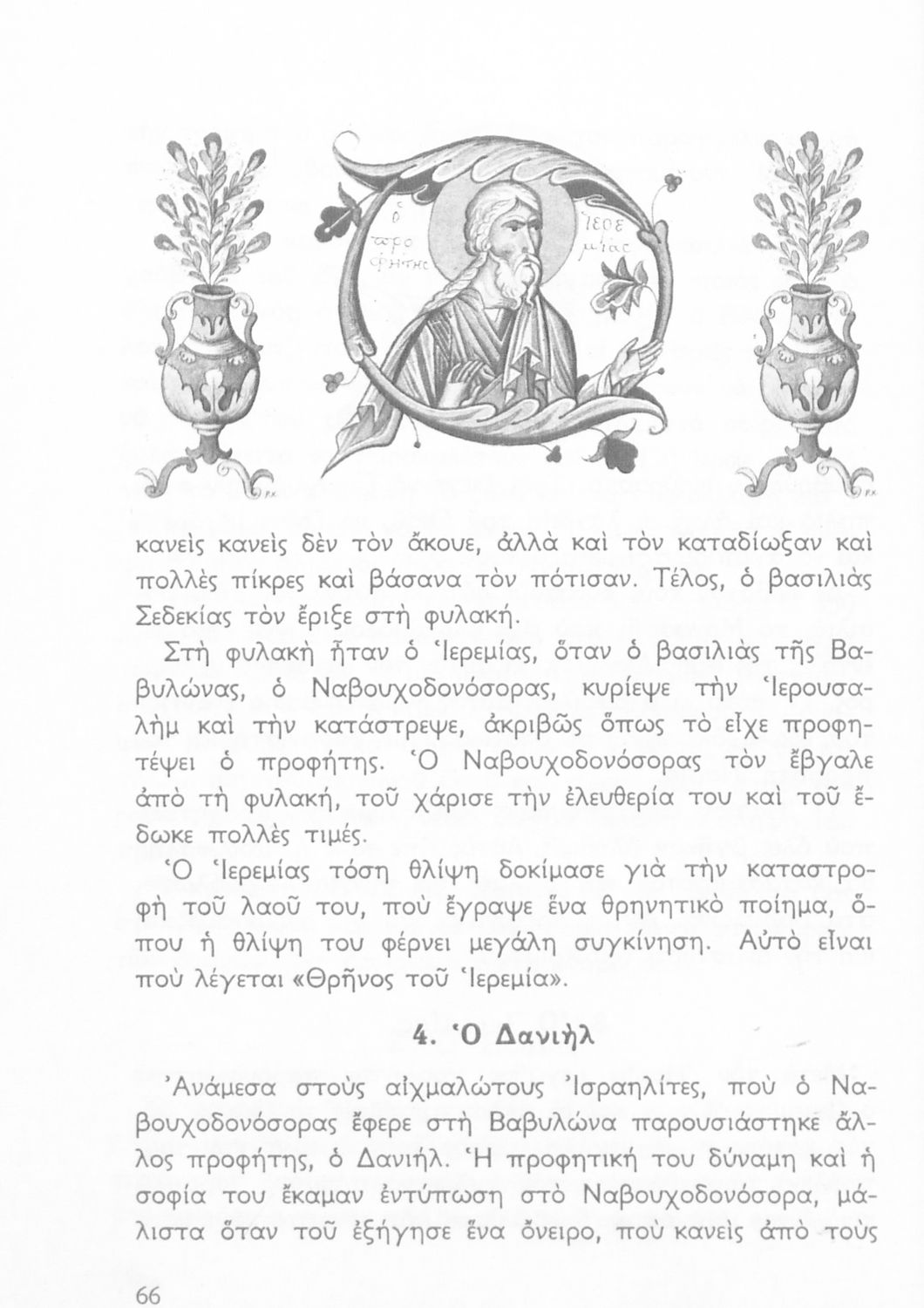 Σχολικό εγχειρίδιο Θρησκευτικών Δημοτικού που συνιστά μία εξιστόρηση της Παλαιάς Διαθήκης από τη δημιουργία του κόσμου ως τους Προφήτες.