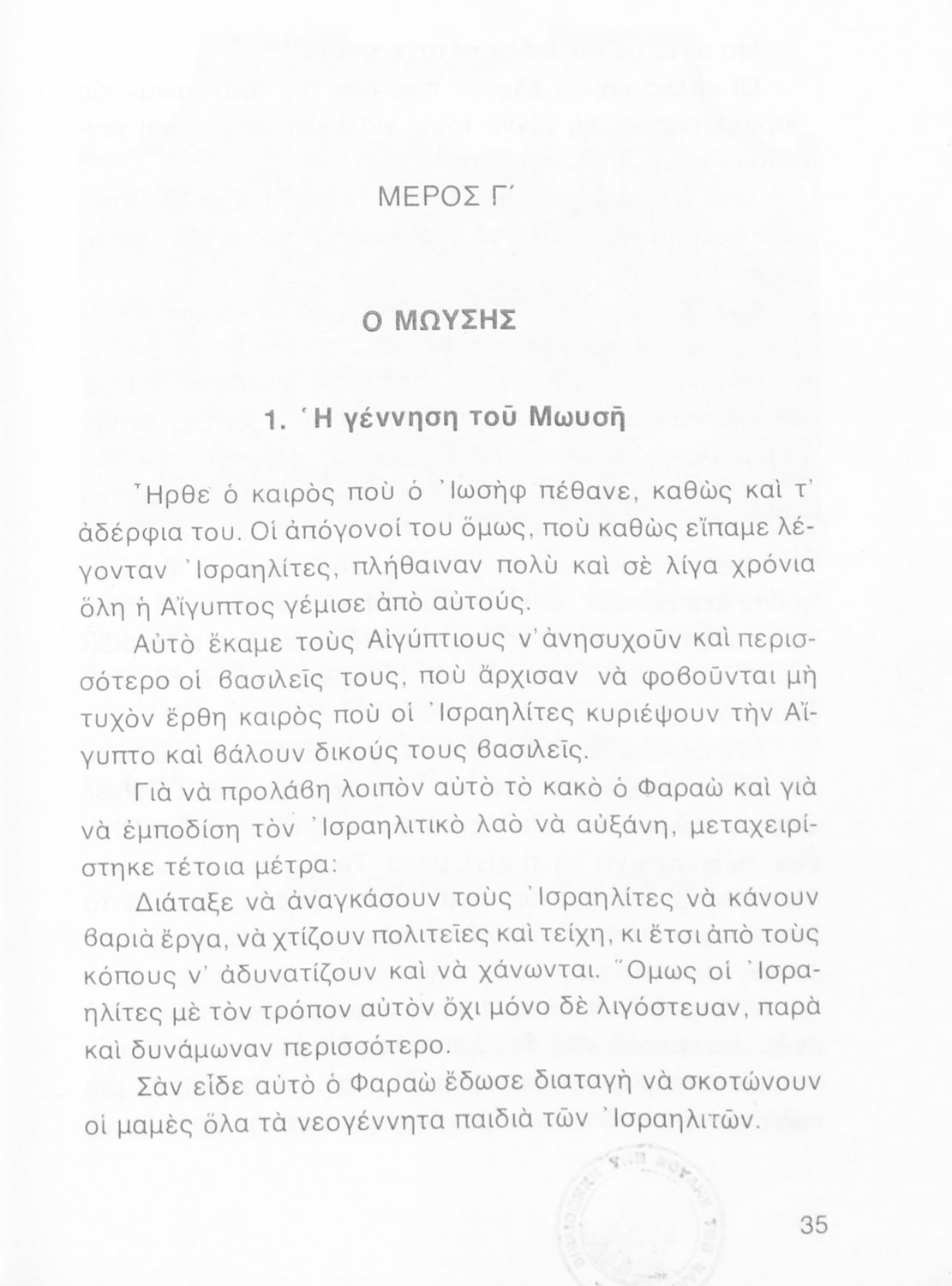 520 ## _aΣχολικό εγχειρίδιο Θρησκευτικών Γ΄ Δημοτικού που συνιστά μία εξιστόρηση της Παλαιάς Διαθήκης από τη δημιουργία του κόσμου ως τους Προφήτες.