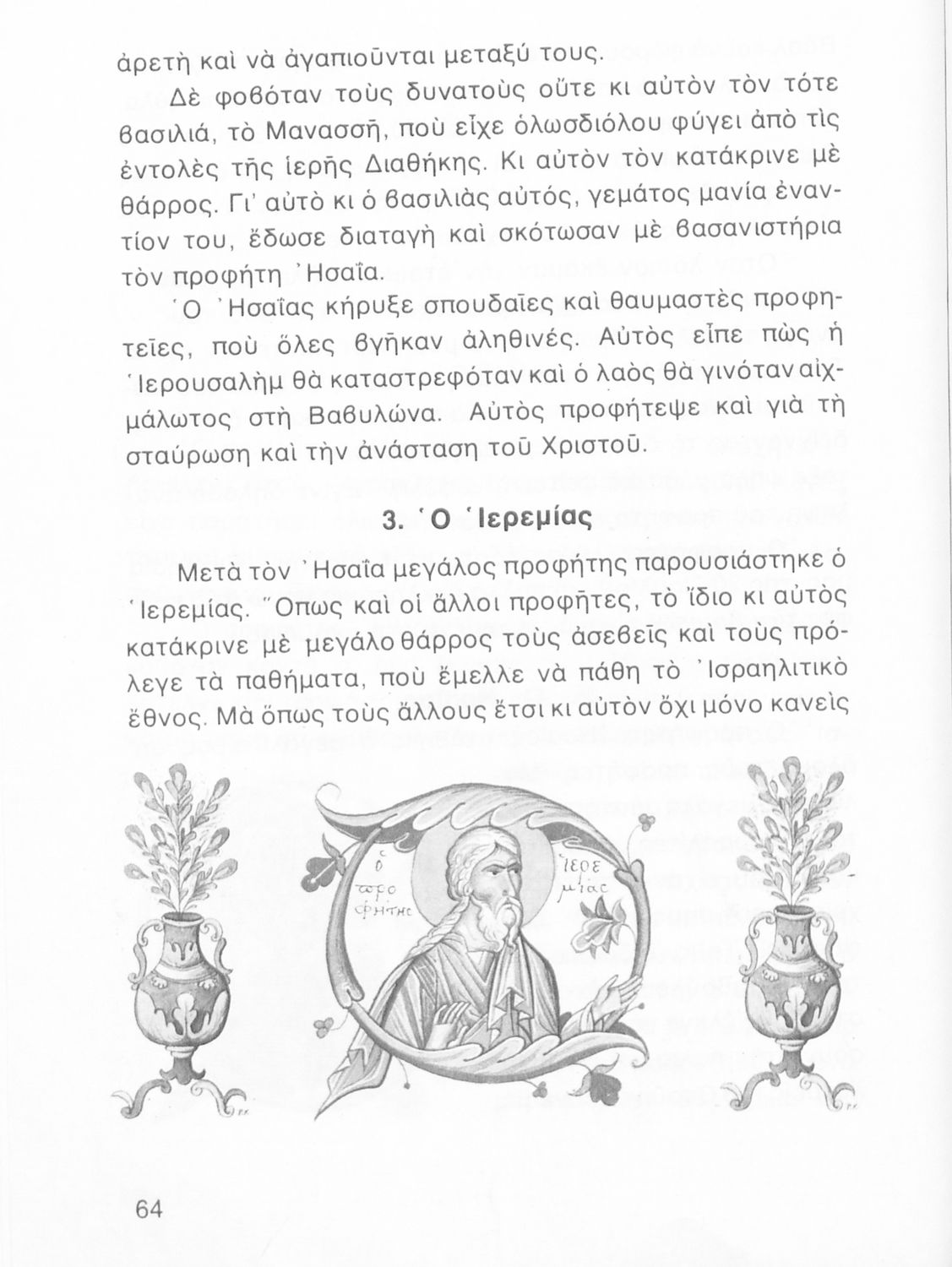Σχολικό εγχειρίδιο Θρησκευτικών [Γ΄ Δημοτικού] που συνιστά μία εξιστόρηση της Παλαιάς Διαθήκης από τη δημιουργία του κόσμου ως τους Προφήτες.