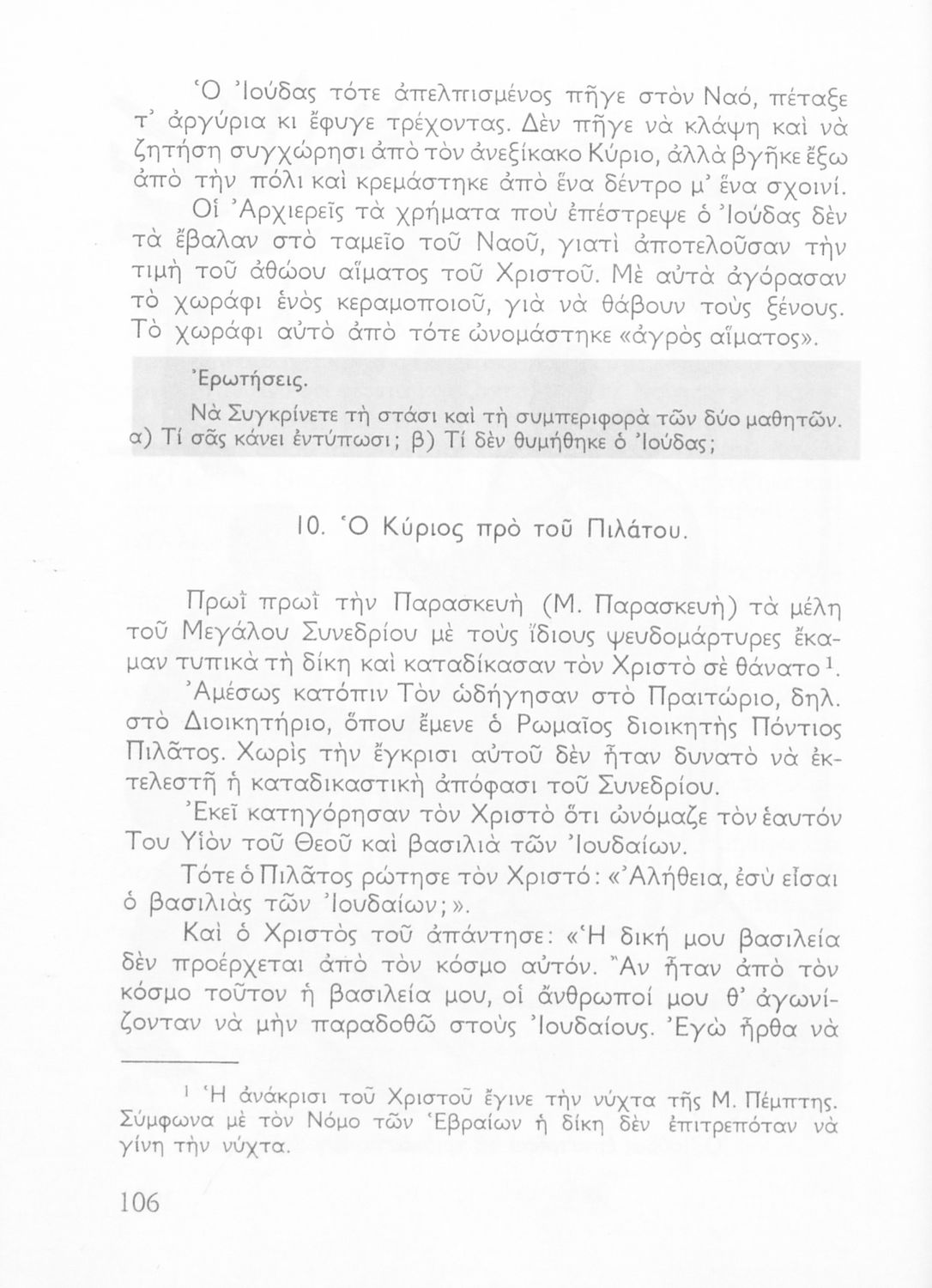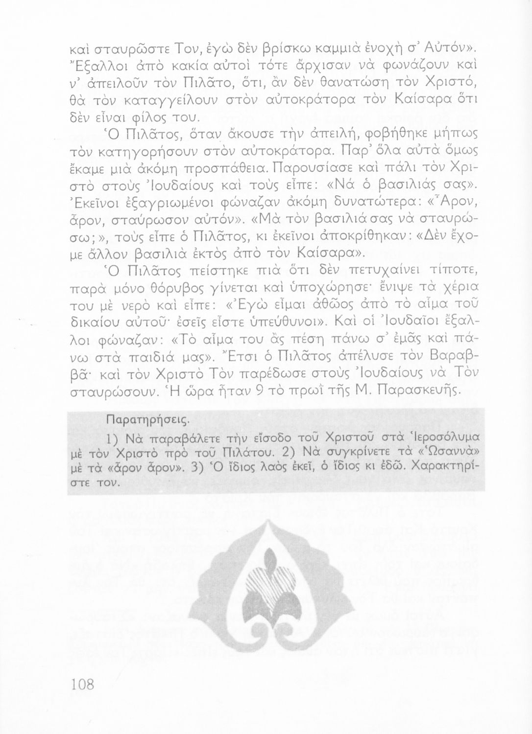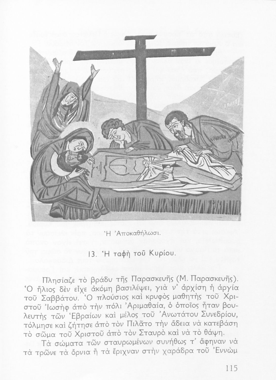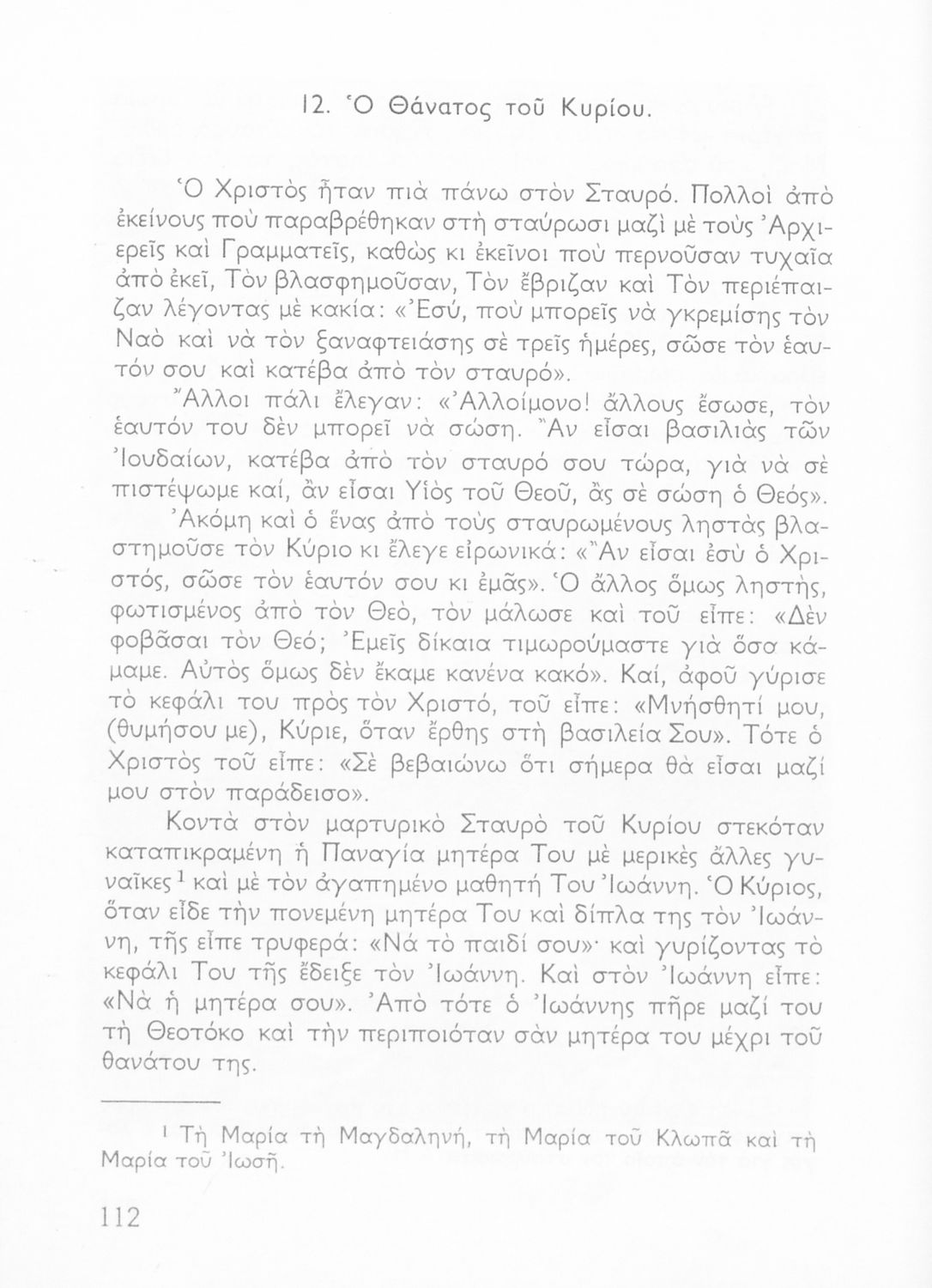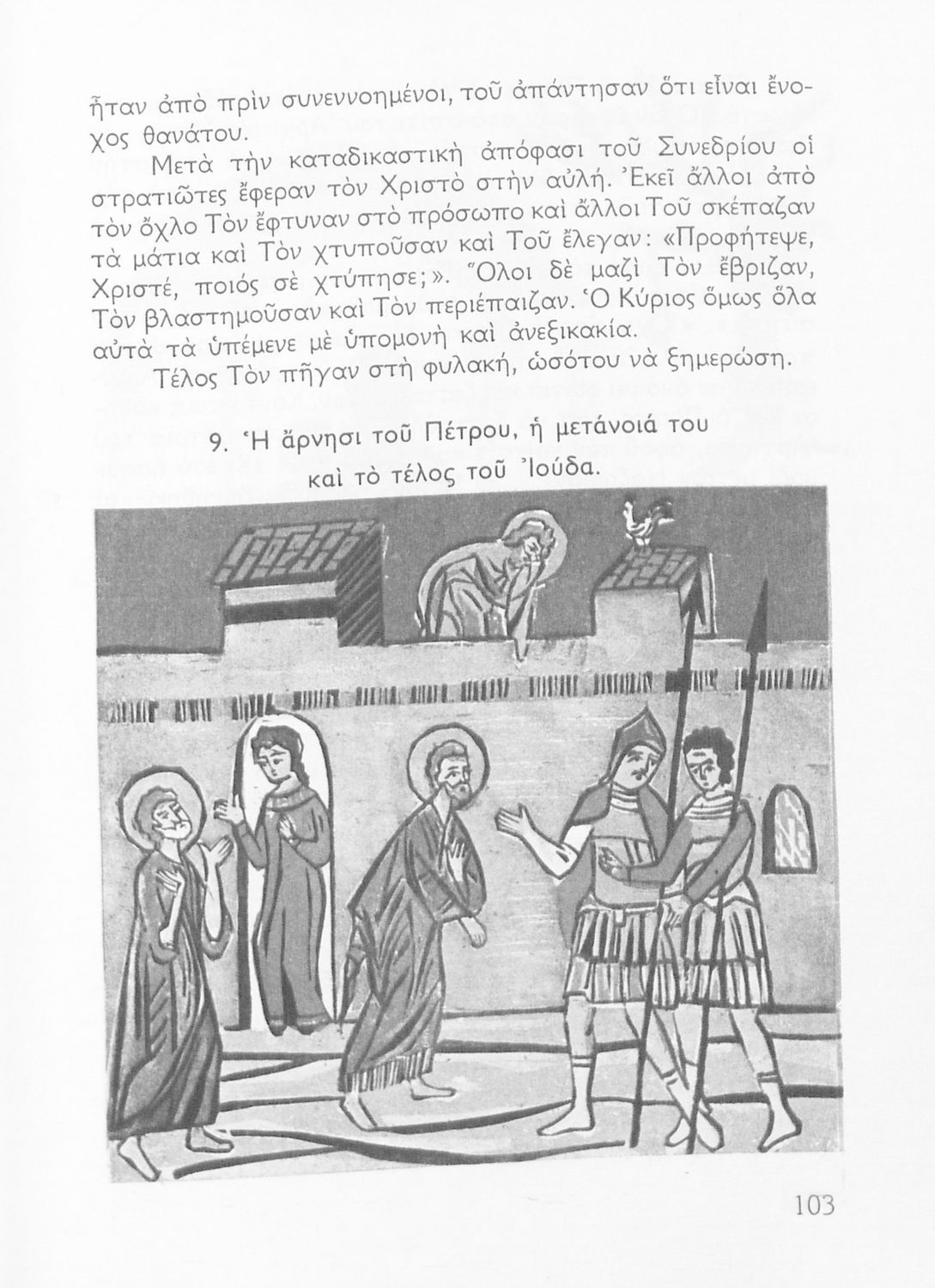Σχολικό εγχειρίδιο Θρησκευτικών Δ' Δημοτικού που παρουσιάζει τη ζωή και τη δράση του Χριστού μέσα από τις παραβολές και τα θαύματά του. Περιέχει και ποιήματα, προσευχές και χριστιανικά θρησκευτικά άσματα και στοιχεία γεωγραφίας της Παλαιστίνης. Φέρει το σύμβολο της δικτατορίας.