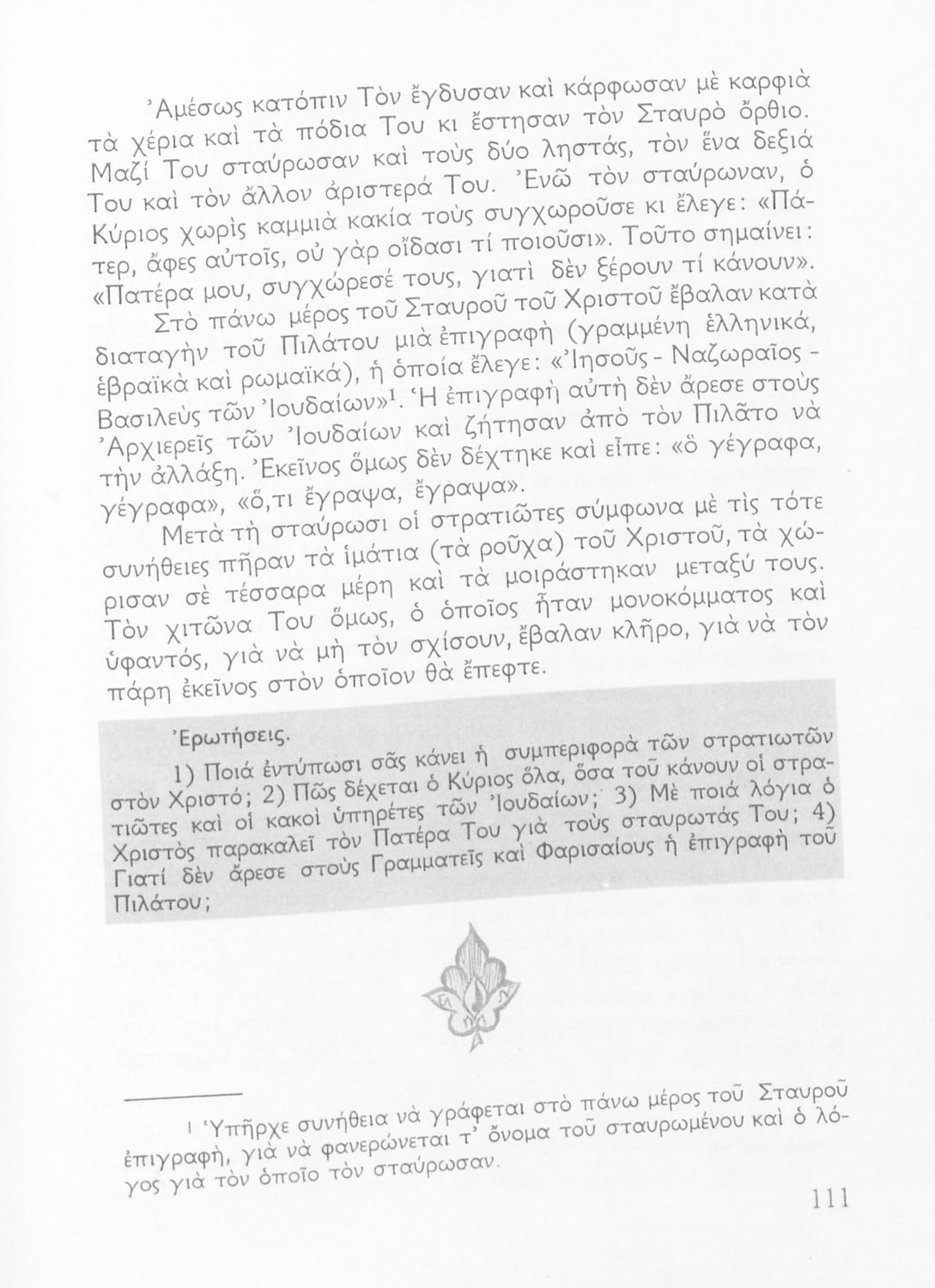 Μαθητικό βοήθημα της Δ΄ Δημοτικού για το μάθημα των Θρησκευτικών. Αναφέρεται στην καινή διαθήκη στη ζωή και το έργο του Χριστού. Τα πάθη, τη σταύρωση και την ανάσταση.