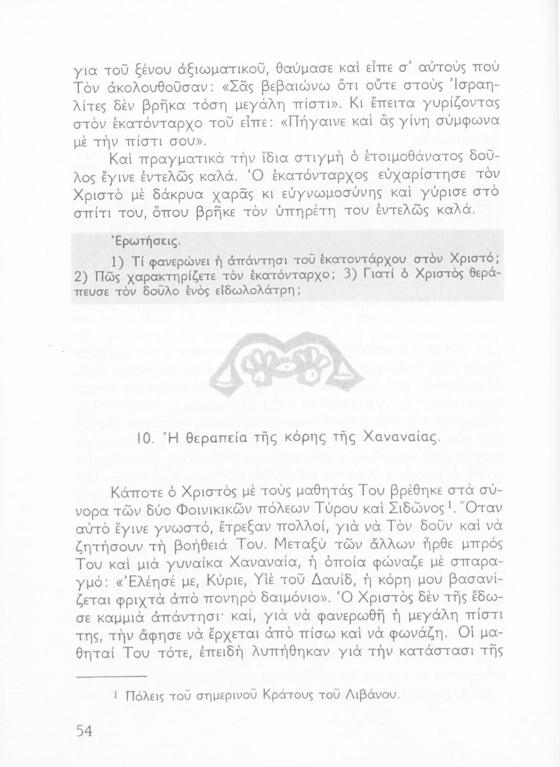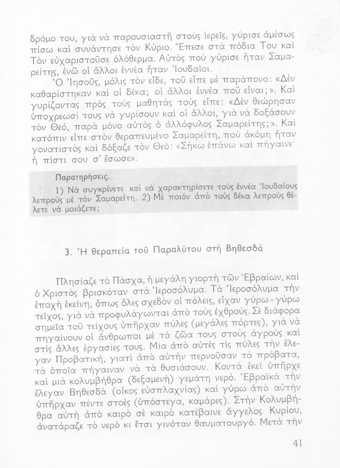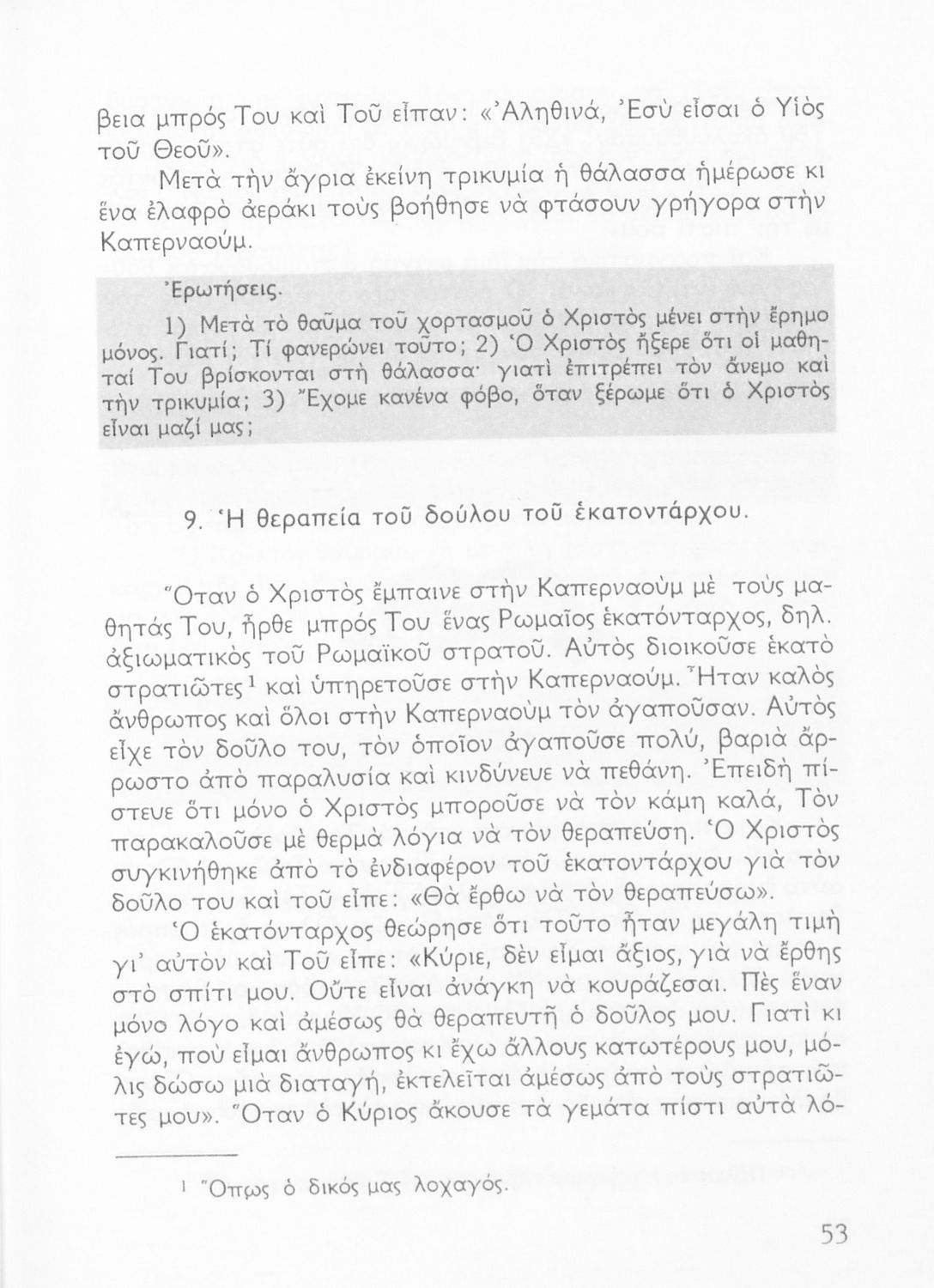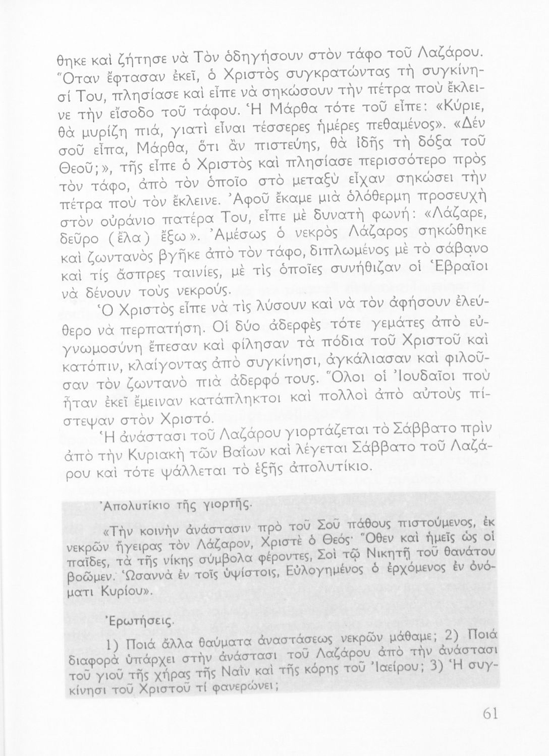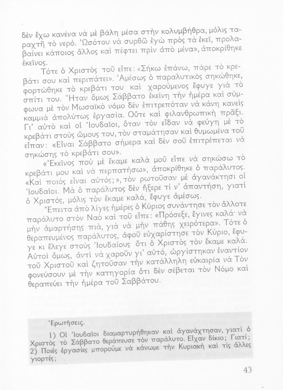 Σχολικό εγχειρίδιο Θρησκευτικών Δ' Δημοτικού που παρουσιάζει τη ζωή και τη δράση του Χριστού μέσα από τις παραβολές και τα θαύματά του. Περιέχει και ποιήματα, προσευχές και χριστιανικά θρησκευτικά άσματα και στοιχεία γεωγραφίας της Παλαιστίνης. Φέρει το σύμβολο της δικτατορίας.