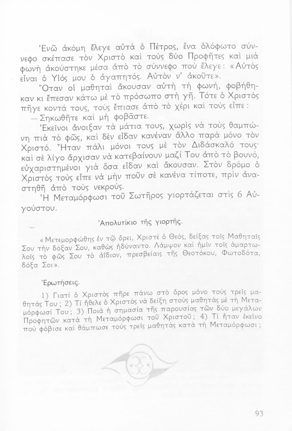 Παρουσίαση περιεχομένου: Σχολικό εγχειρίδιο Θρησκευτικών Δ' Δημοτικού που παρουσιάζει τη ζωή και τη δράση του Χριστού μέσα από τις παραβολές και τα θαύματά του. Περιέχει και ποιήματα, προσευχές και χριστιανικά θρησκευτικά άσματα και στοιχεία γεωγραφίας της Παλαιστίνης..