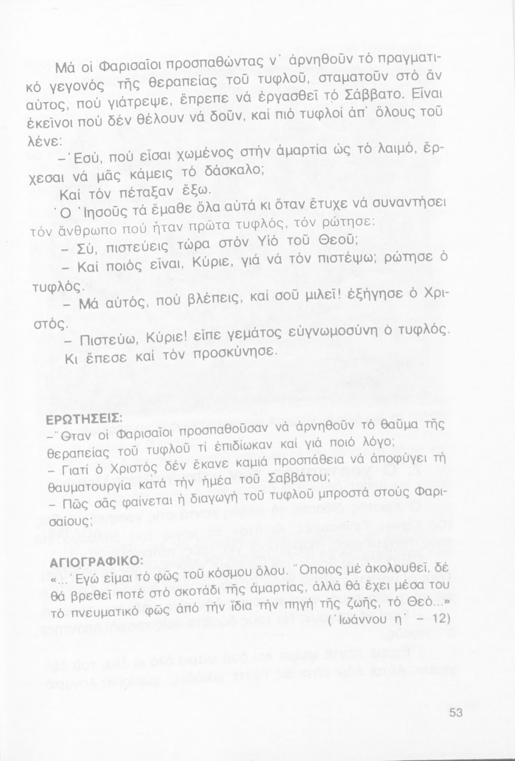 Παρουσίαση περιεχομένου: Σχολικό εγχειρίδιο Θρησκευτικών Δ' Δημοτικού που παρουσιάζει τη ζωή και τη δράση του Χριστού μέσα από τις παραβολές και τα θαύματά του. Περιέχει και ποιήματα, προσευχές και χριστιανικά θρησκευτικά άσματα.
