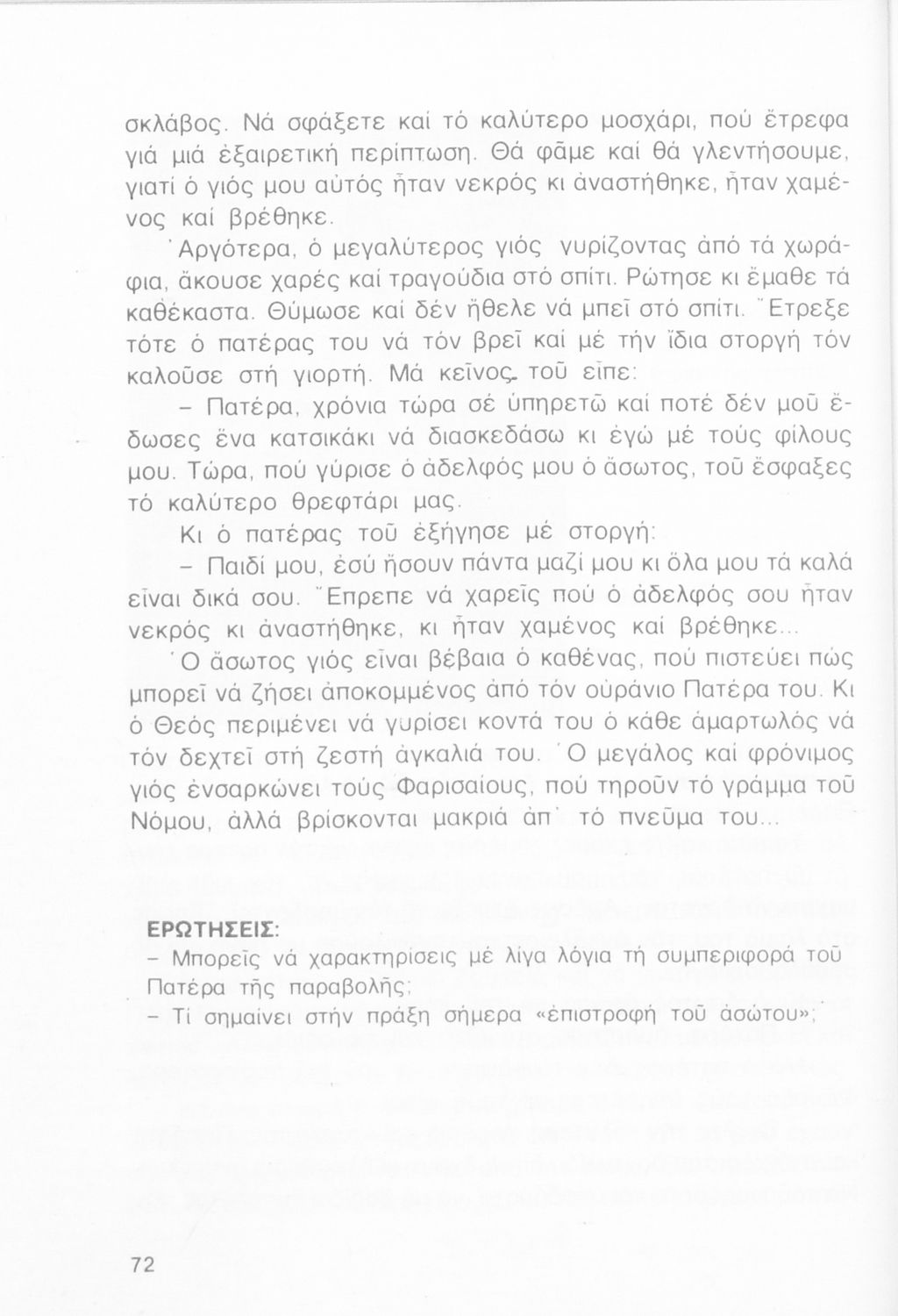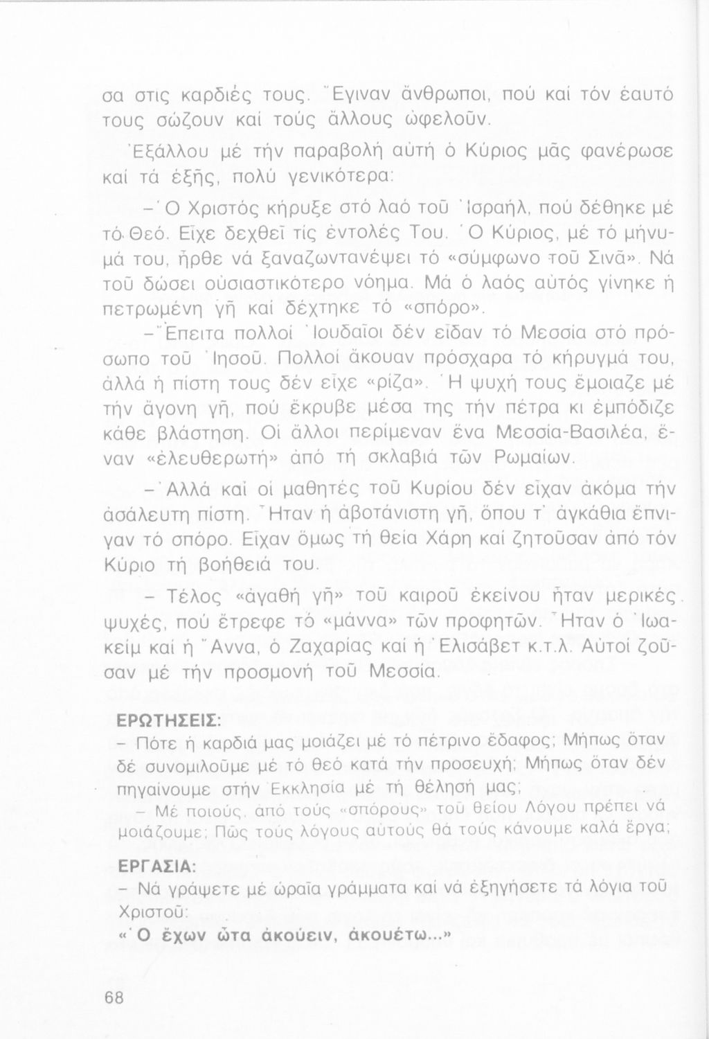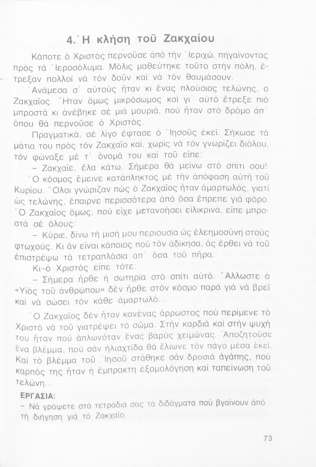 Σχολικό εγχειρίδιο Θρησκευτικών Δ' Δημοτικού που παρουσιάζει τη ζωή και τη δράση του Χριστού μέσα από τις παραβολές και τα θαύματά του. Περιέχει και ποιήματα, προσευχές και χριστιανικά θρησκευτικά άσματα.