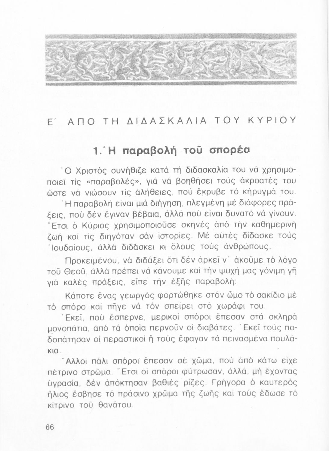 Παρουσίαση περιεχομένου: Σχολικό εγχειρίδιο Θρησκευτικών Δ' Δημοτικού που παρουσιάζει τη ζωή και τη δράση του Χριστού μέσα από τις παραβολές και τα θαύματά του. Περιέχει και ποιήματα, προσευχές και χριστιανικά θρησκευτικά άσματα.