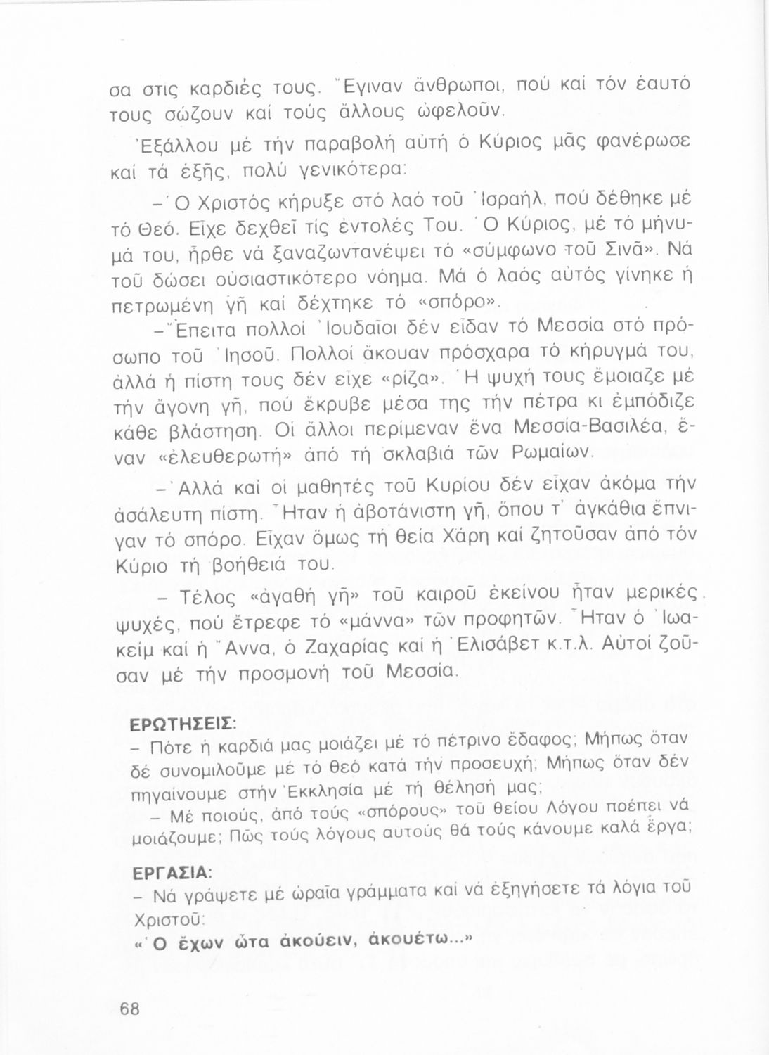 Μαθητικό βοήθημα της Δ΄ Δημοτικού για το μάθημα των Θρησκευτικών. Αναφέρεται στην καινή διαθήκη στη ζωή και το έργο του Χριστού. Τα πάθη, τη σταύρωση και την ανάσταση.