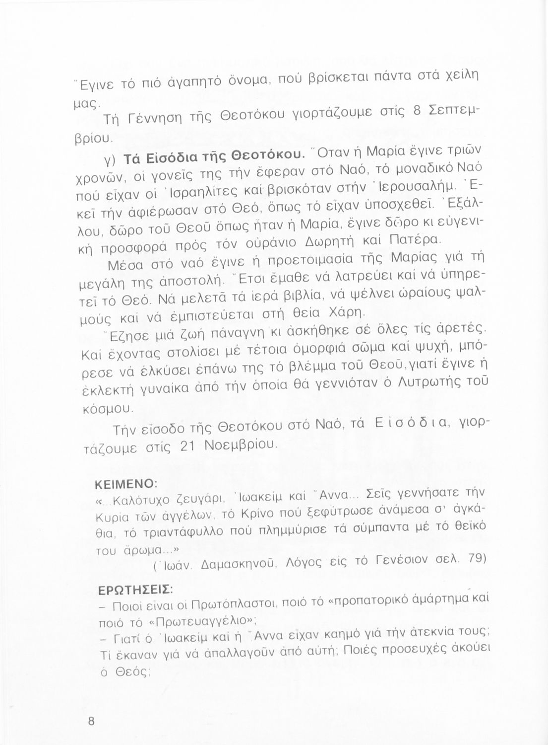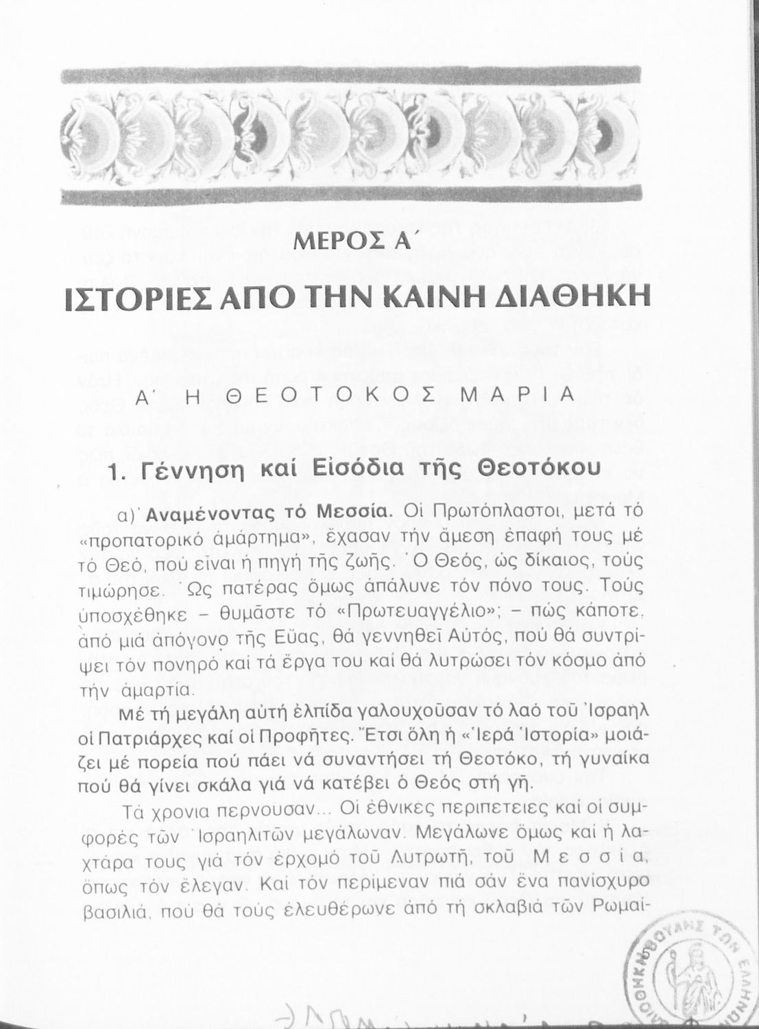 Σχολικό εγχειρίδιο Θρησκευτικών Δ΄ Δημοτικού που περιλαμβάνει την ιστορία της Καινής Διαθήκης από τον Ευαγγελισμό της Θεοτόκου μέχρι τη δράση των Αποστόλων. Περιέχει ύμνους και προσευχές.