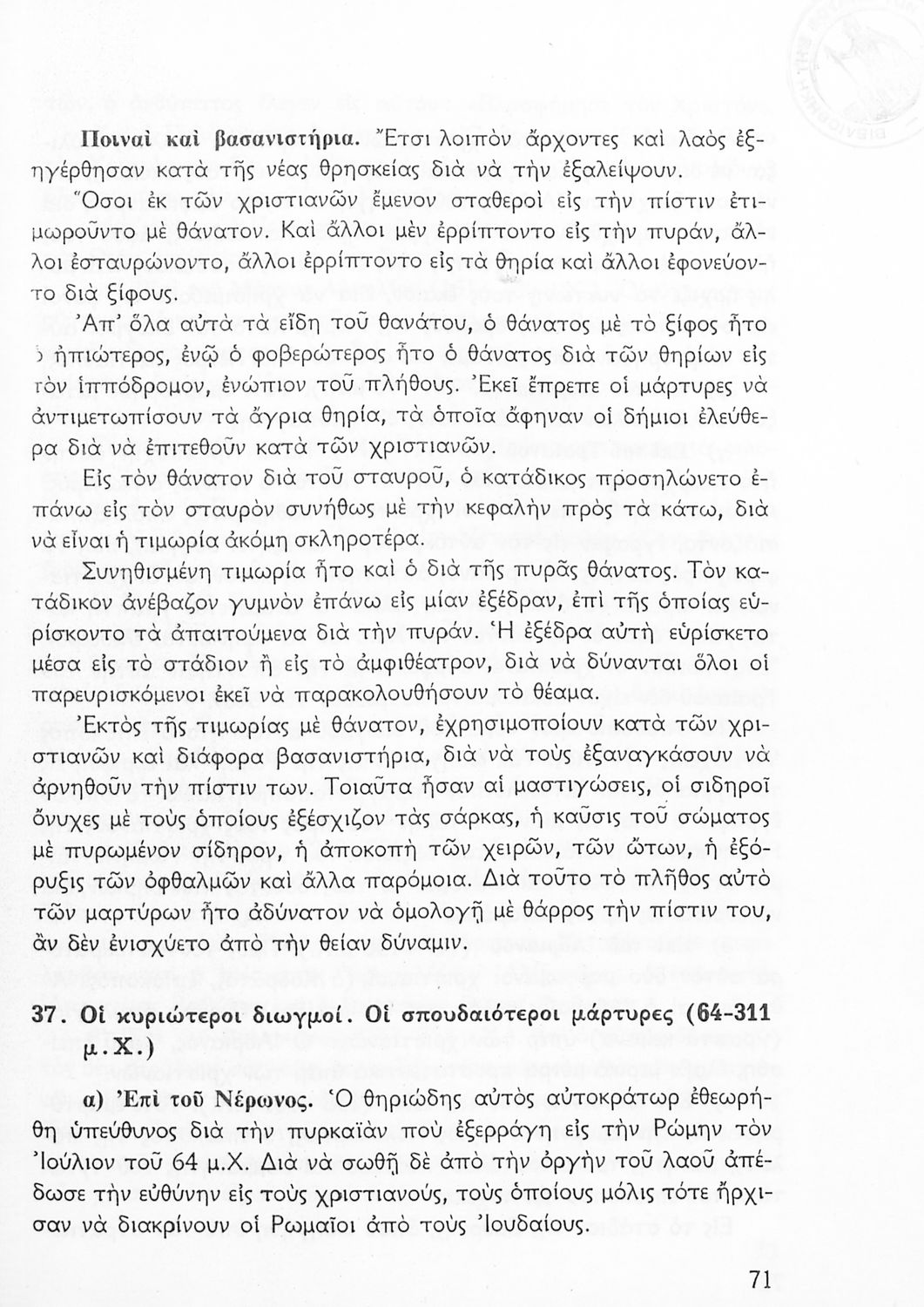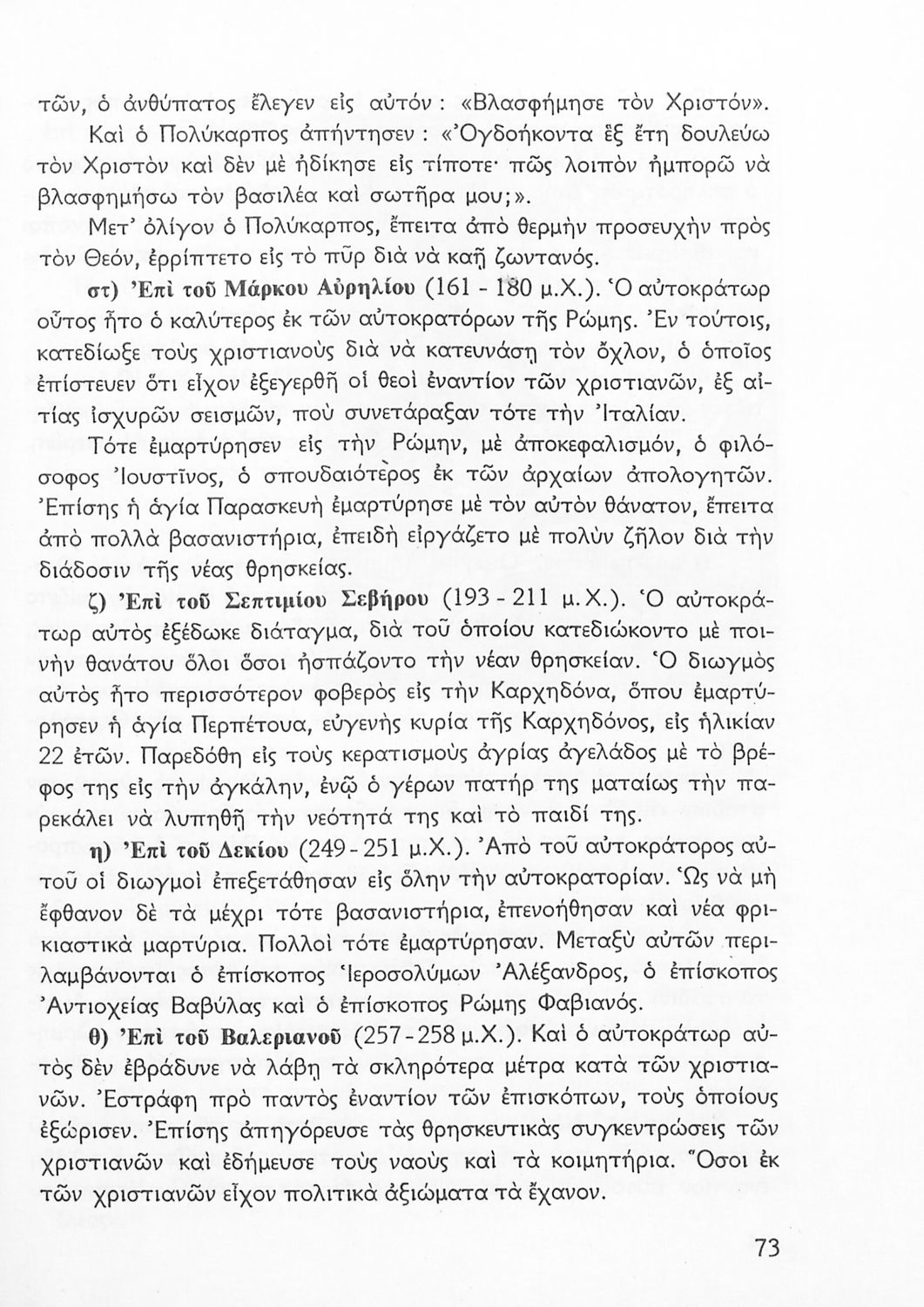 Σχολικό εγχειρίδιο Θρησκευτικών Ε΄ Δημοτικού που αποτελεί μια ιστορική επισκόπηση της Ορθόδοξης Εκκλησίας από την ίδρυσή της μέχρι την ίδρυση της Εκκλησίας της Ελλάδας. Φέρει το σύμβολο της δικτατορίας.