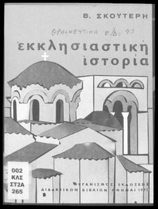 Βαθμίδα εκπαίδευσης: Πρωτοβάθμια Τάξη: Ε' Δημοτικού Μάθημα: Θρησκευτικά Γλώσσα: Απλή καθαρεύουσα Παρουσίαση περιεχομένου: Σχολικό εγχειρίδιο Θρησκευτικών Ε΄ Δημοτικού που αποτελεί μια ιστορική επισκόπηση της Ορθόδοξης Εκκλησίας από την ίδρυσή της μέχρι την ίδρυση της Εκκλησίας της Ελλάδας. Φέρει το σύμβολο της δικτατορίας. |