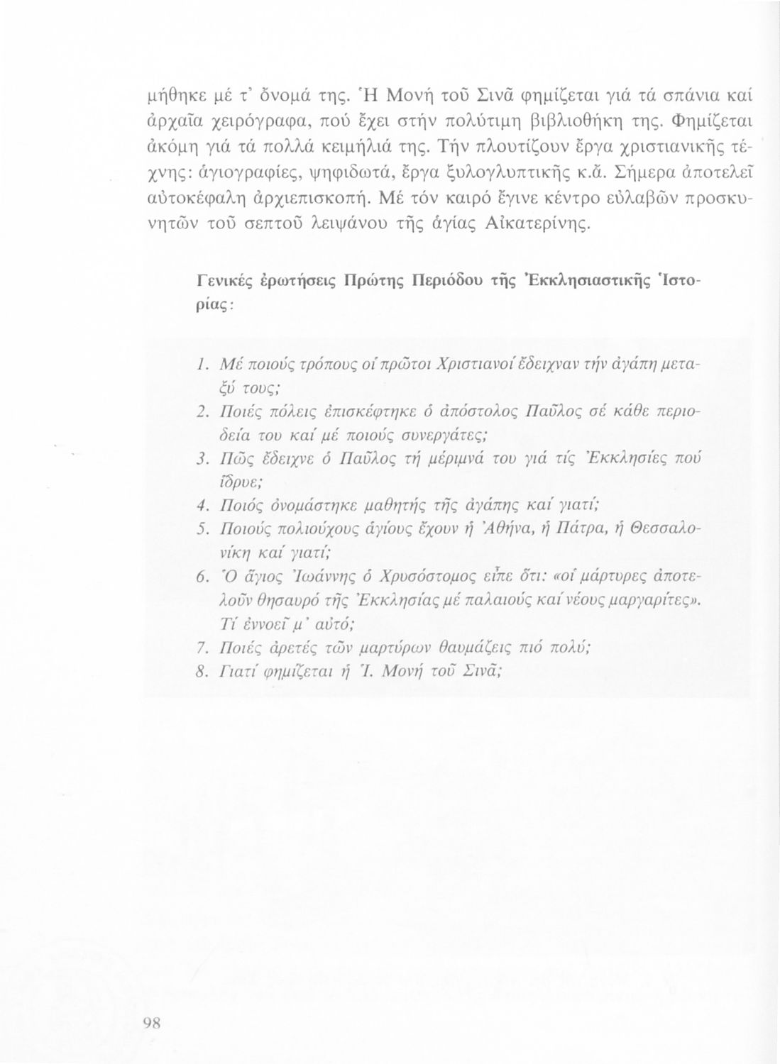Σχολικό εγχειρίδιο Θρησκευτικών Ε΄ Δημοτικού που περιέχει την ιστορία της Ορθόδοξης Εκκλησίας από την ίδρυσή της μέχρι την δημιουργία της Εκκλησίας της Ελλάδας.