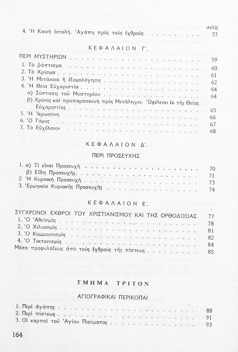 Σχολικό εγχειρίδιο Θρησκευτικών ΣΤ΄ Δημοτικού που αναλύει την έννοια της κατήχησης στις διάφορες θρησκείες με έμφαση στο ορθόδοξο χριστιανικό δόγμα, το οποίο εξετάζει από δογματική και ηθική σκοπιά. Περιλαμβάνει και στοιχεία λειτουργικής της Ορθόδοξης Εκκλησίας. Φέρει το σύμβολο της δικτατορίας.