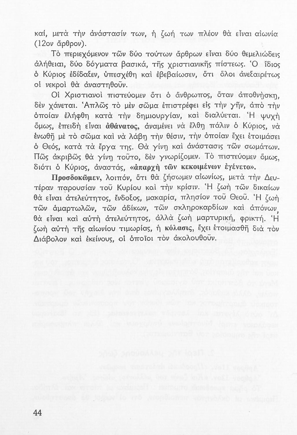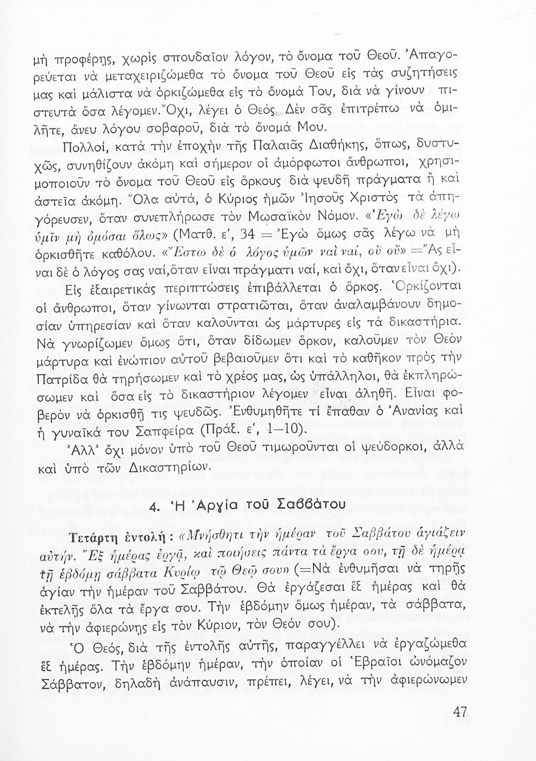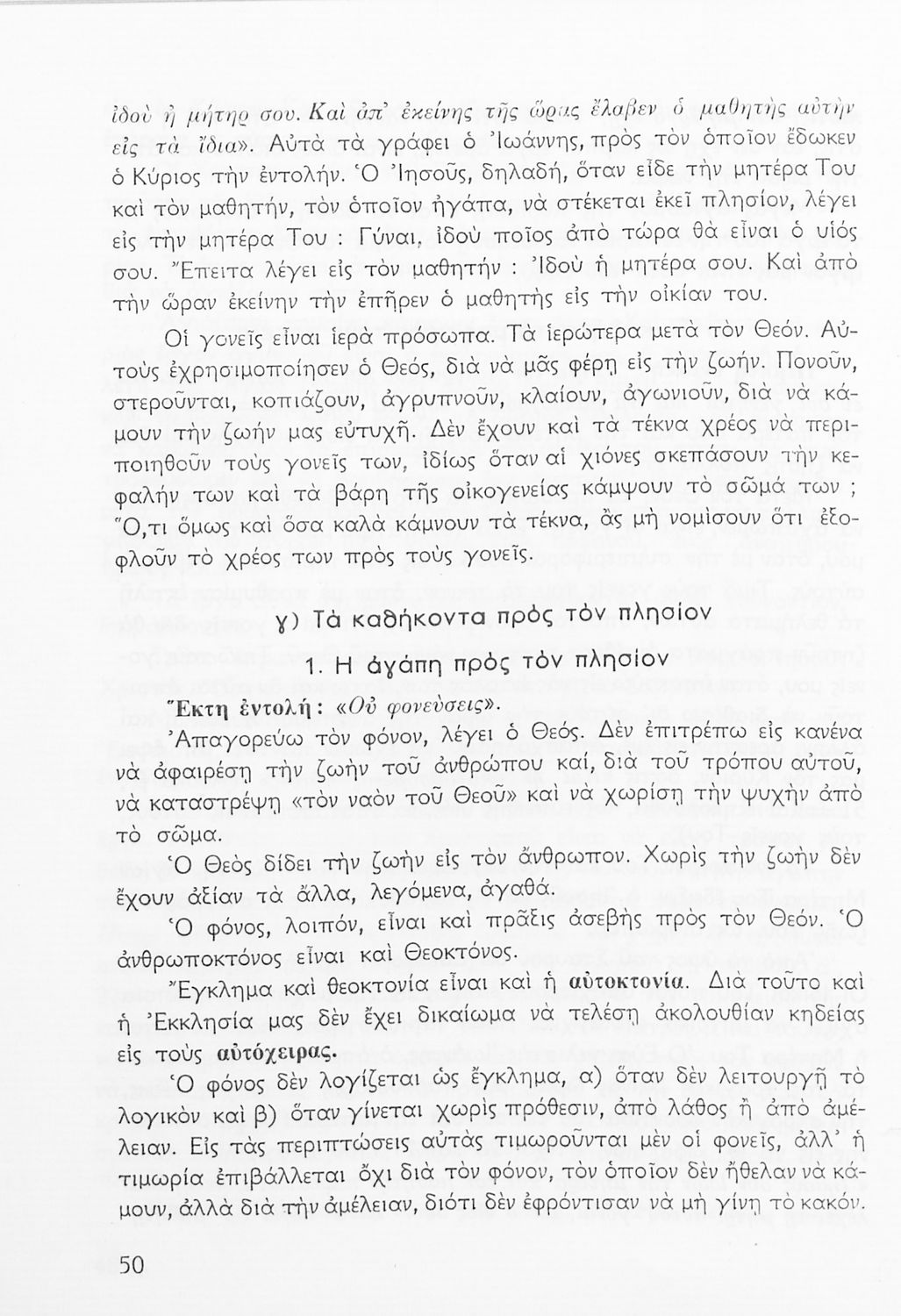 Σχολικό εγχειρίδιο Θρησκευτικών ΣΤ΄ Δημοτικού που αναλύει την έννοια της κατήχησης στις διάφορες θρησκείες με έμφαση στο ορθόδοξο χριστιανικό δόγμα, το οποίο εξετάζει από δογματική και ηθική σκοπιά. Περιλαμβάνει και στοιχεία λειτουργικής της Ορθόδοξης Εκκλησίας. Φέρει το σύμβολο της δικτατορίας.