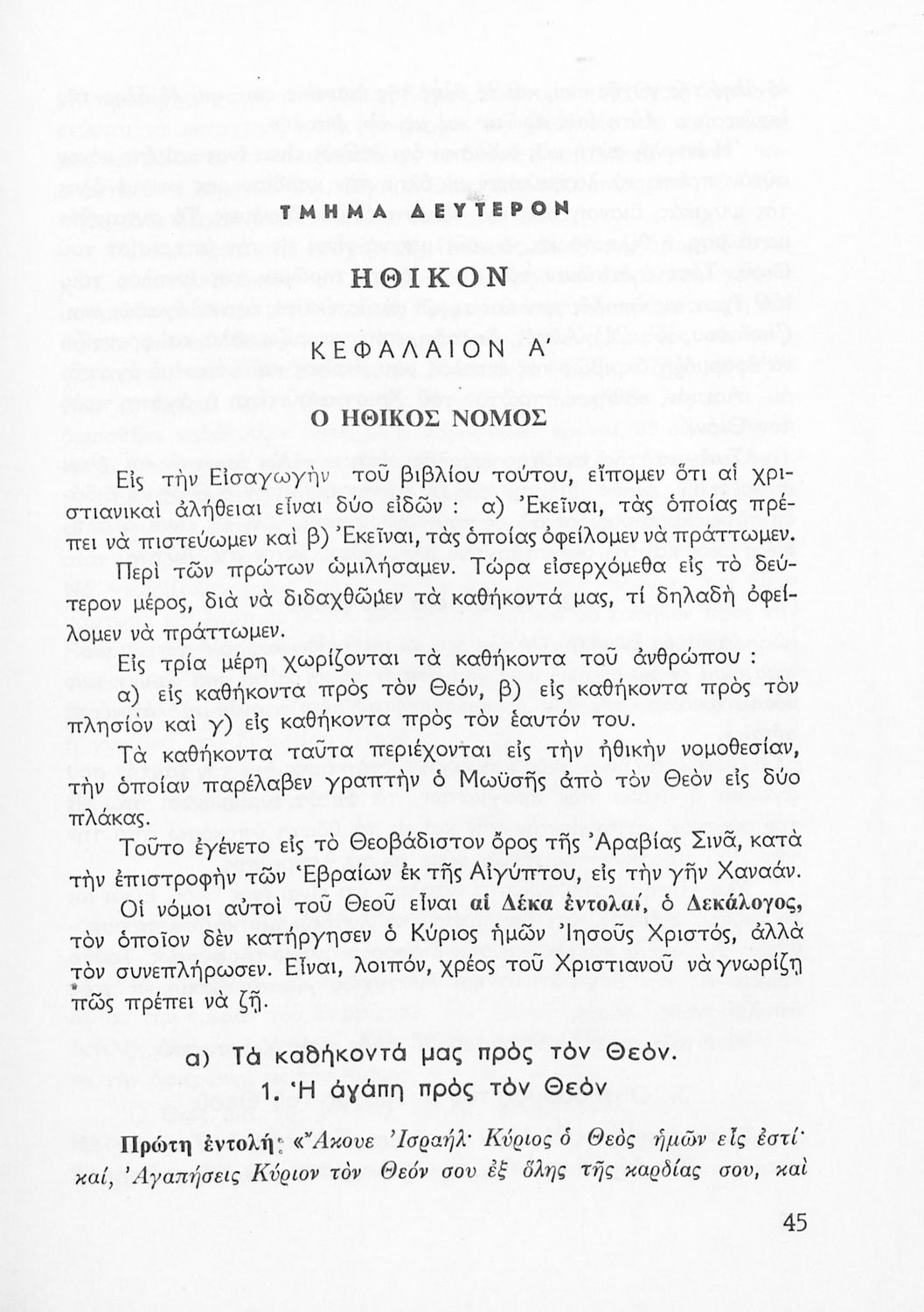 Βαθμίδα εκπαίδευσης: Πρωτοβάθμια Τάξη: ΣΤ' Δημοτικού Μάθημα: Θρησκευτικά Γλώσσα: Καθαρεύουσα Παρουσίαση περιεχομένου: Σχολικό εγχειρίδιο Θρησκευτικών ΣΤ΄ Δημοτικού που αναλύει την έννοια της κατήχησης στις διάφορες θρησκείες με έμφαση στο ορθόδοξο χριστιανικό δόγμα, το οποίο εξετάζει από δογματική και ηθική σκοπιά. Περιλαμβάνει και στοιχεία λειτουργικής της Ορθόδοξης Εκκλησίας. Φέρει το σύμβολο της δικτατορίας. |