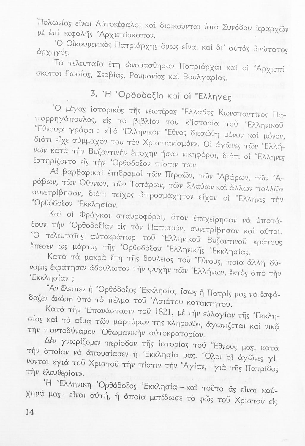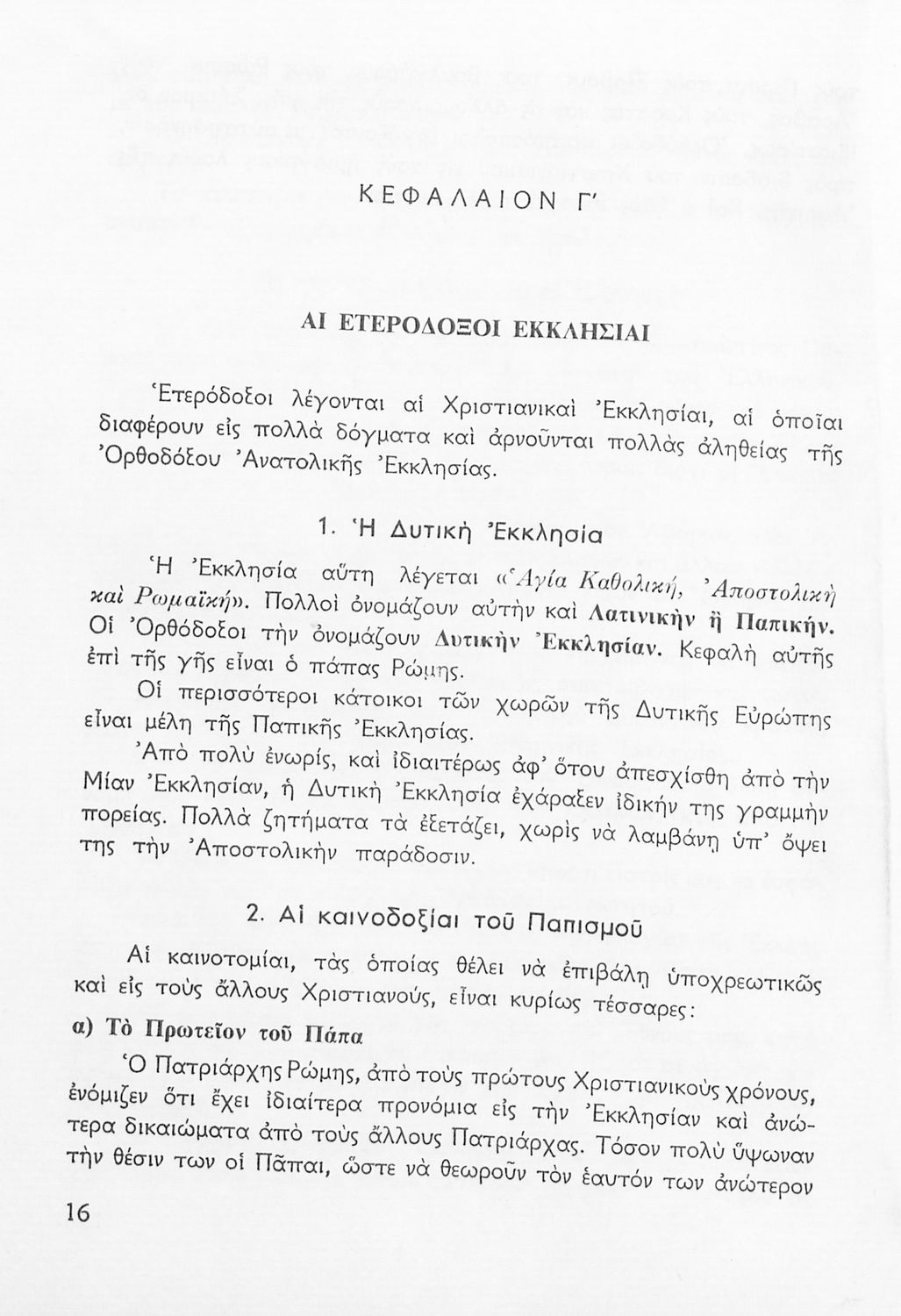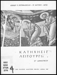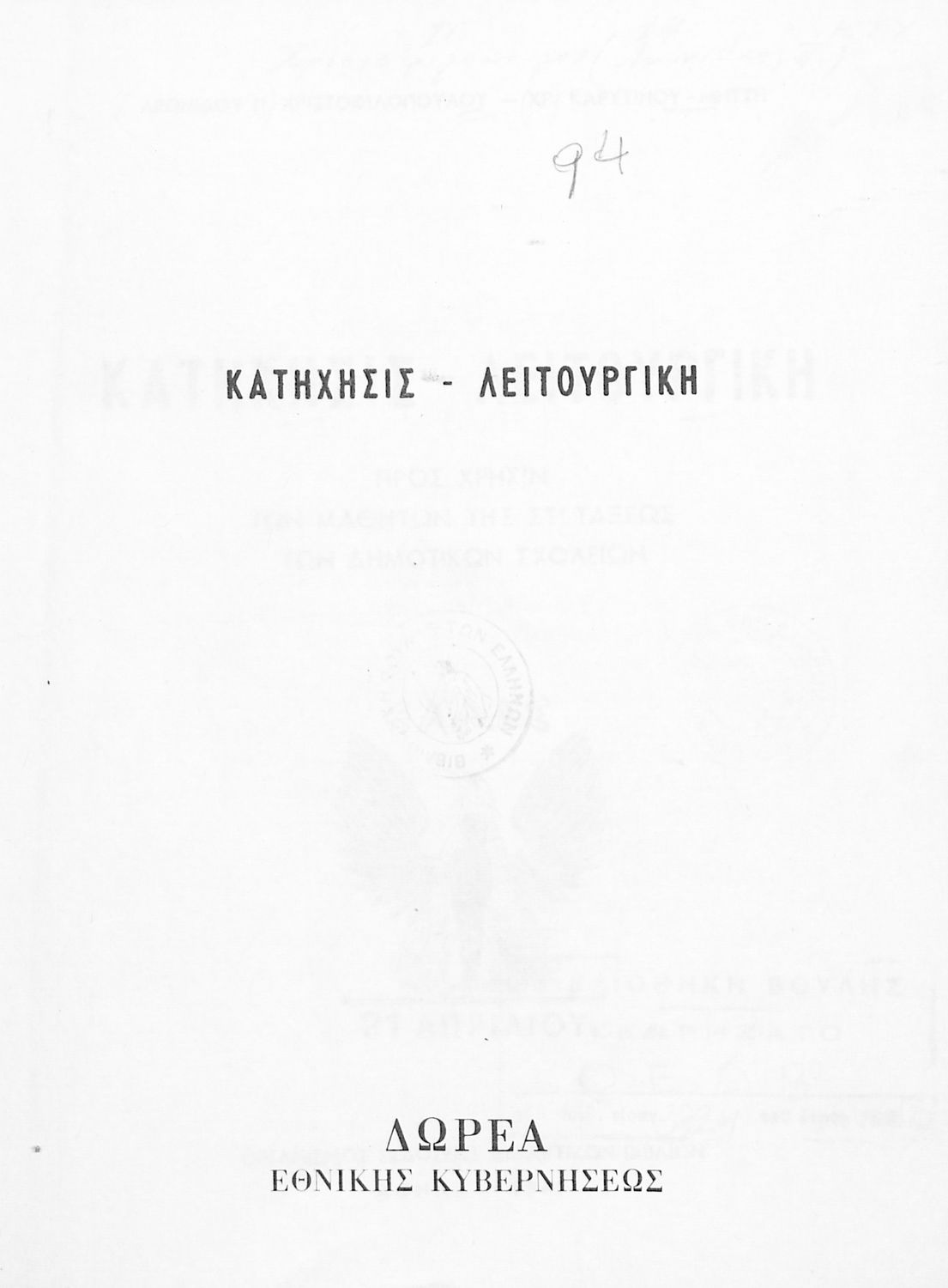 Βαθμίδα εκπαίδευσης: Πρωτοβάθμια Τάξη: ΣΤ' Δημοτικού Μάθημα: Θρησκευτικά Γλώσσα: Καθαρεύουσα Παρουσίαση περιεχομένου: Σχολικό εγχειρίδιο Θρησκευτικών ΣΤ΄ Δημοτικού που αναλύει την έννοια της κατήχησης στις διάφορες θρησκείες με έμφαση στο ορθόδοξο χριστιανικό δόγμα, το οποίο εξετάζει από δογματική και ηθική σκοπιά. Περιλαμβάνει και στοιχεία λειτουργικής της Ορθόδοξης Εκκλησίας. Φέρει το σύμβολο της δικτατορίας. |