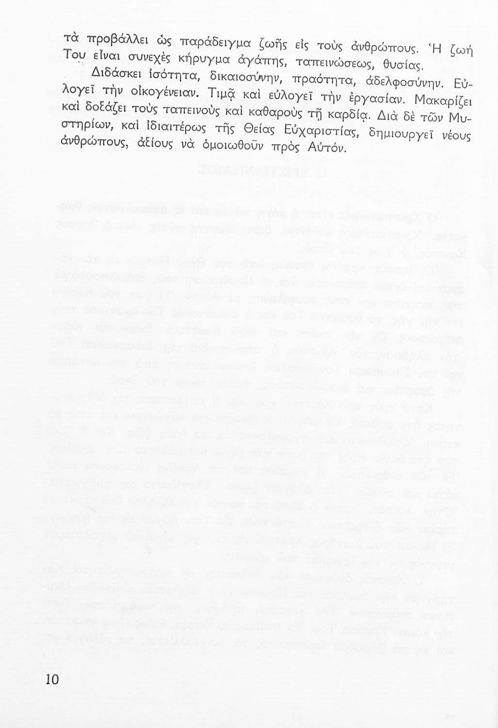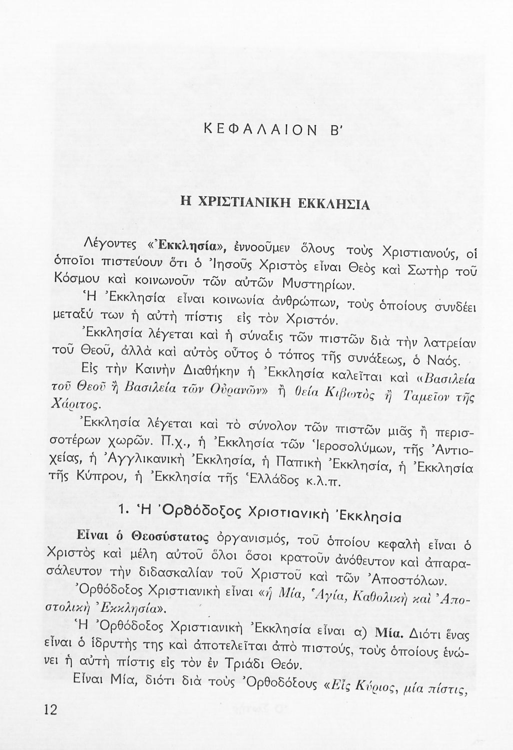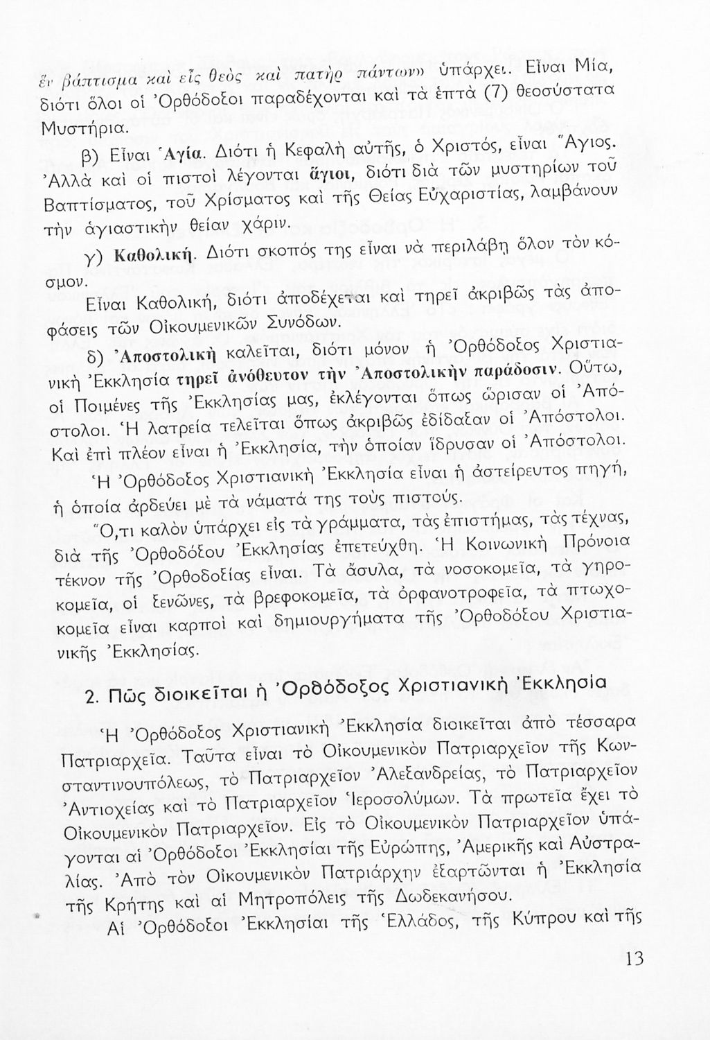 Σχολικό εγχειρίδιο Θρησκευτικών ΣΤ΄ Δημοτικού που αναλύει την έννοια της κατήχησης στις διάφορες θρησκείες με έμφαση στο ορθόδοξο χριστιανικό δόγμα, το οποίο εξετάζει από δογματική και ηθική σκοπιά. Περιλαμβάνει και στοιχεία λειτουργικής της Ορθόδοξης Εκκλησίας. Φέρει το σύμβολο της δικτατορίας.