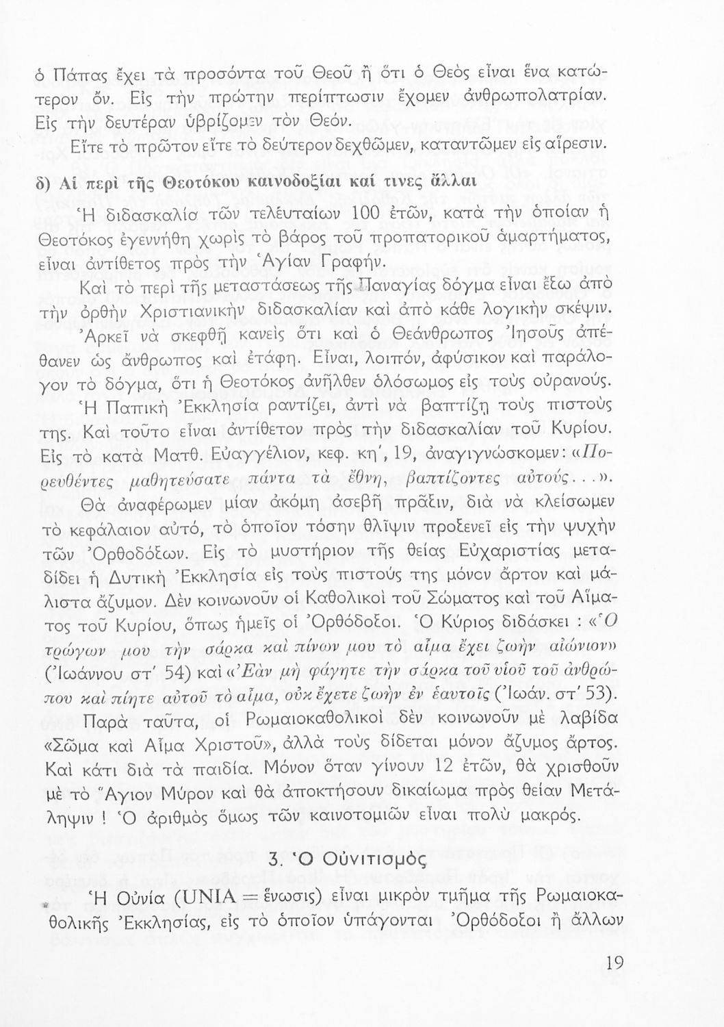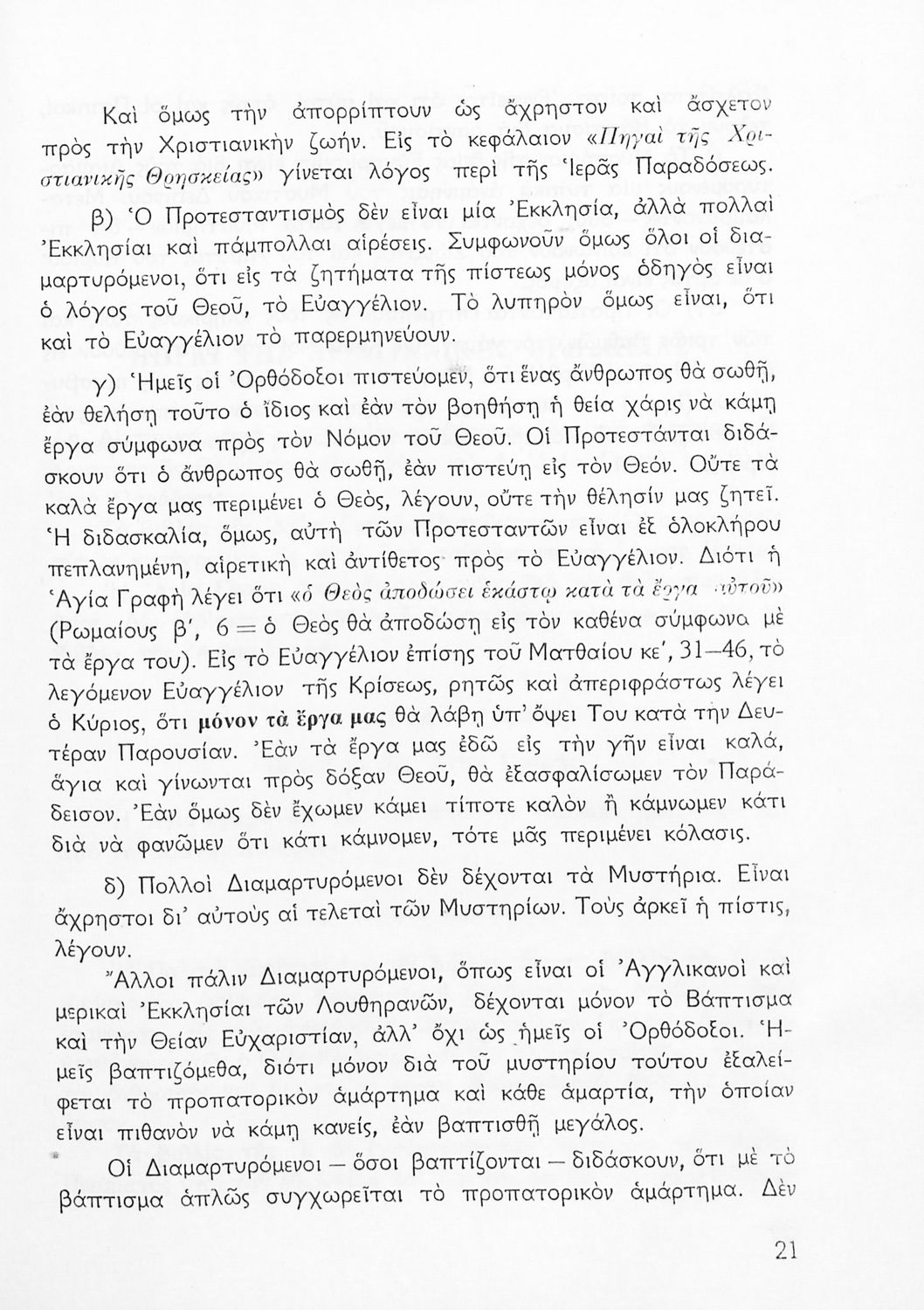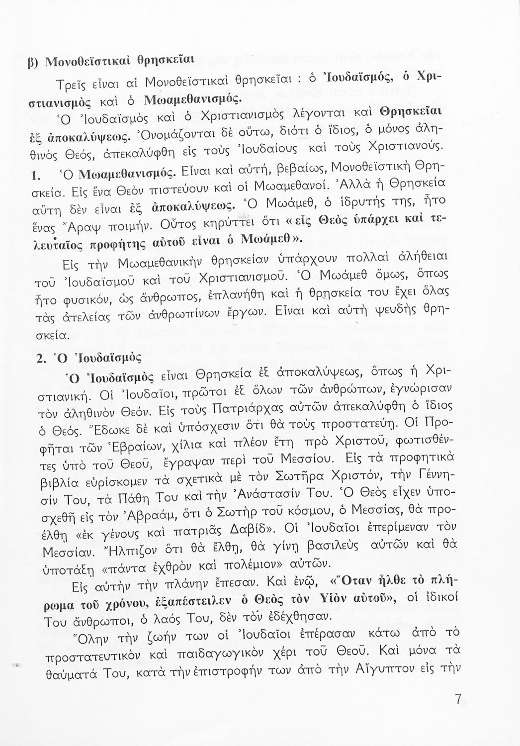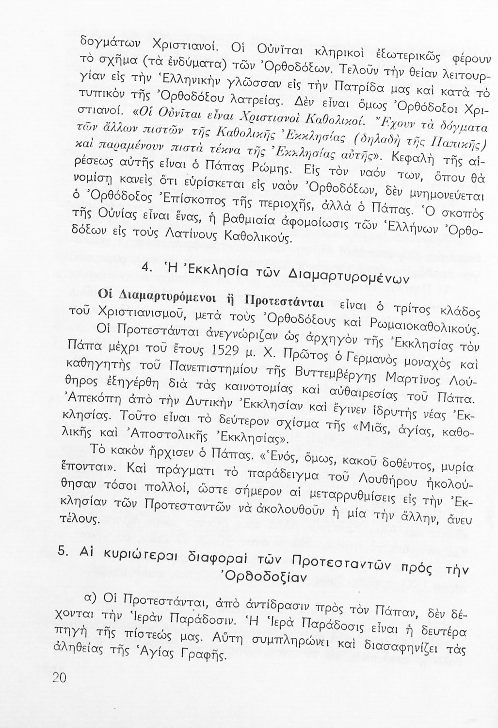Σχολικό εγχειρίδιο Θρησκευτικών ΣΤ΄ Δημοτικού που αναλύει την έννοια της κατήχησης στις διάφορες θρησκείες με έμφαση στο ορθόδοξο χριστιανικό δόγμα, το οποίο εξετάζει από δογματική και ηθική σκοπιά. Περιλαμβάνει και στοιχεία λειτουργικής της Ορθόδοξης Εκκλησίας. Φέρει το σύμβολο της δικτατορίας.