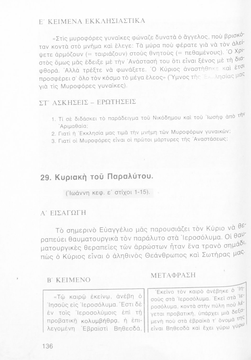 Σχολικό εγχειρίδιο Θρησκευτικών για τις Ε΄ και ΣΤ΄ Δημοτικού που περιέχει περικοπές Ευαγγελίων και ερμηνευτικές σημειώσεις.