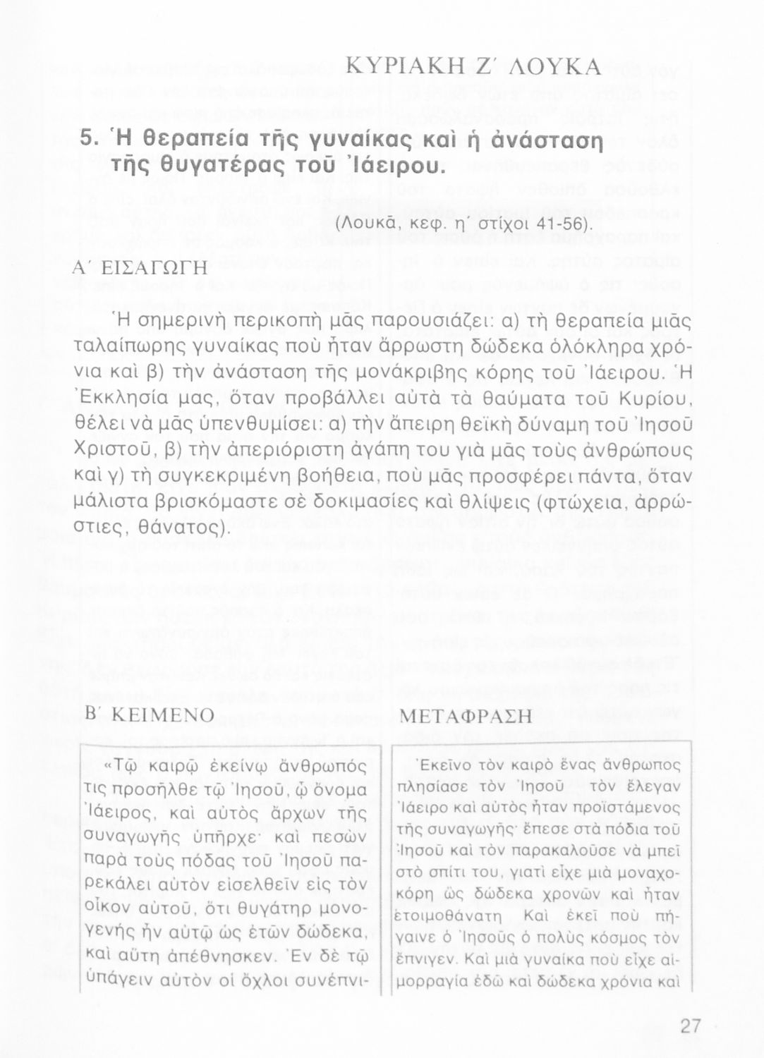 Σχολικό εγχειρίδιο Θρησκευτικών για τις Ε΄ και ΣΤ΄ Δημοτικού που περιέχει περικοπές Ευαγγελίων και ερμηνευτικές σημειώσεις.