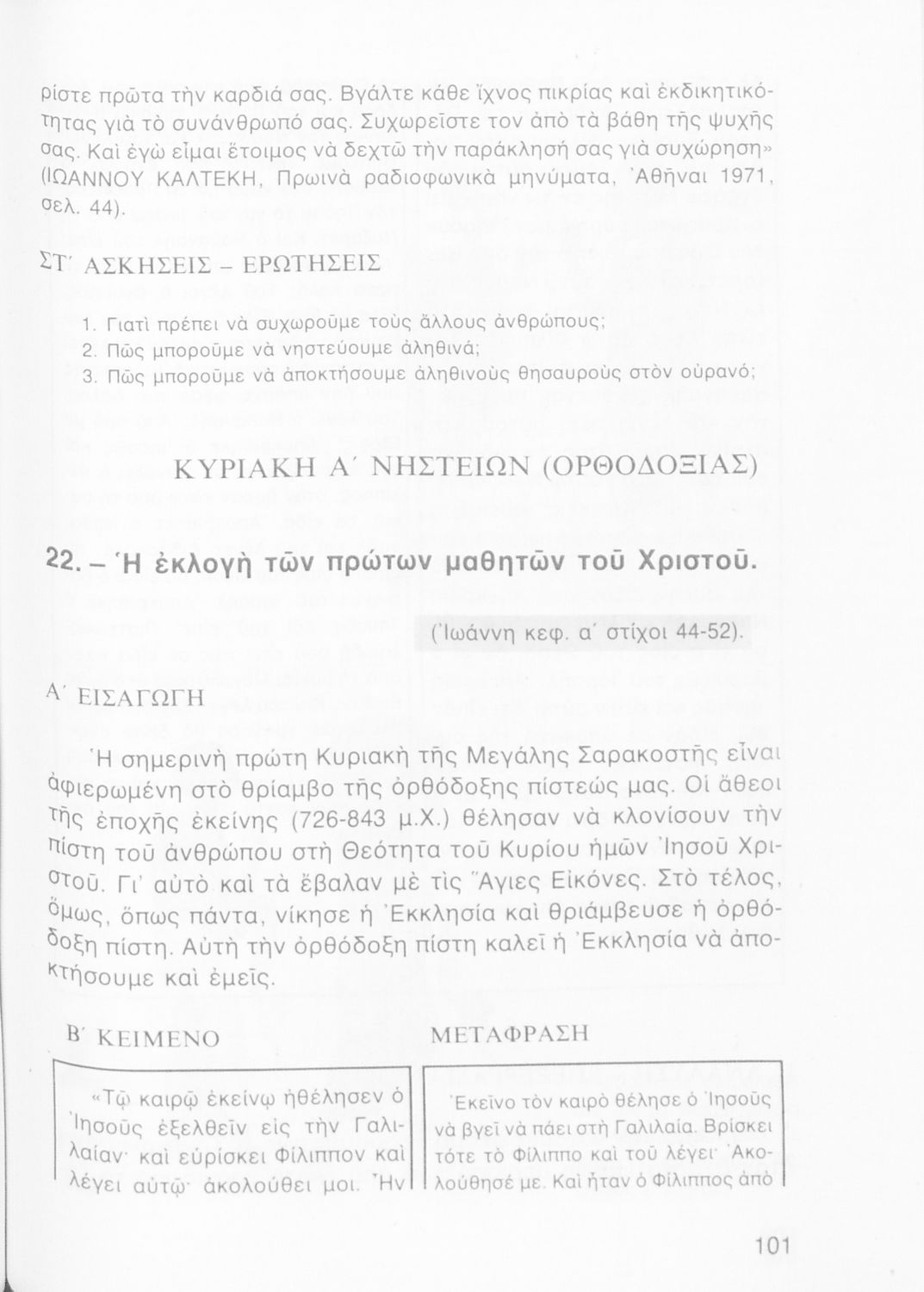 Σχολικό εγχειρίδιο Θρησκευτικών για τις Ε΄ και ΣΤ΄ Δημοτικού που περιέχει περικοπές Ευαγγελίων και ερμηνευτικές σημειώσεις.