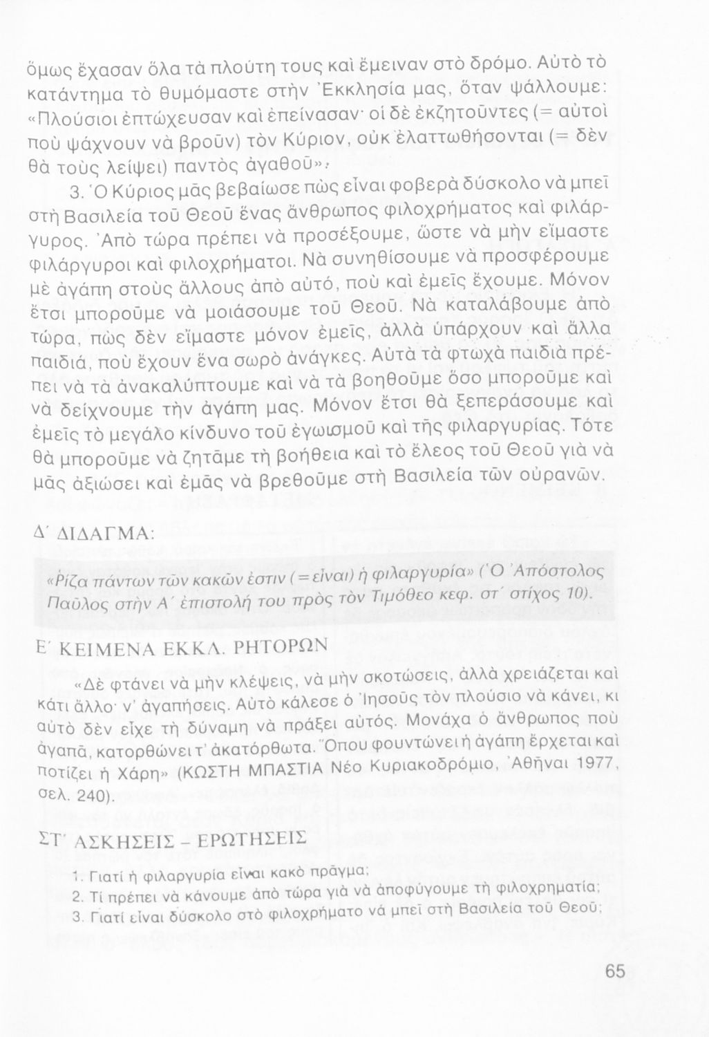 Σχολικό εγχειρίδιο Θρησκευτικών ΣΤ΄ Δημοτικού που περιέχει περικοπές Ευαγγελίων, ερμηνευτικές σημειώσεις και διδάγματα.