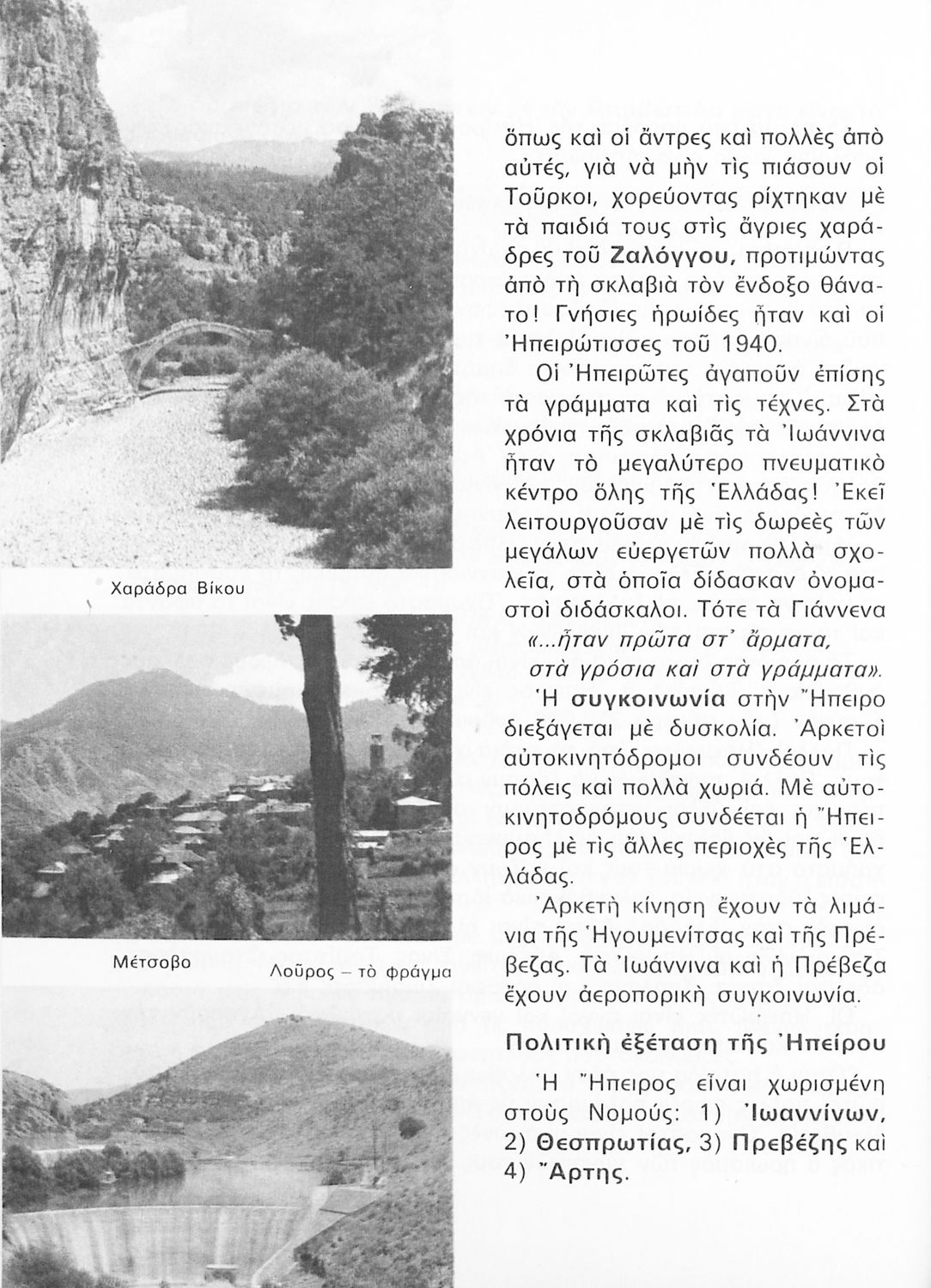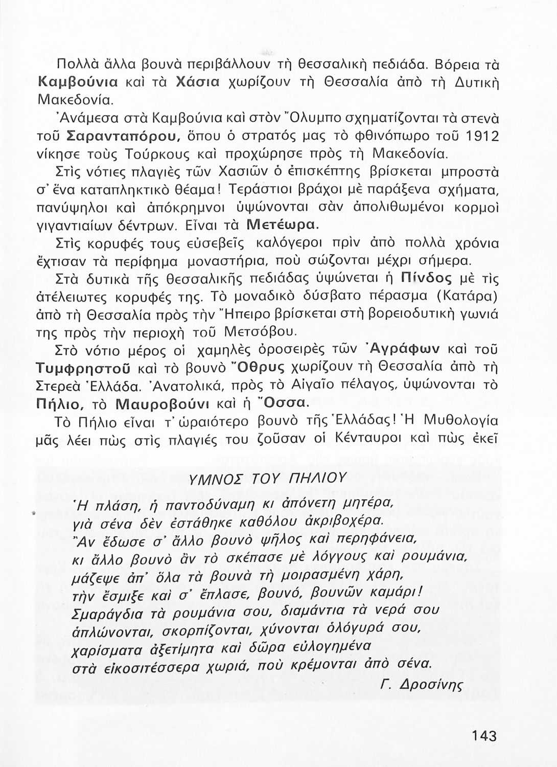 Σχολικό εγχειρίδιο Γεωγραφίας Γ ΄ και Δ' Δημοτικού. Το πρώτο μέρος του βιβλίου απευθύνεται σε μαθητές της Γ' Δημοτικού και αποτελεί μια εισαγωγή στην πατριδογνωσία με έμφαση στις παραδόσεις της ελληνικής επαρχίας. Το δεύτερο μέρος αφορά την Δ' Δημοτικού και εξετάζει την οικονομική, πολιτική και γεωφυσική γεωγραφία της Ελλάδας.