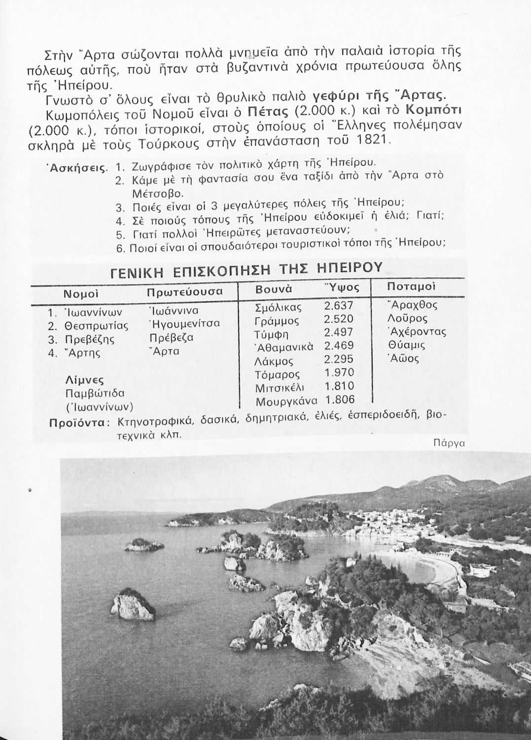 Μαθητικό βοήθημα Γεωγραφίας για τις Γ΄ και Δ΄ Δημοτικού που περιέχει εισαγωγή στη φυσική γεωγραφία και εξετάζει την Ελλάδα ανά διαμέρισμα και νομό από γεωφυσική, οικονομική και πολιτική άποψη.