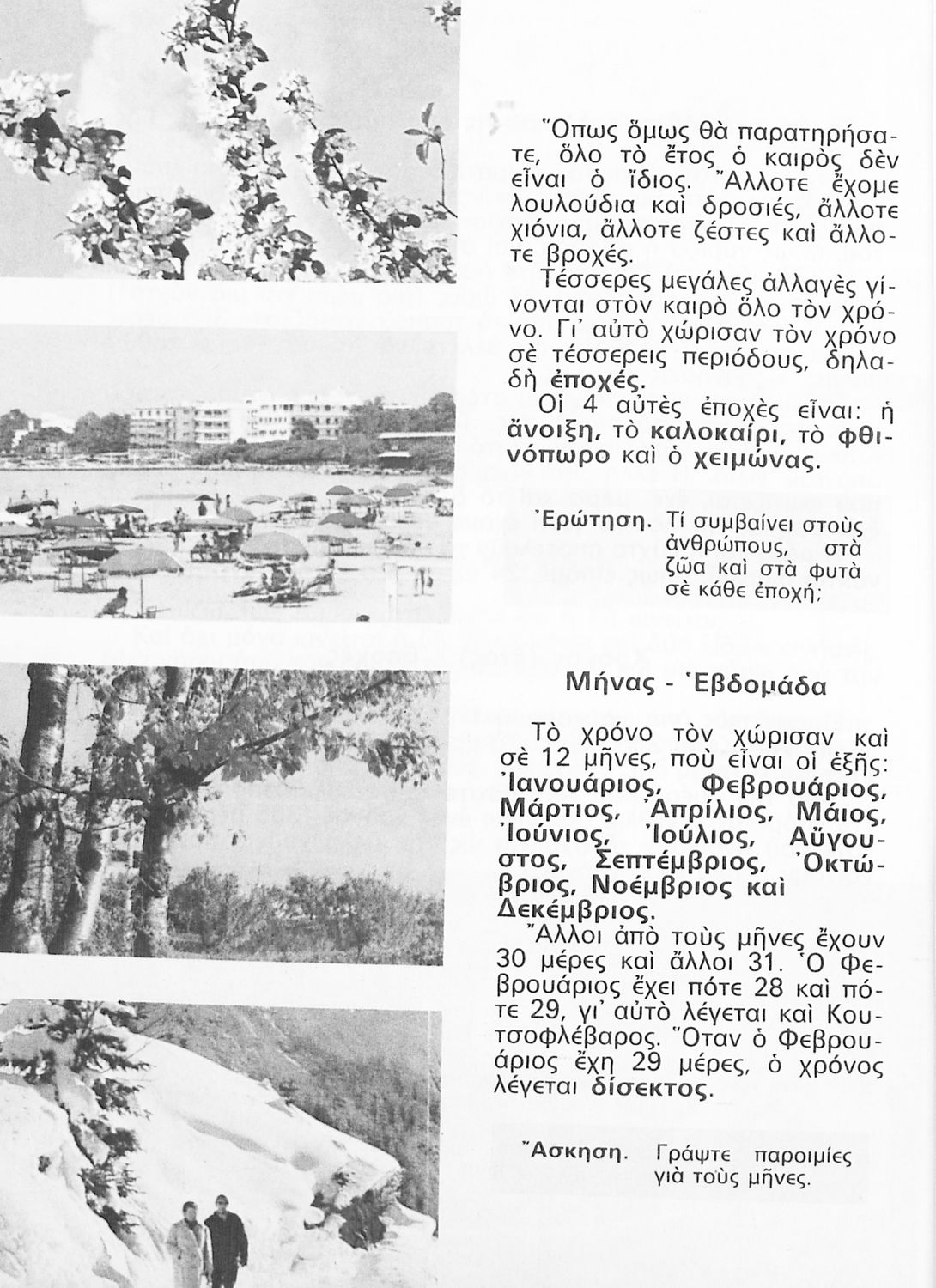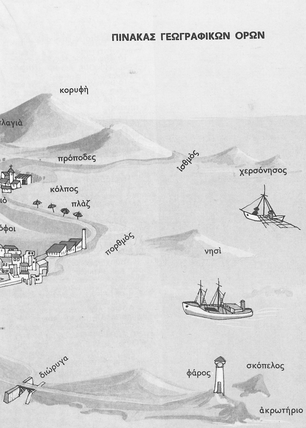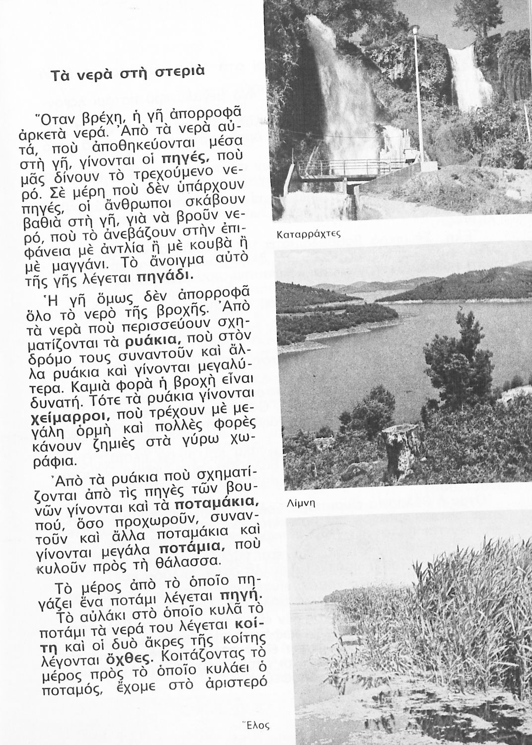 Σχολικό εγχειρίδιο Γεωγραφίας Γ ΄ και Δ' Δημοτικού. Το πρώτο μέρος του βιβλίου απευθύνεται σε μαθητές της Γ' Δημοτικού και αποτελεί μια εισαγωγή στην πατριδογνωσία με έμφαση στις παραδόσεις της ελληνικής επαρχίας. Το δεύτερο μέρος αφορά την Δ' Δημοτικού και εξετάζει την οικονομική, πολιτική και γεωφυσική γεωγραφία της Ελλάδας.