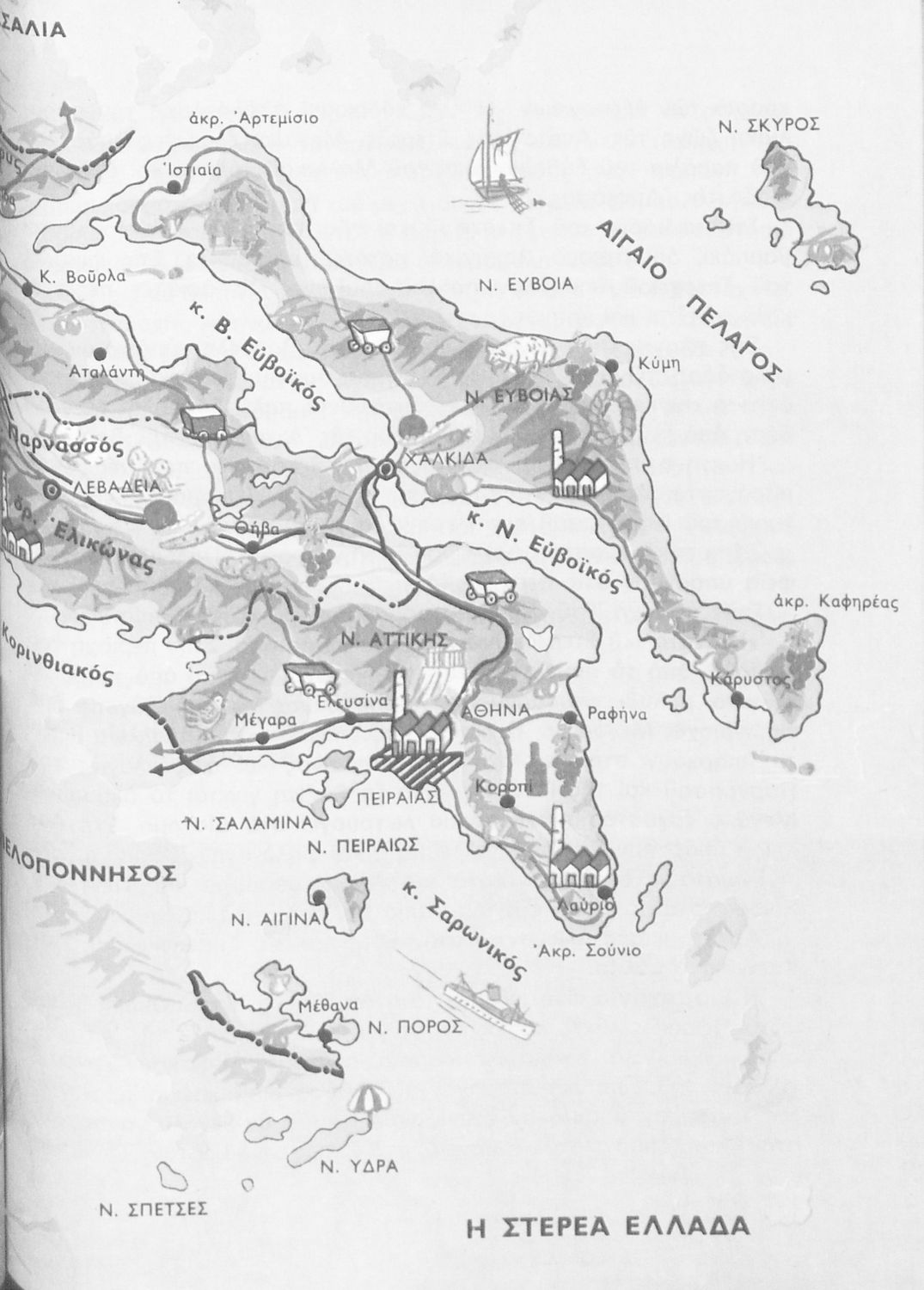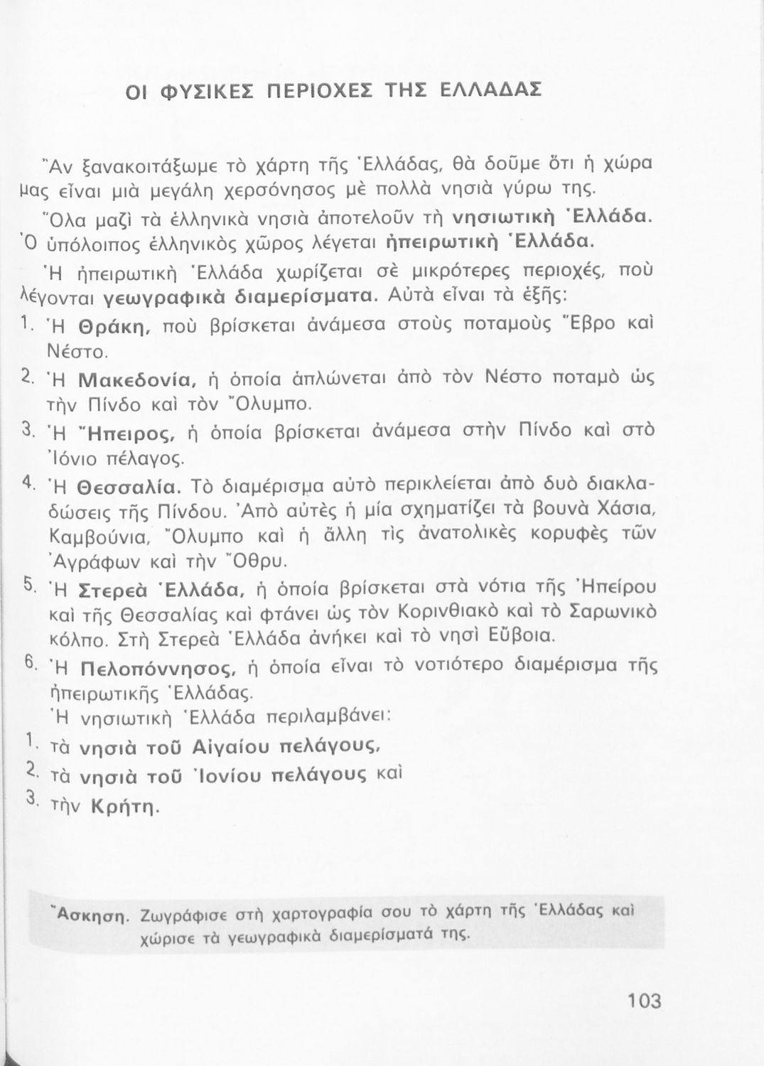 Μαθητικό βοήθημα Γεωγραφίας για την Γ΄ και Δ΄ Δημοτικού που περιέχει χάρτες περιοχών της Ελλάδας τις οποίες εξετάζει από γεωφυσική, πολιτική και οικονομική άποψη.