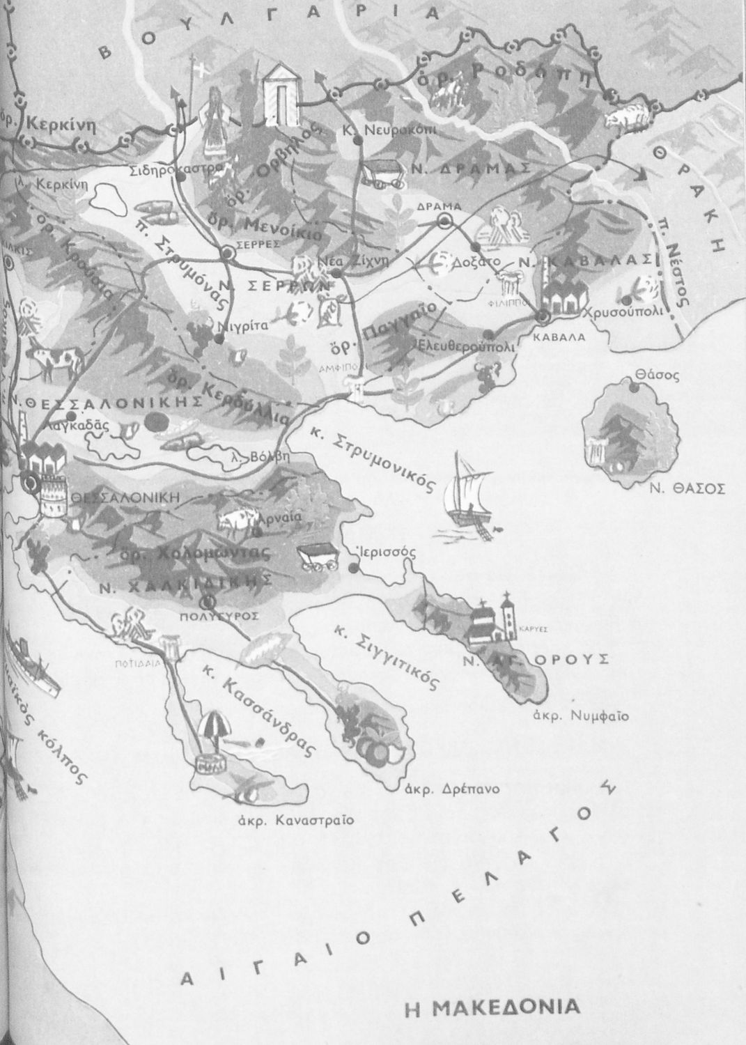 Μαθητικό βοήθημα Γεωγραφίας για την Γ΄ και Δ΄ Δημοτικού που περιέχει χάρτες περιοχών της Ελλάδας τις οποίες εξετάζει από γεωφυσική, πολιτική και οικονομική άποψη.