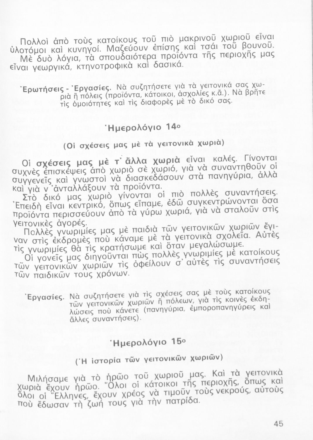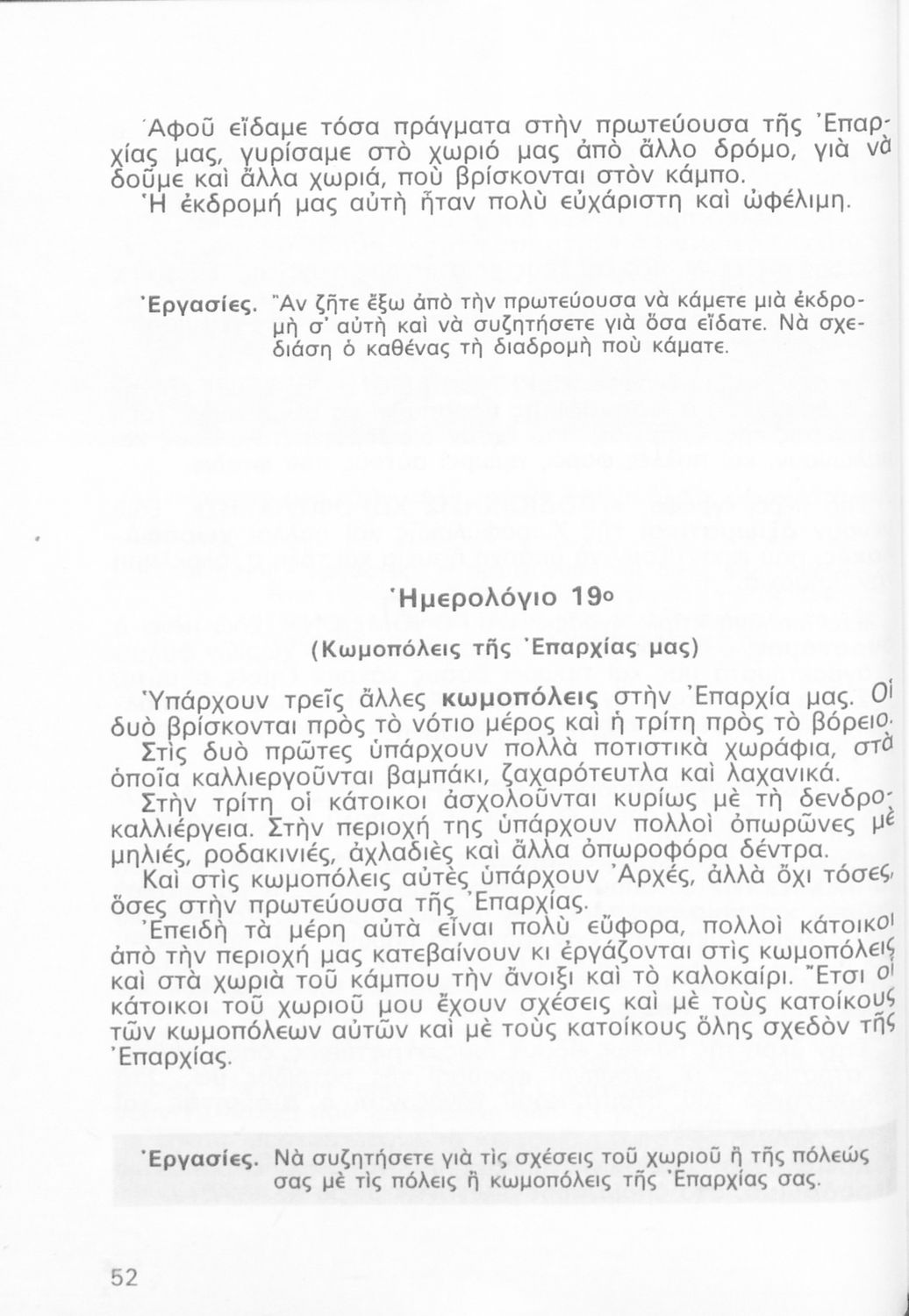 Σχολικό εγχειρίδιο Γεωγραφίας Γ ΄ και Δ' Δημοτικού. Το πρώτο μέρος του βιβλίου απευθύνεται σε μαθητές της Γ' Δημοτικού και αποτελεί μια εισαγωγή στην πατριδογνωσία με έμφαση στις παραδόσεις της ελληνικής επαρχίας. Το δεύτερο μέρος αφορά την Δ' Δημοτικού και εξετάζει την οικονομική, πολιτική και γεωφυσική γεωγραφία της Ελλάδας.