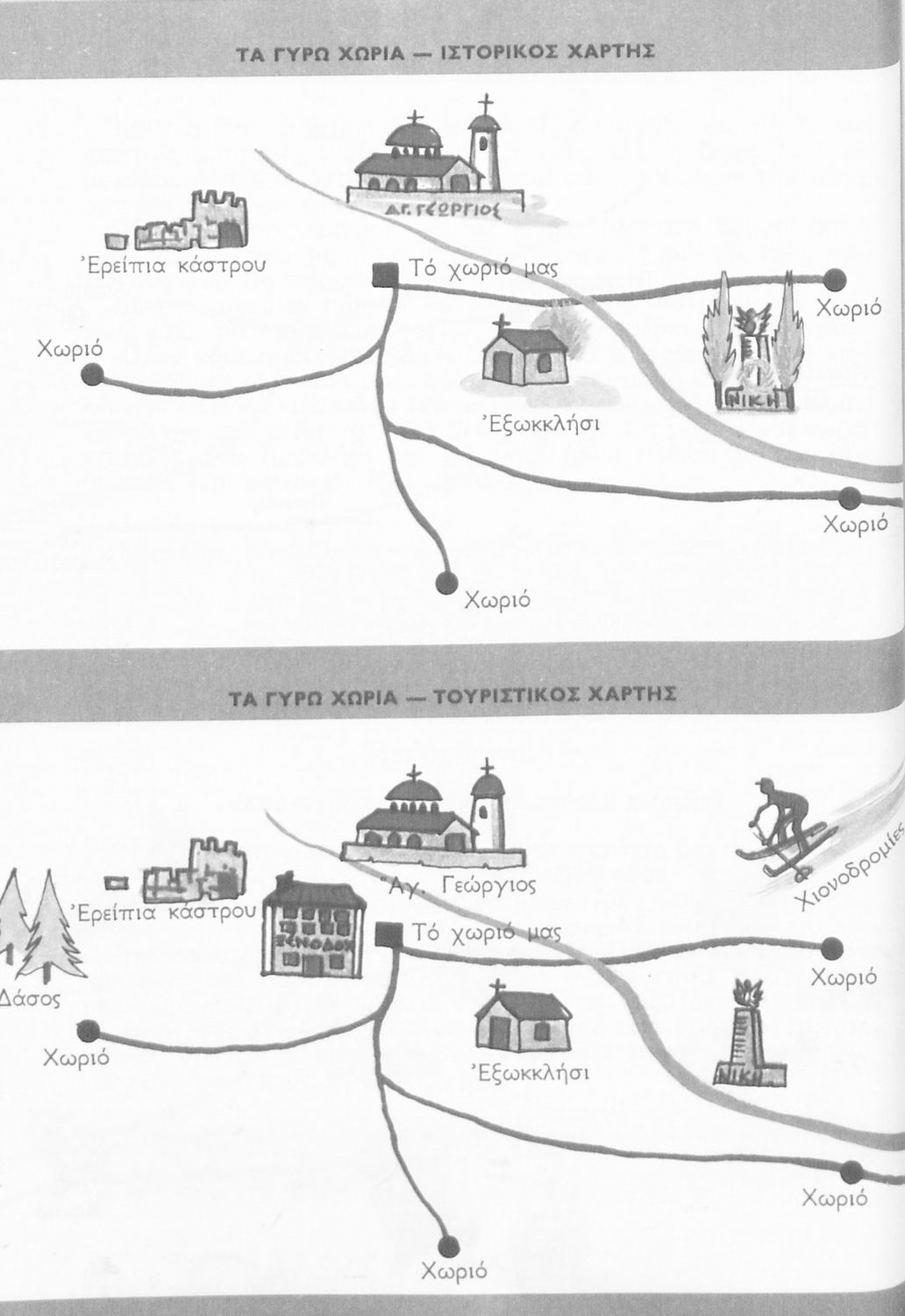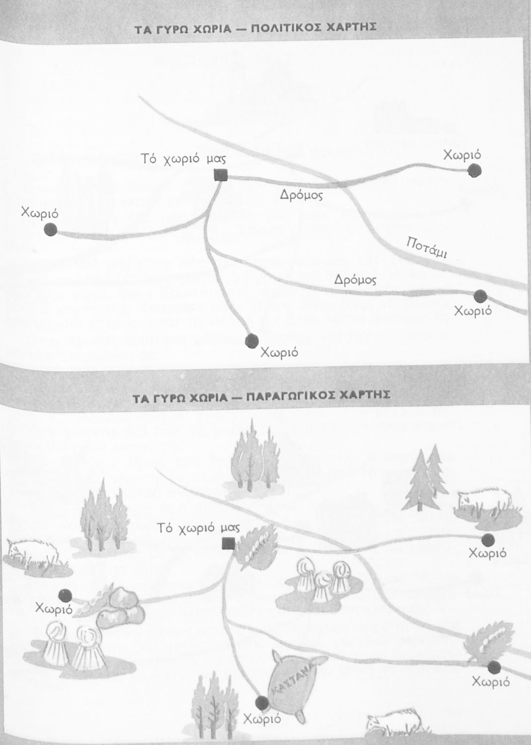 Μαθητικό βοήθημα Γεωγραφίας για την Γ΄ και Δ΄ Δημοτικού που περιέχει χάρτες περιοχών της Ελλάδας τις οποίες εξετάζει από γεωφυσική, πολιτική και οικονομική άποψη.