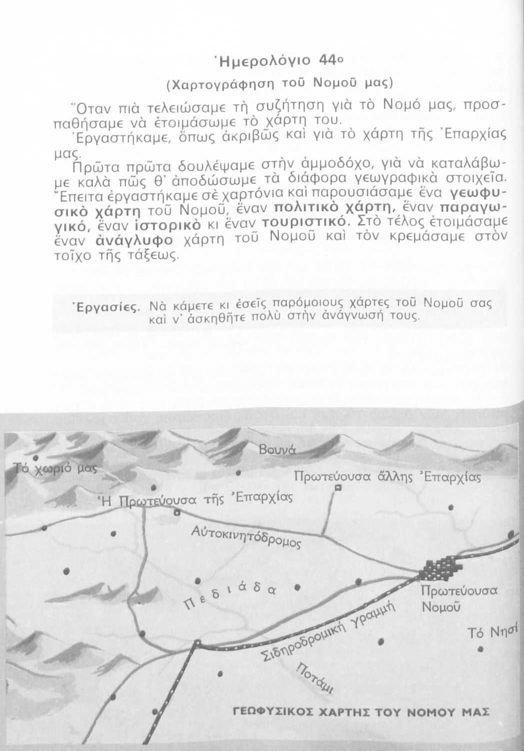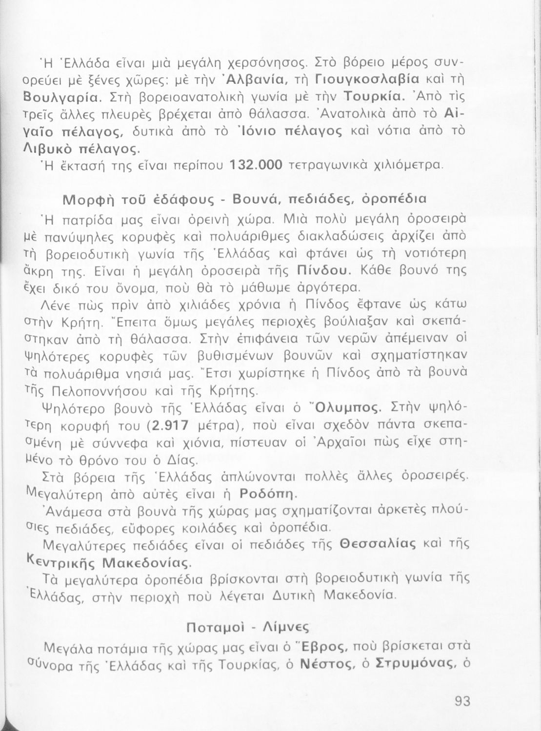 Μαθητικό βοήθημα Γεωγραφίας για τις Γ΄ και Δ΄ Δημοτικού που περιέχει εισαγωγή στη φυσική γεωγραφία και εξετάζει την Ελλάδα ανά διαμέρισμα και νομό από γεωφυσική, οικονομική και πολιτική άποψη.