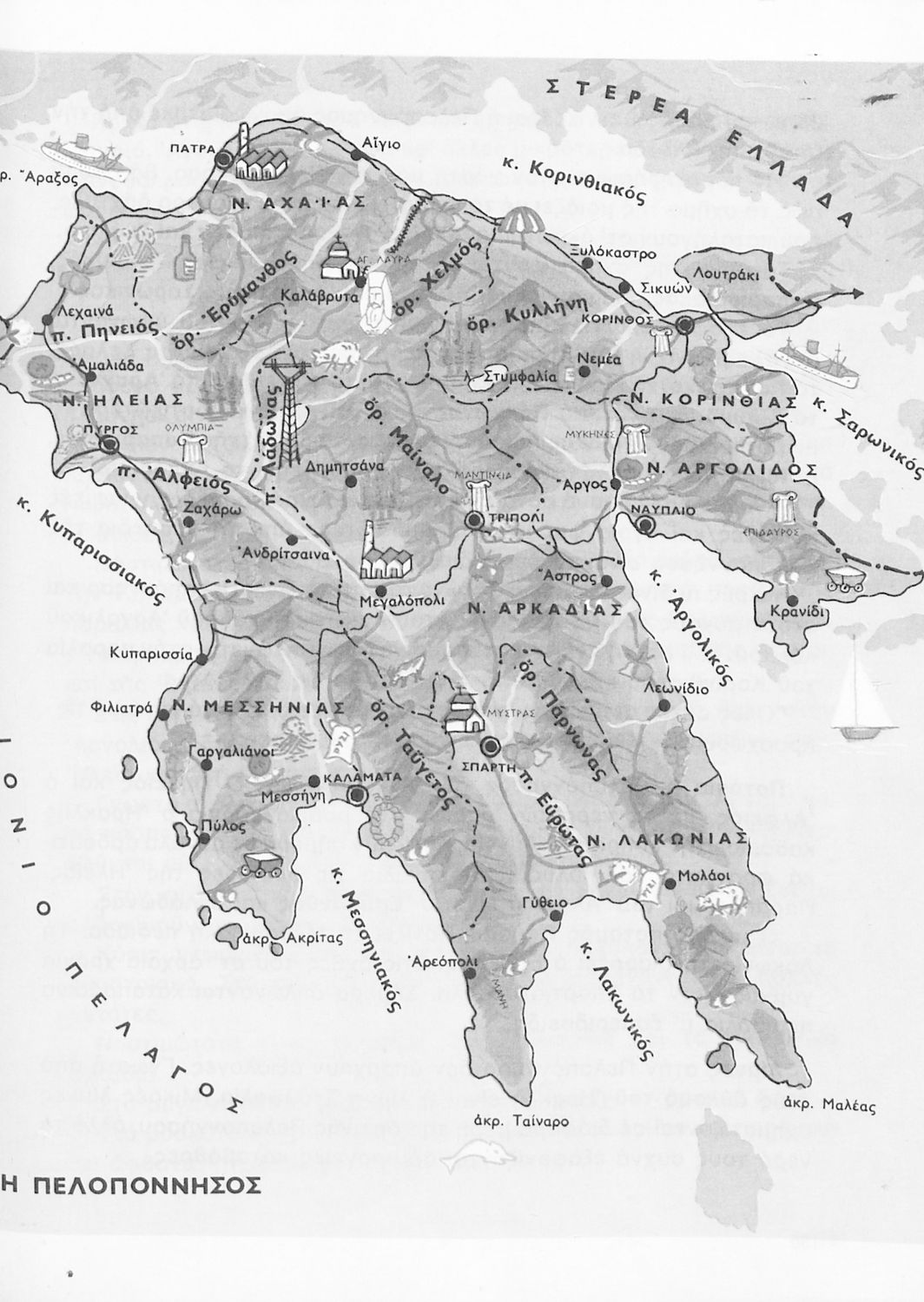 Σχολικό εγχειρίδιο Γεωγραφίας Γ ΄ και Δ' Δημοτικού. Το πρώτο μέρος του βιβλίου απευθύνεται σε μαθητές της Γ' Δημοτικού και αποτελεί μια εισαγωγή στην πατριδογνωσία με έμφαση στις παραδόσεις της ελληνικής επαρχίας. Το δεύτερο μέρος αφορά την Δ' Δημοτικού και εξετάζει την οικονομική, πολιτική και γεωφυσική γεωγραφία της Ελλάδας.