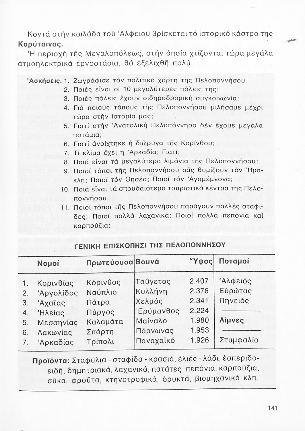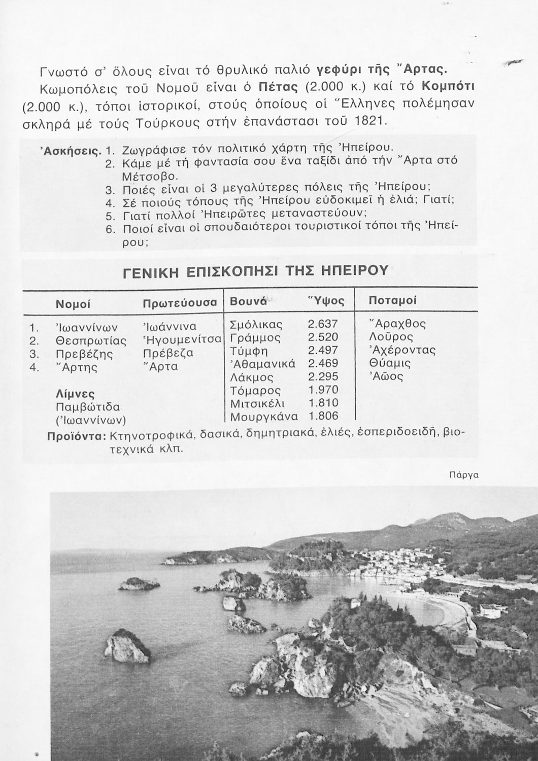Μαθητικό βοήθημα Γεωγραφίας για τις Γ΄ και Δ΄ Δημοτικού που περιέχει εισαγωγή στη φυσική γεωγραφία και εξετάζει την Ελλάδα ανά διαμέρισμα και νομό από γεωφυσική, οικονομική και πολιτική άποψη.