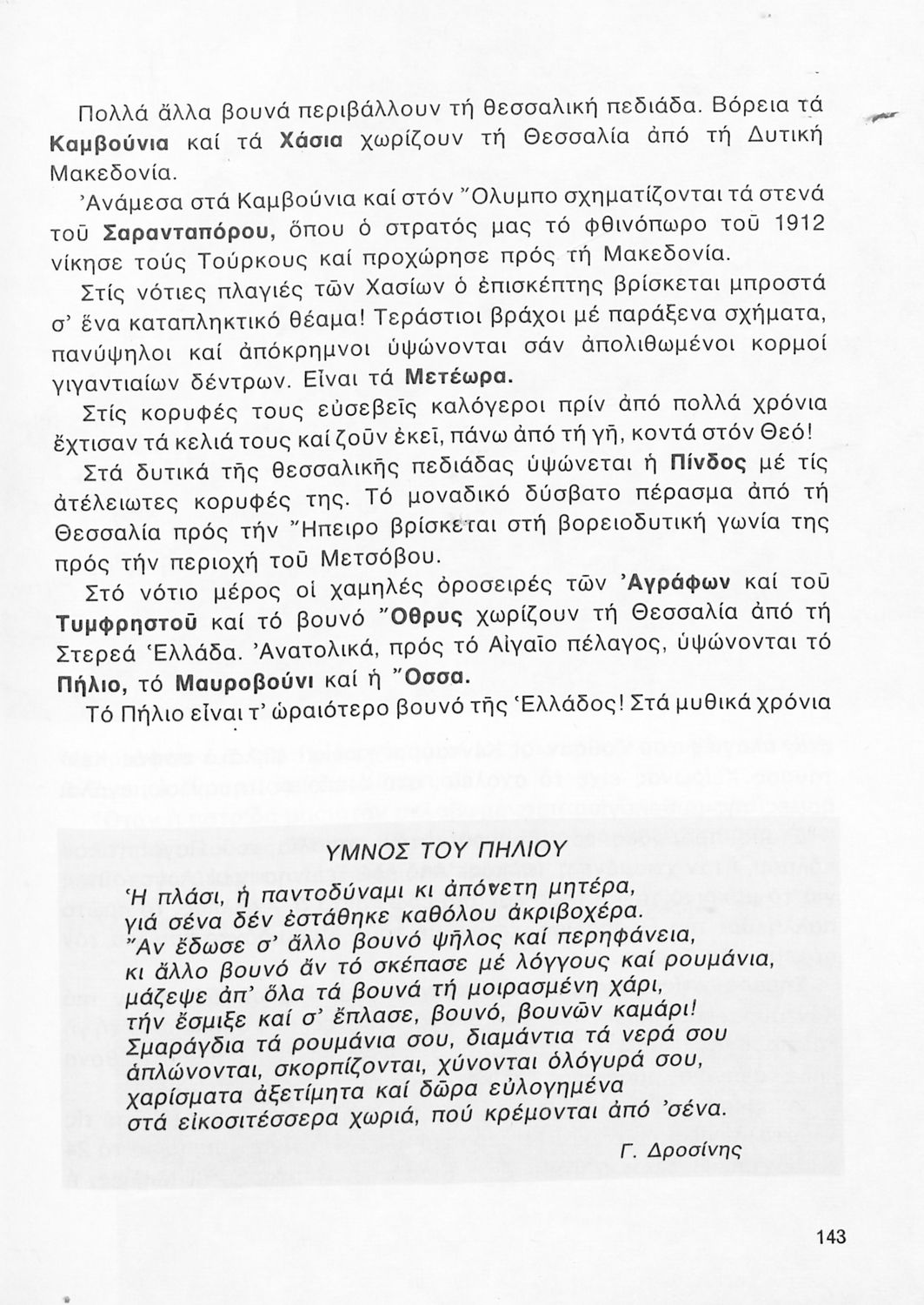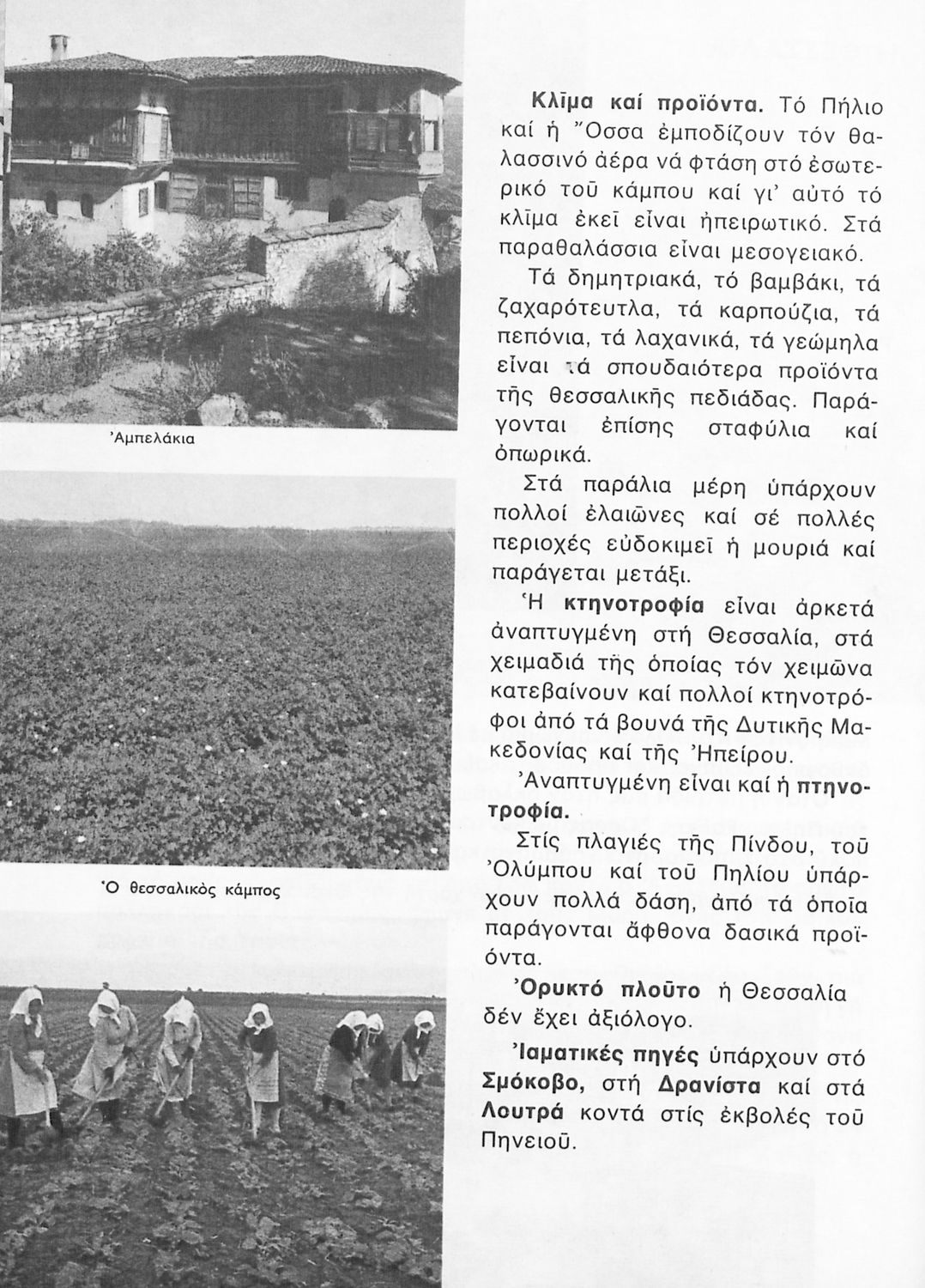 Σχολικό εγχειρίδιο Γεωγραφίας Γ ΄ και Δ' Δημοτικού. Το πρώτο μέρος του βιβλίου απευθύνεται σε μαθητές της Γ' Δημοτικού και αποτελεί μια εισαγωγή στην πατριδογνωσία με έμφαση στις παραδόσεις της ελληνικής επαρχίας. Το δεύτερο μέρος αφορά την Δ' Δημοτικού και εξετάζει την οικονομική, πολιτική και γεωφυσική γεωγραφία της Ελλάδας.