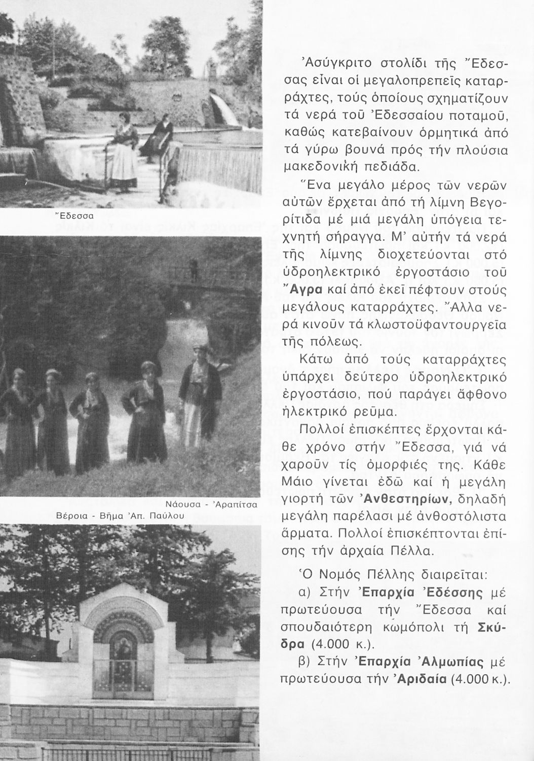 Σχολικό εγχειρίδιο Γεωγραφίας Γ ΄ και Δ' Δημοτικού. Το πρώτο μέρος του βιβλίου απευθύνεται σε μαθητές της Γ' Δημοτικού και αποτελεί μια εισαγωγή στην πατριδογνωσία με έμφαση στις παραδόσεις της ελληνικής επαρχίας. Το δεύτερο μέρος αφορά την Δ' Δημοτικού και εξετάζει την οικονομική, πολιτική και γεωφυσική γεωγραφία της Ελλάδας.