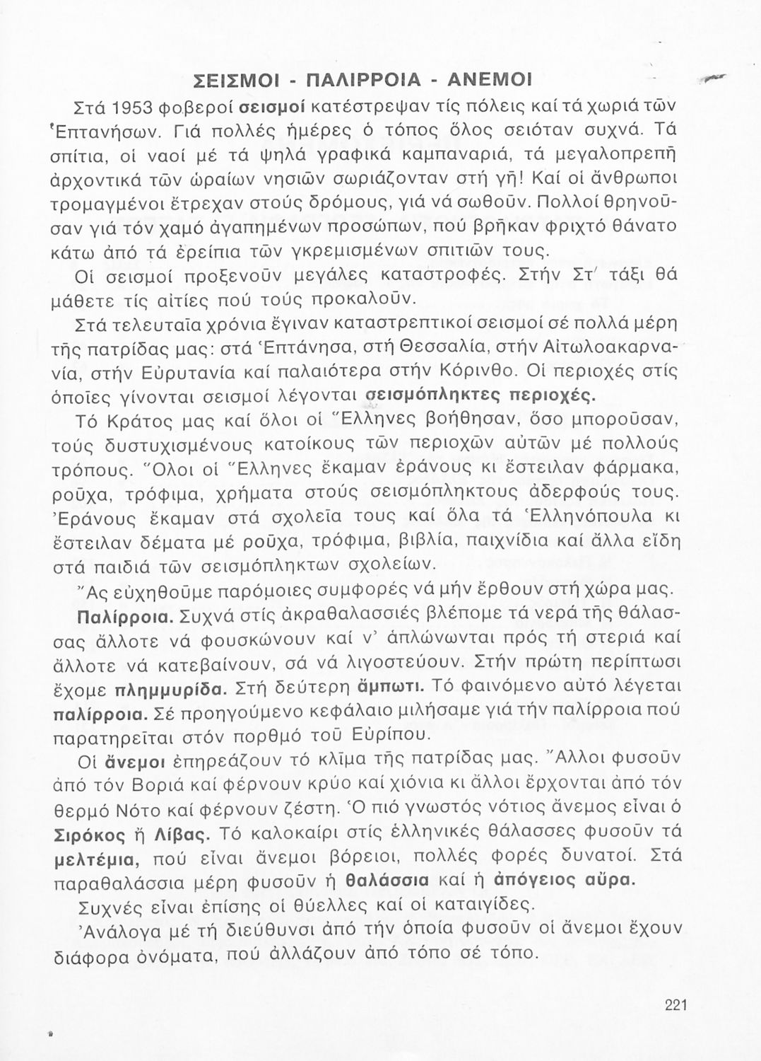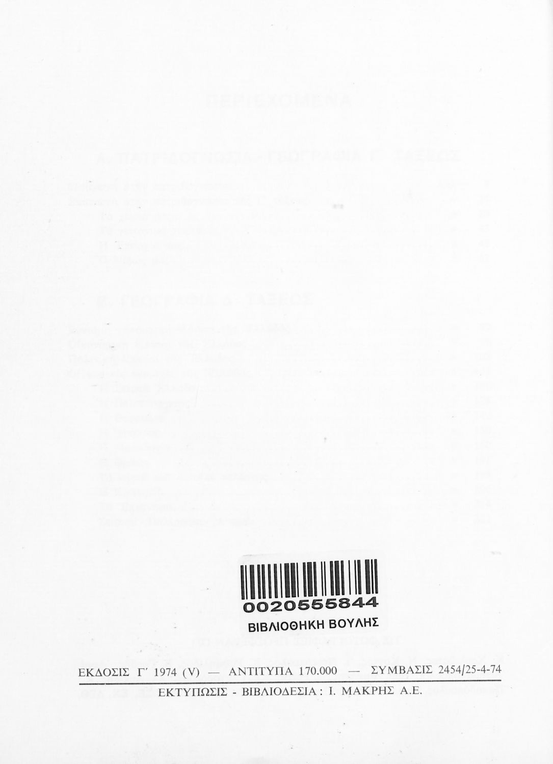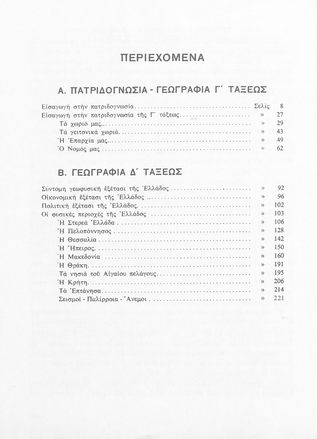 Σχολικό εγχειρίδιο Γεωγραφίας Γ ΄ και Δ' Δημοτικού. Το πρώτο μέρος του βιβλίου απευθύνεται σε μαθητές της Γ' Δημοτικού και αποτελεί μια εισαγωγή στην πατριδογνωσία με έμφαση στις παραδόσεις της ελληνικής ...