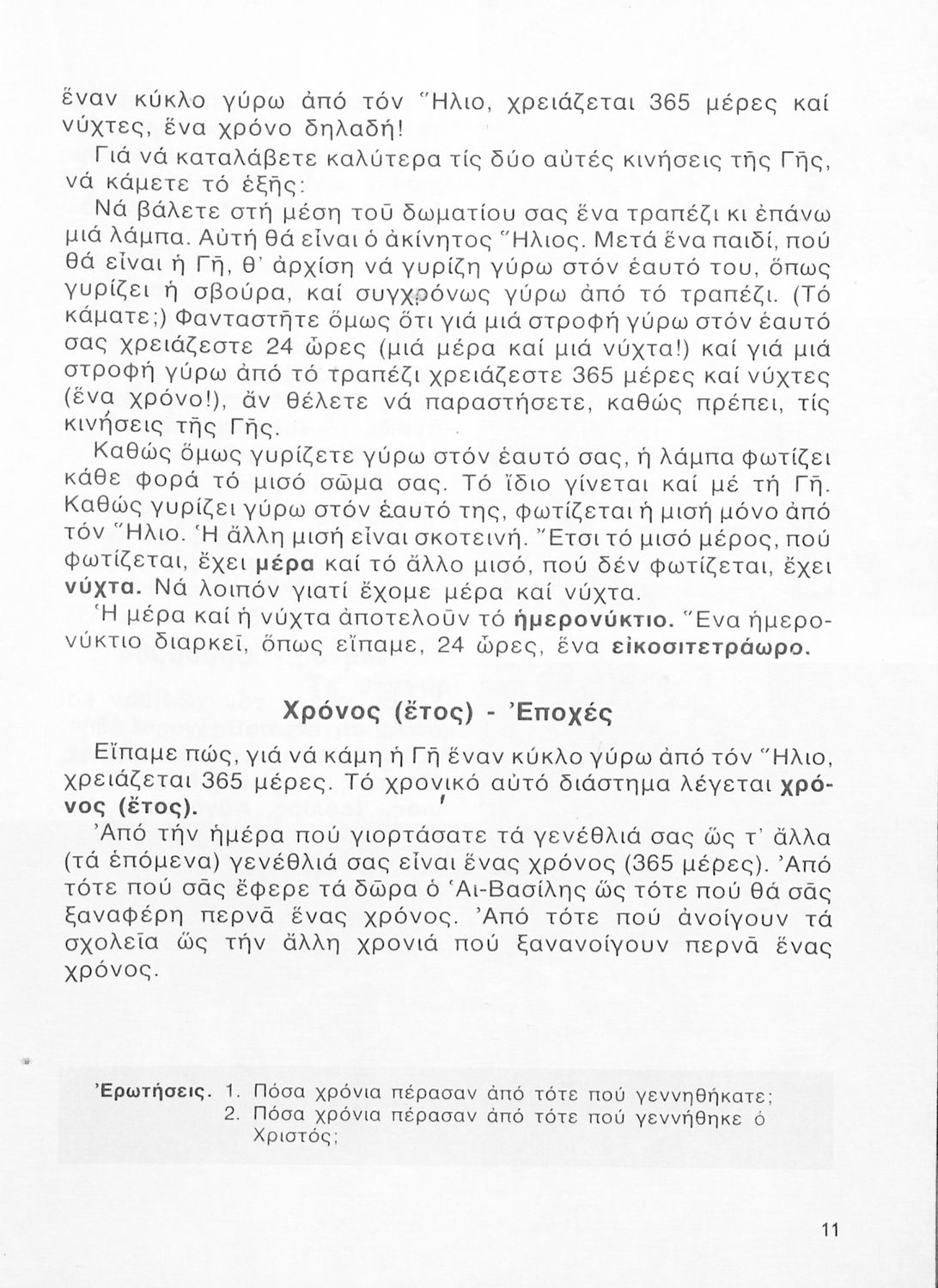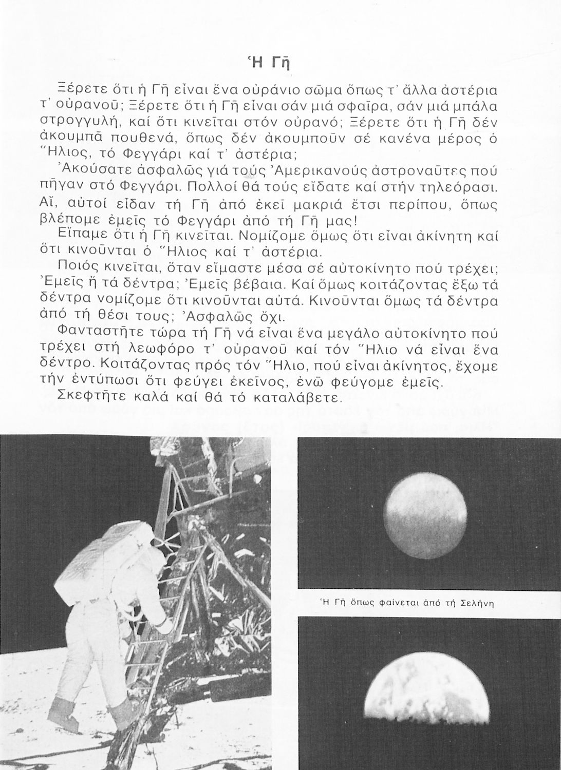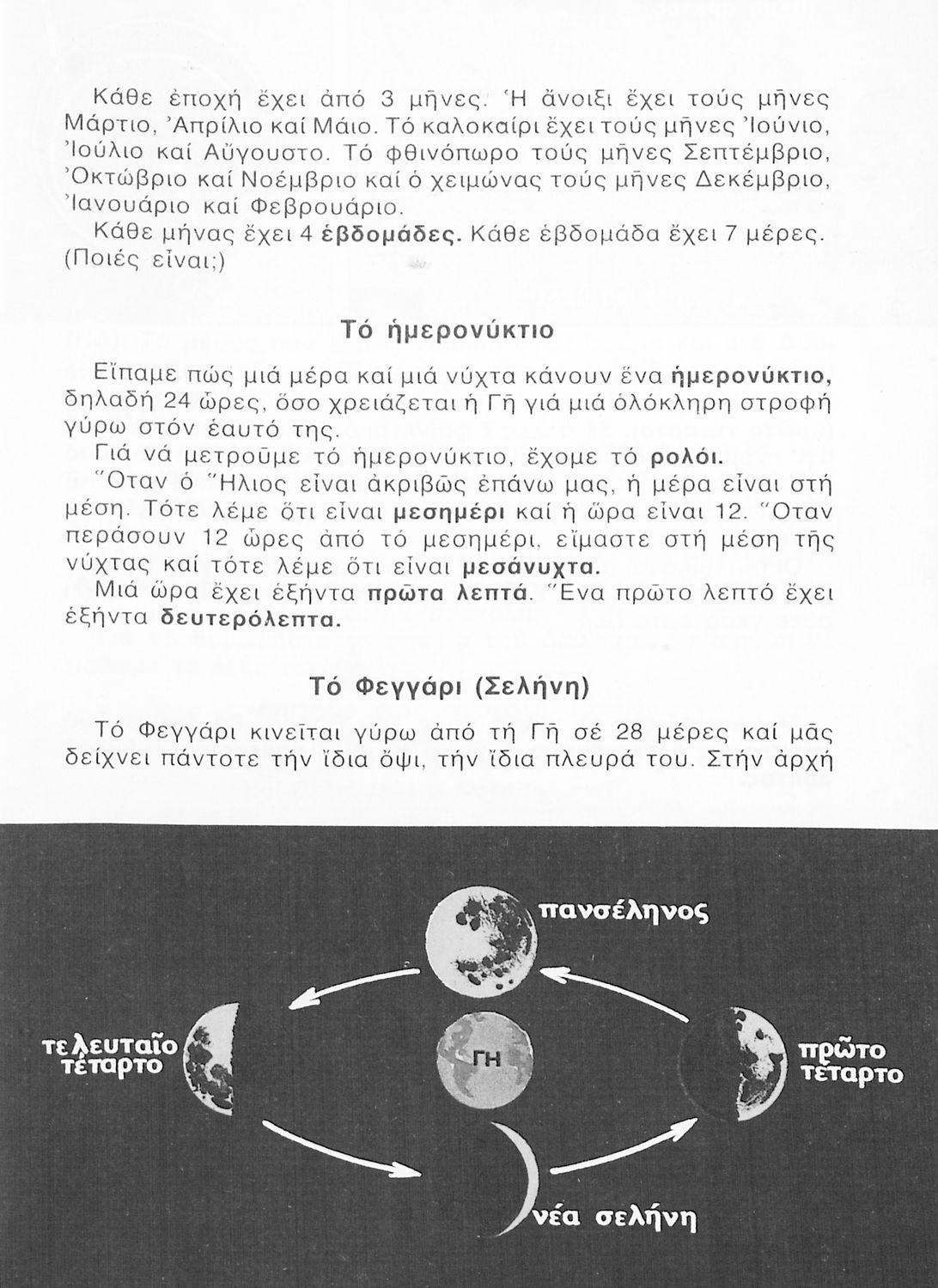 Παρουσίαση περιεχομένου: Σχολικό εγχειρίδιο Γεωγραφίας Γ ΄ και Δ' Δημοτικού. Το πρώτο μέρος του βιβλίου απευθύνεται σε μαθητές της Γ' Δημοτικού και αποτελεί μια εισαγωγή στην πατριδογνωσία με έμφαση στις παραδόσεις της ελληνικής επαρχίας. Το δεύτερο μέρος αφορά την Δ' Δημοτικού και εξετάζει την οικονομική, πολιτική και γεωφυσική γεωγραφία της Ελλάδας.