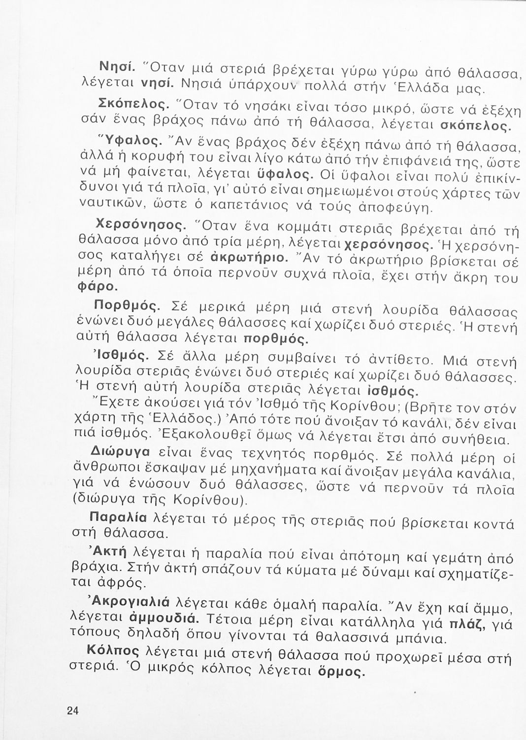 Μαθητικό βοήθημα Γεωγραφίας για τις Γ΄ και Δ΄ Δημοτικού που περιέχει εισαγωγή στη φυσική γεωγραφία και εξετάζει την Ελλάδα ανά διαμέρισμα και νομό από γεωφυσική, οικονομική και πολιτική άποψη.
