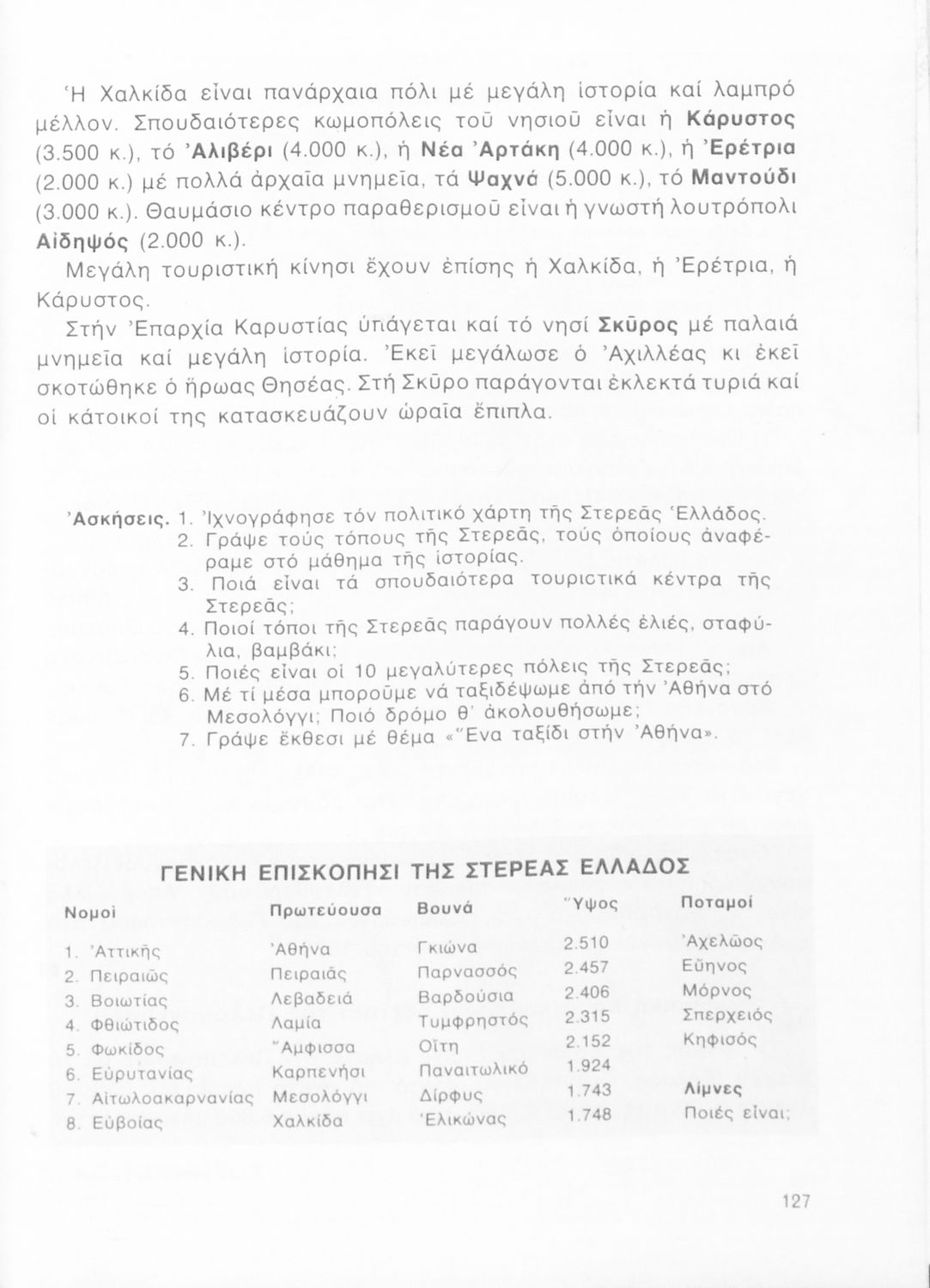 Μαθητικό βοήθημα Γεωγραφίας για την Γ΄ και Δ΄ Δημοτικού που περιέχει χάρτες περιοχών της Ελλάδας τις οποίες εξετάζει από γεωφυσική, πολιτική και οικονομική άποψη.