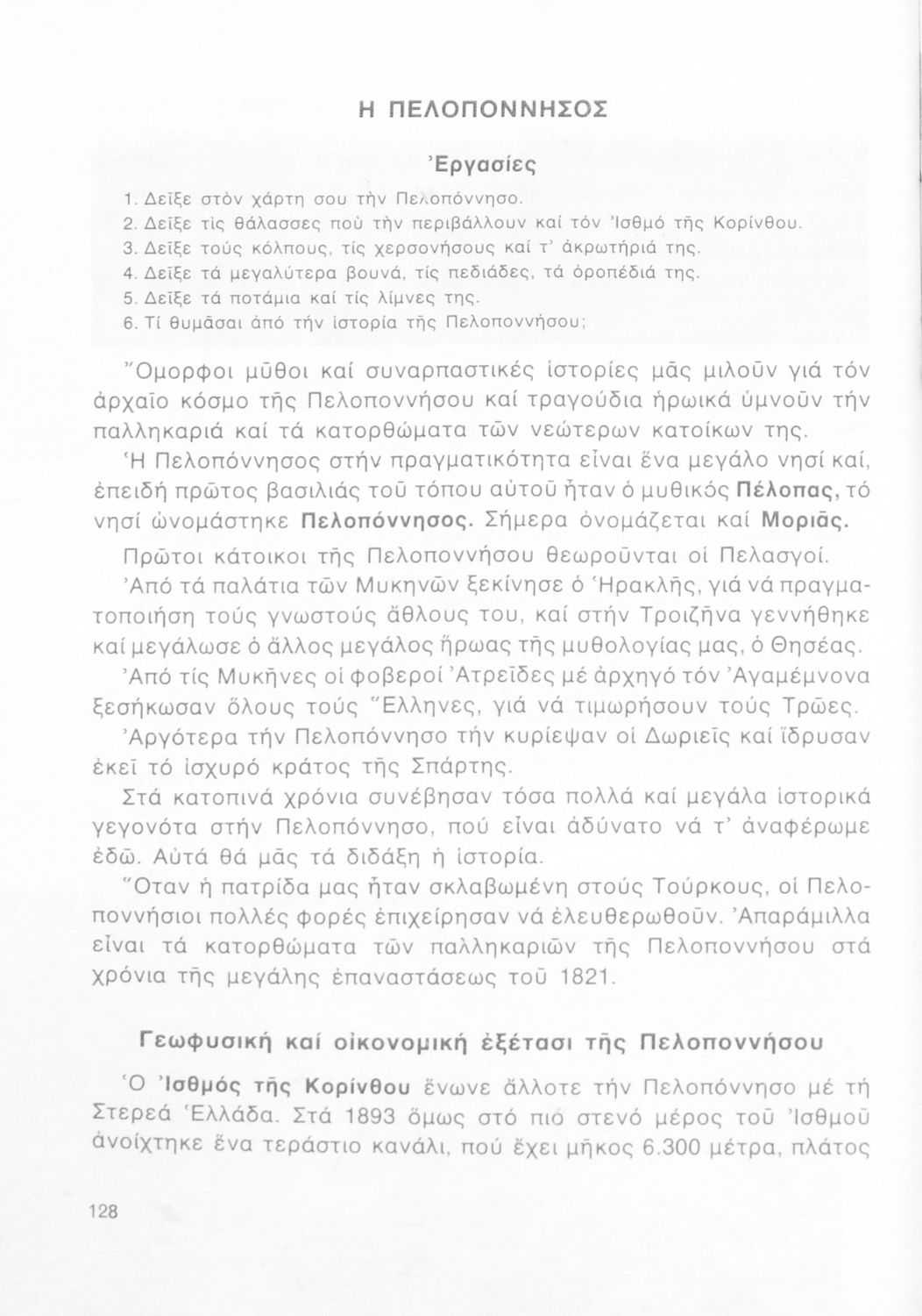Σχολικό εγχειρίδιο Γεωγραφίας Γ ΄ και Δ' Δημοτικού. Το πρώτο μέρος του βιβλίου απευθύνεται σε μαθητές της Γ' Δημοτικού και αποτελεί μια εισαγωγή στην πατριδογνωσία με έμφαση στις παραδόσεις της ελληνικής ...