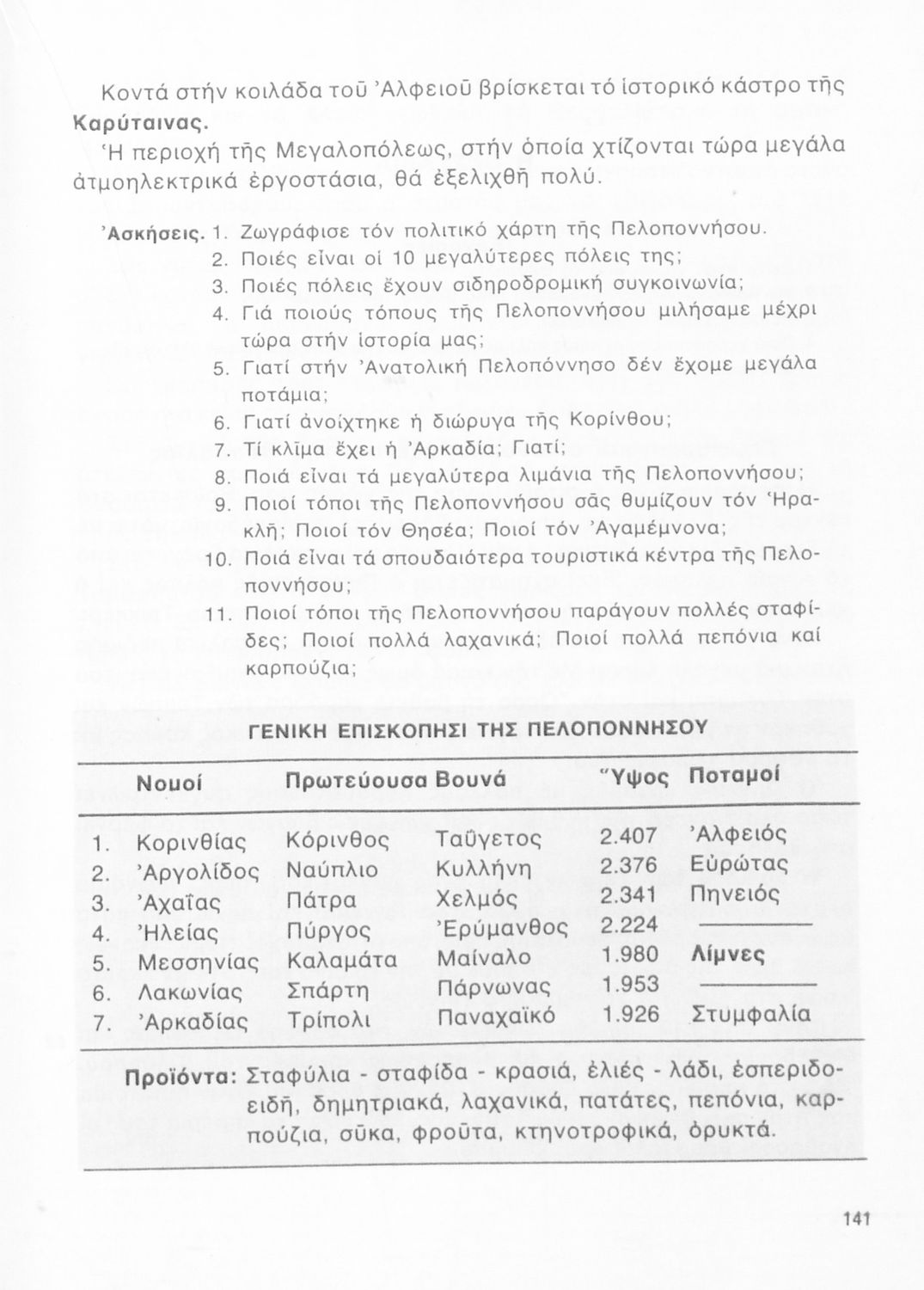 Μαθητικό βοήθημα Γεωγραφίας για τις Γ΄ και Δ΄ Δημοτικού που περιέχει εισαγωγή στη φυσική γεωγραφία και εξετάζει την Ελλάδα ανά διαμέρισμα και νομό από γεωφυσική, οικονομική και πολιτική άποψη.