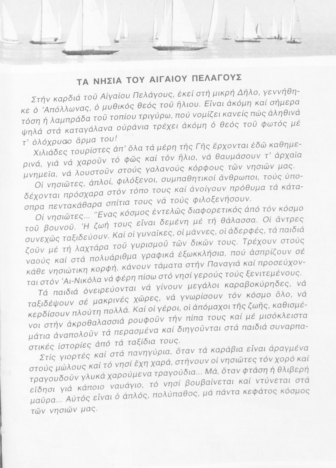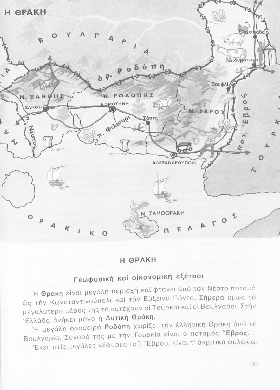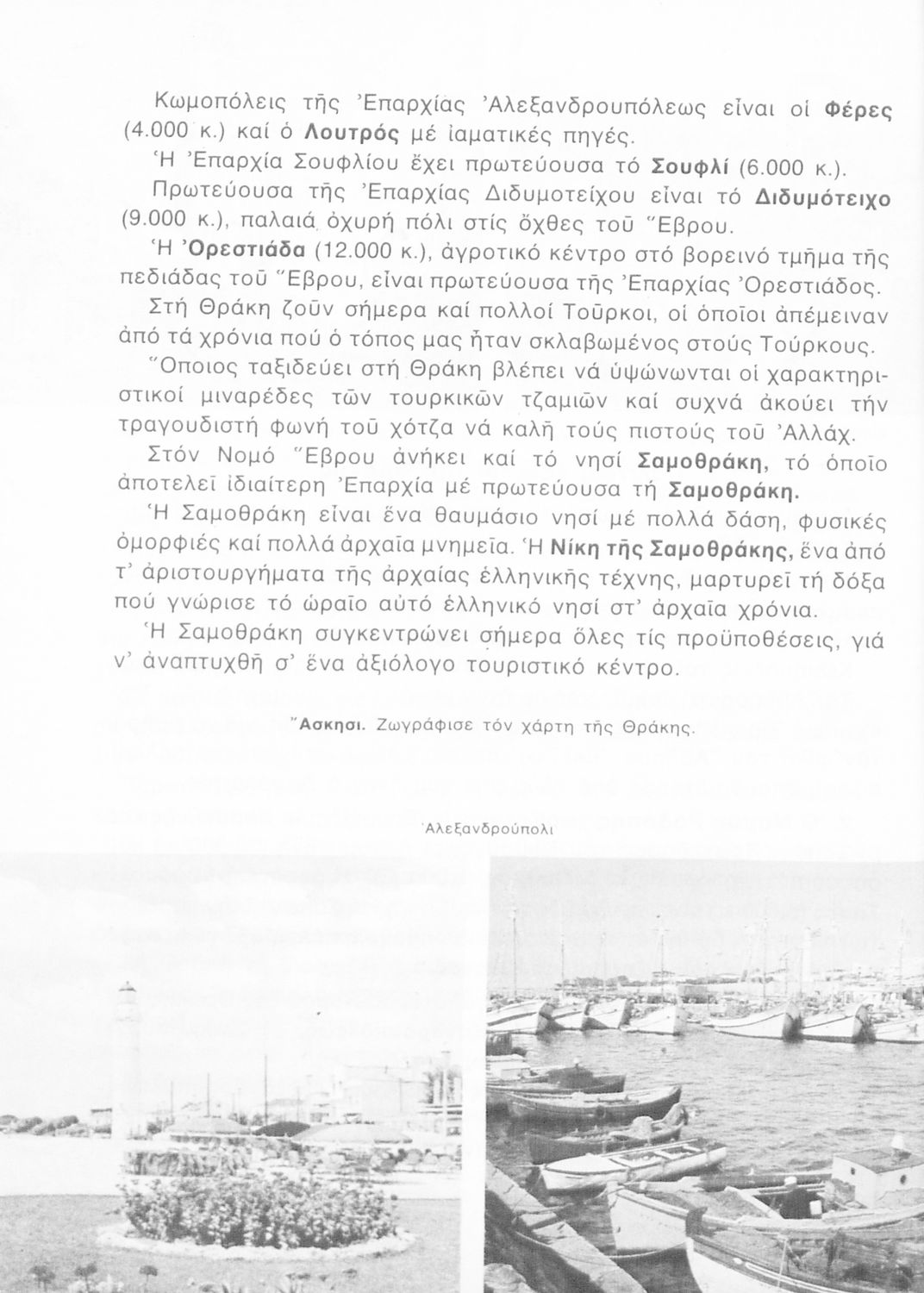 Σχολικό εγχειρίδιο Γεωγραφίας Γ ΄ και Δ' Δημοτικού. Το πρώτο μέρος του βιβλίου απευθύνεται σε μαθητές της Γ' Δημοτικού και αποτελεί μια εισαγωγή στην έννοια της πατριδογνωσίας μέσα από τις παραδόσεις της ελληνικής επαρχίας. Το δεύτερο μέρος αφορά τη Δ' Δημοτικού και εξετάζει την οικονομική, πολιτική και γεωφυσική γεωγραφία της Ελλάδας.