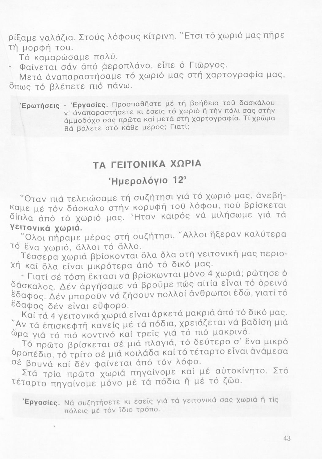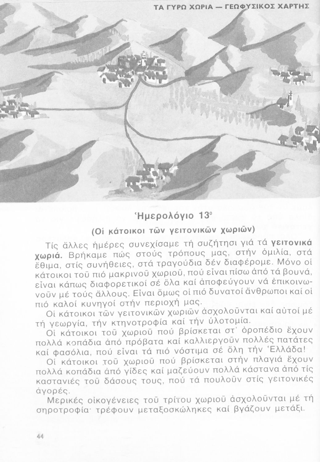 Σχολικό εγχειρίδιο Γεωγραφίας Γ ΄ και Δ' Δημοτικού. Το πρώτο μέρος του βιβλίου απευθύνεται σε μαθητές της Γ' Δημοτικού και αποτελεί μια εισαγωγή στην πατριδογνωσία με έμφαση στις παραδόσεις της ελληνικής ...