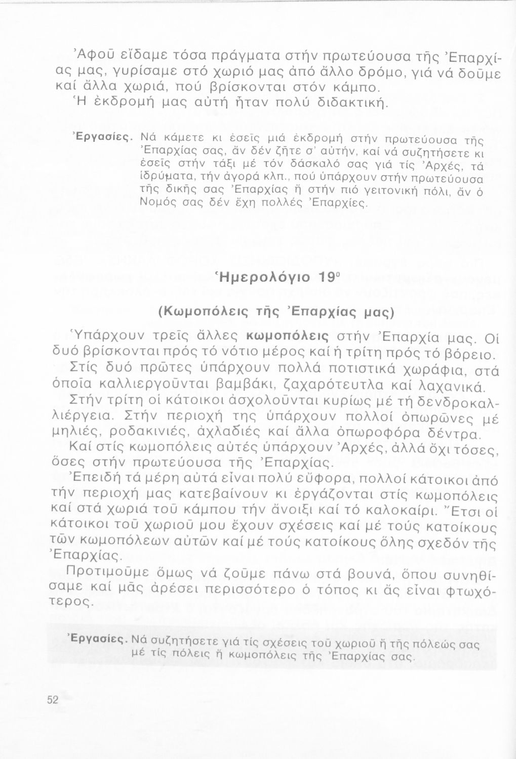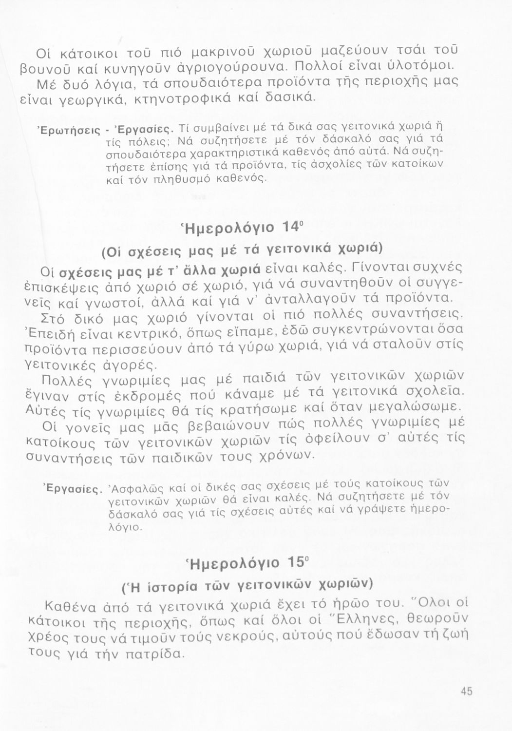 Σχολικό εγχειρίδιο Γεωγραφίας Γ ΄ και Δ' Δημοτικού. Το πρώτο μέρος του βιβλίου απευθύνεται σε μαθητές της Γ' Δημοτικού και αποτελεί μια εισαγωγή στην έννοια της πατριδογνωσίας μέσα από τις παραδόσεις της ελληνικής επαρχίας. Το δεύτερο μέρος αφορά τη Δ' Δημοτικού και εξετάζει την οικονομική, πολιτική και γεωφυσική γεωγραφία της Ελλάδας.